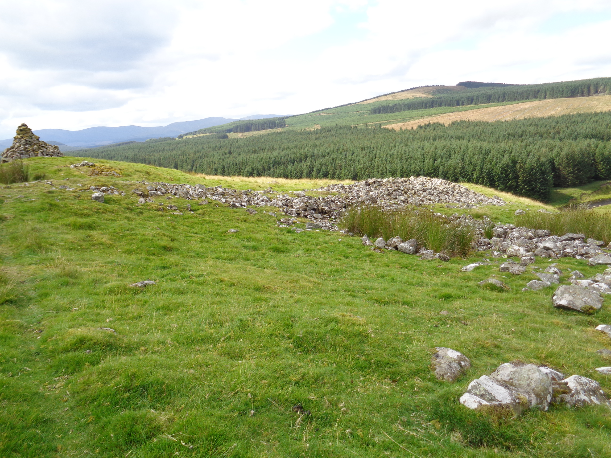 I take the road out of the small village of Carsphairn, and take a left off the main road onto a smaller rural trail. It’s a pretty and deserted journey that takes me first through forests and then out onto open ground. I cross the Water of Ken, and detour immediately left up an open hillside. It’s rocky and steep climbing and there’s no obvious path up to the top of what appears to be an ancient settlement, which makes the detour even more exciting.