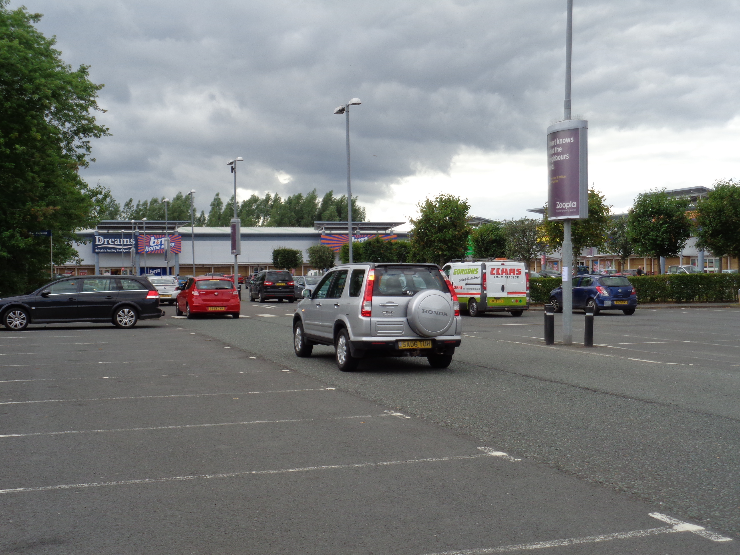 I turn into the retail park and head towards the Tesco hypermarket, searching for dinner supplies. There’s the semblance of a community board in the corridor between outside and inside, a mixture of small ads and local community services. The supermarket itself is booming, and offers the usual bakery, butcher, grocery and fish-counter service that has annihilated inner town centres. Outside, I talk to a friendly cyclist unlocking his bike as I pack up.