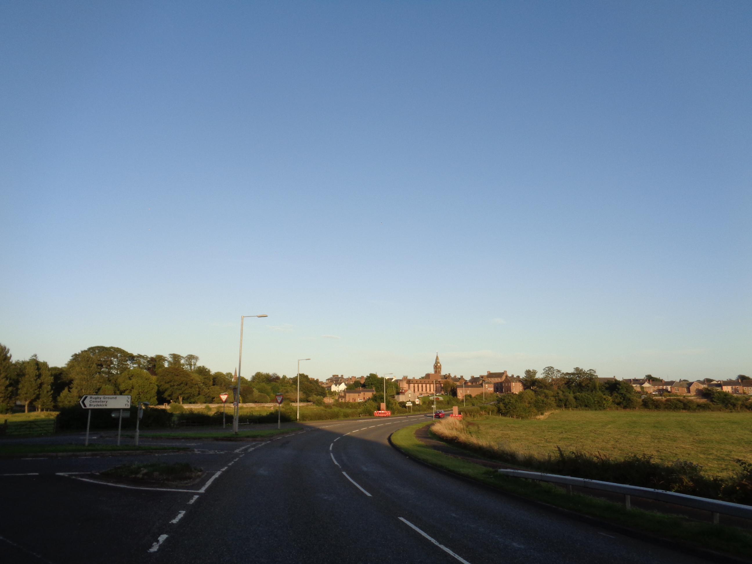 I leave Dumfries heading south, and join a quiet road marked as the ‘tourist route to Gretna’. It’s the early evening, my favourite time to cycle, and the sun is casting a warm light over the surrounding fields. The road passes a number of small villages as it heads towards the coast, including Powfoot, which turns out to be a small village with a surrounding beach, but I carry on, glad of the good weather.