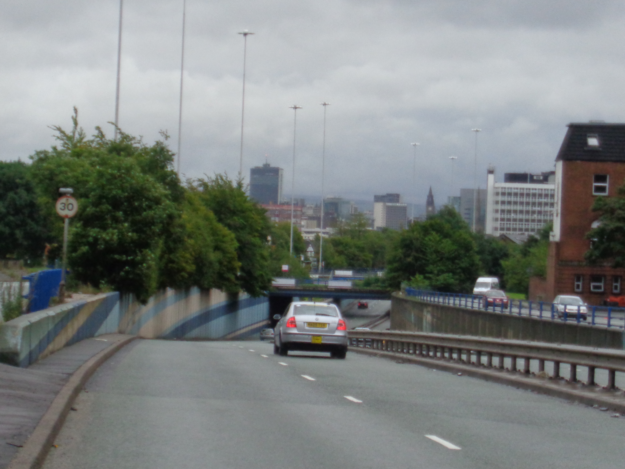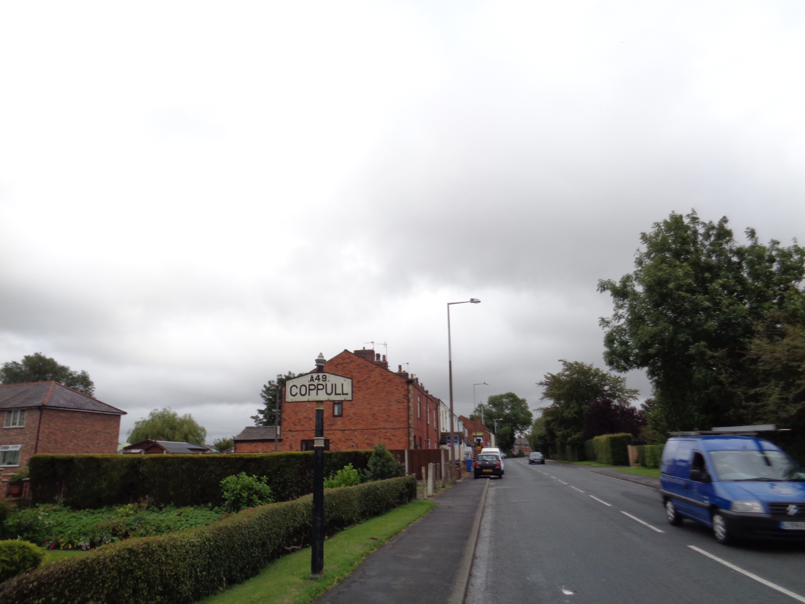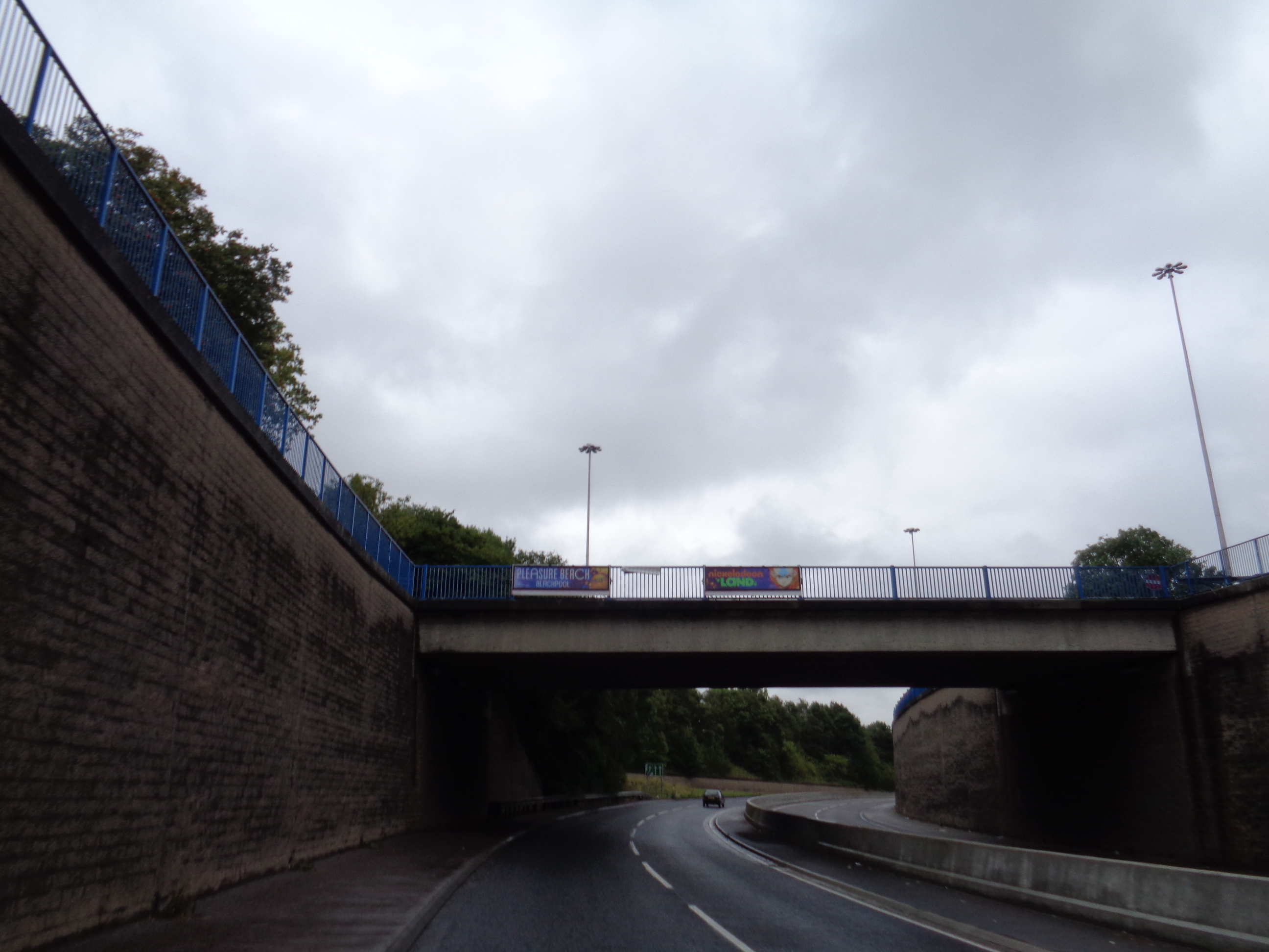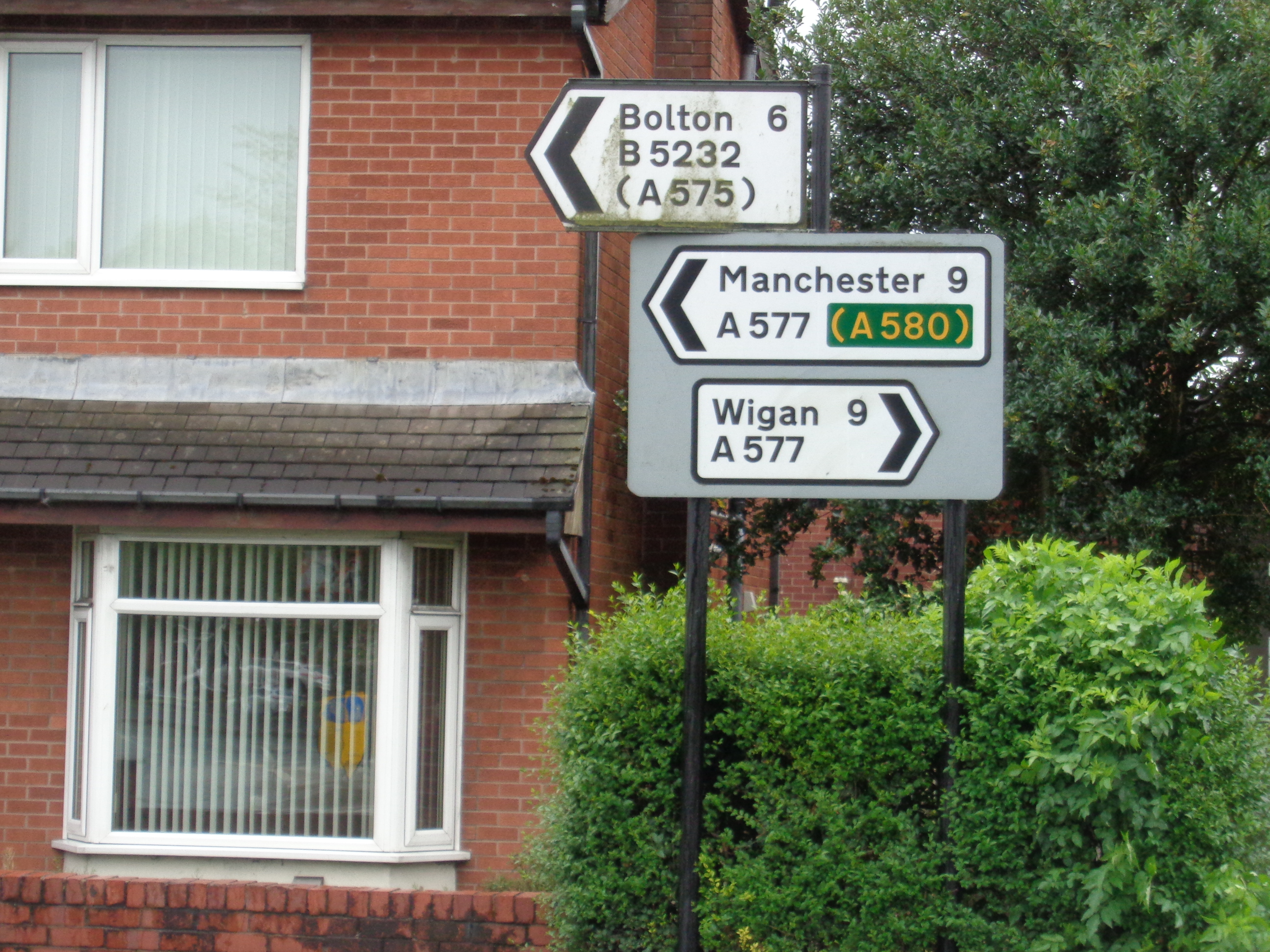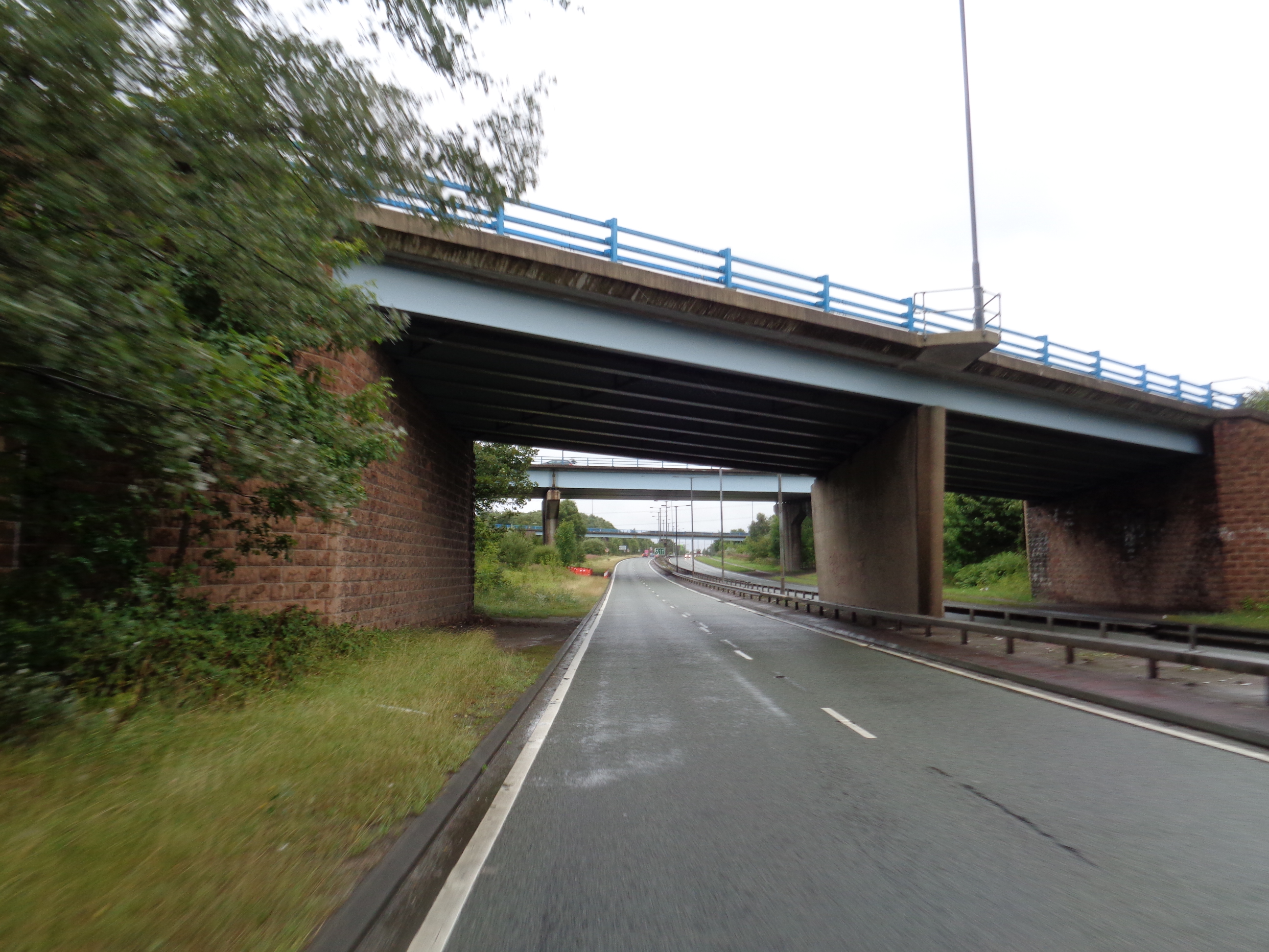 The road starts to head towards Manchester, a scattering of high rise blocks in the distance. The road starts to peter out into a dual carriageway, most of it filled with travelling football fans in coaches and cars. Pot holes start to appear with rapid frequency alongside cycle lanes that end nowhere. One completely wrongfoots me, sending me up the grassy verge that banks onto a motorway. Do not use the cycle paths, I remind myself of a well-proven rule!