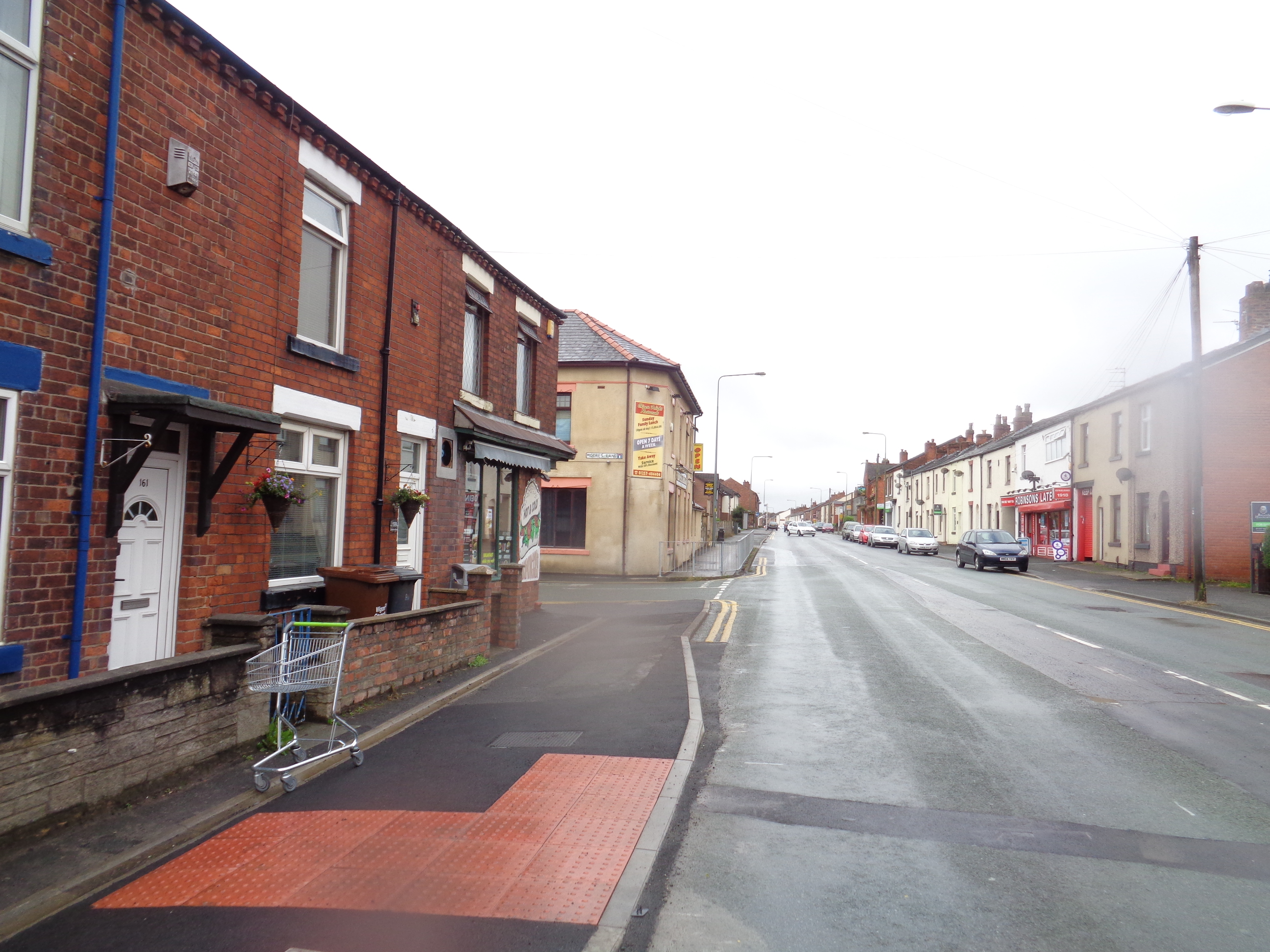 I cannot see a thing, but the road signs I pass suggest that it’s Hindley, Atherton and then Tyldesley that I pedal through. Each looks a little similar, as after Wigan a conurbation has begun that doesn’t end until I reach Manchester. These are late 19th century small and cramped terraced houses, either red or brown brick, of a kind familiar to northern soap viewers though a little smaller and more shabby than how it might be imagined. They’re also surrounded by a similar neighbourhood code of deprivation: a Chinese takeaway serving English fish and chips; a bargain booze store; a tatty looking newsagent; a chain owned pub a carvery; countless shuttered-up shops, letters piling high. But this isn’t unique to the north-west. It’s boring, there’s nothing much around, and it’s hard to get a sense of its placeness.