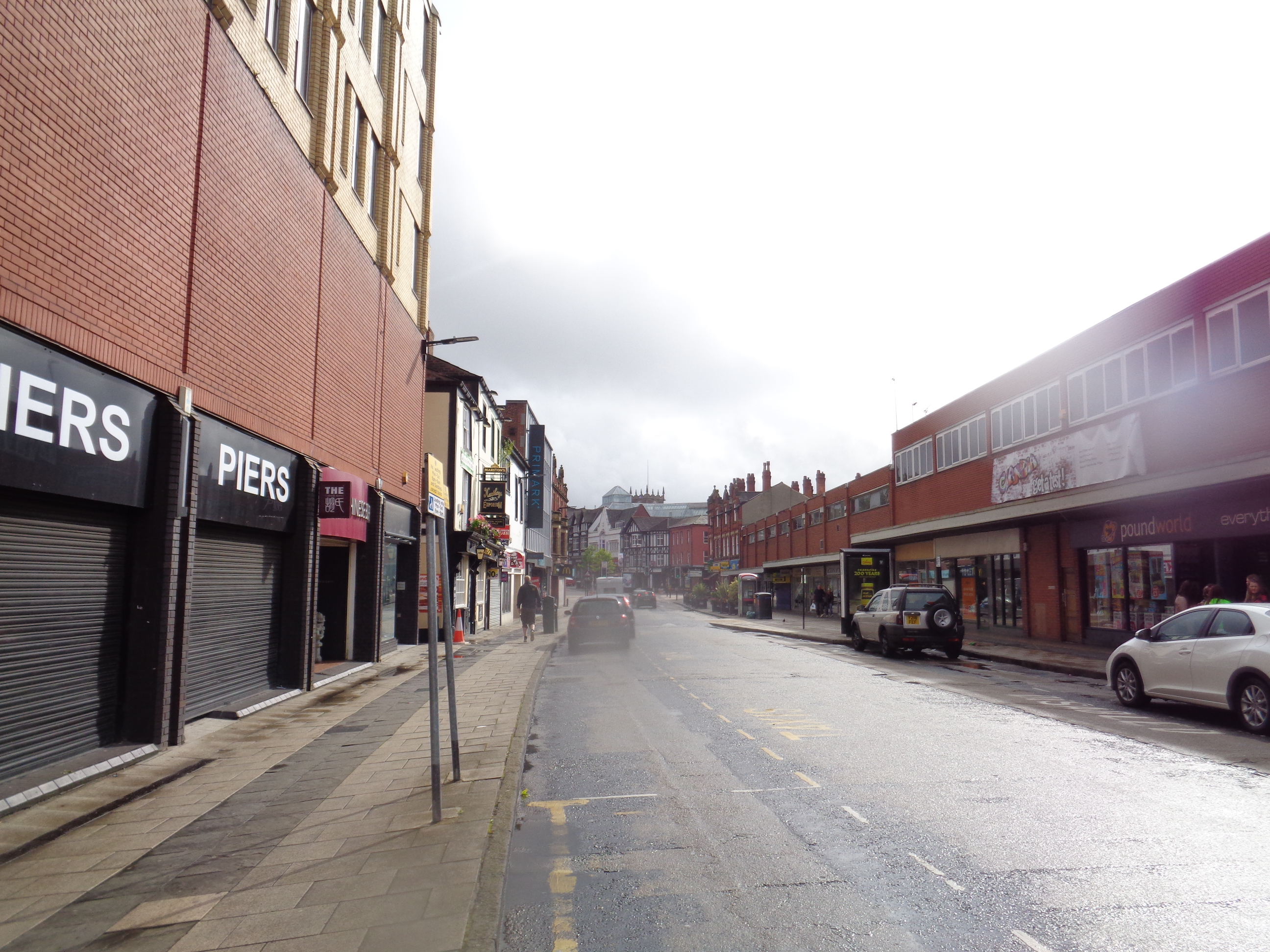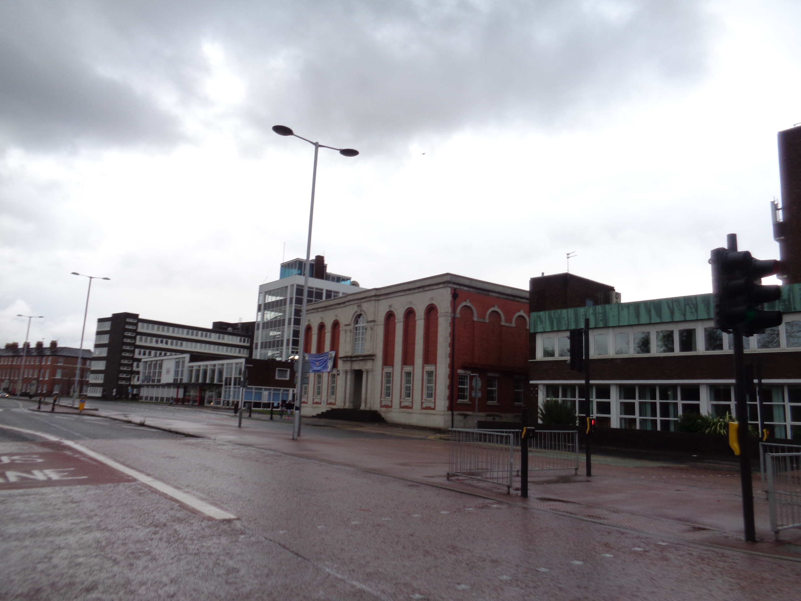 After a fairly small suburban ring of narrow, brown brick terraces, the town centre appears with a familiar garb of high-street chains, pedestrianised zones and a small deserted mall. But there’s no obvious disuse or decline as in Barnsley or Rotherham. Instead most shops seem in business, and the town is well-kept. It’s over-served by two railway stations, suggesting the town had a larger demand for these things in the past. If it’s shrunk, it’s done so well. There are some good council buildings and the town centre is well-sized and pleasant enough for what it is.