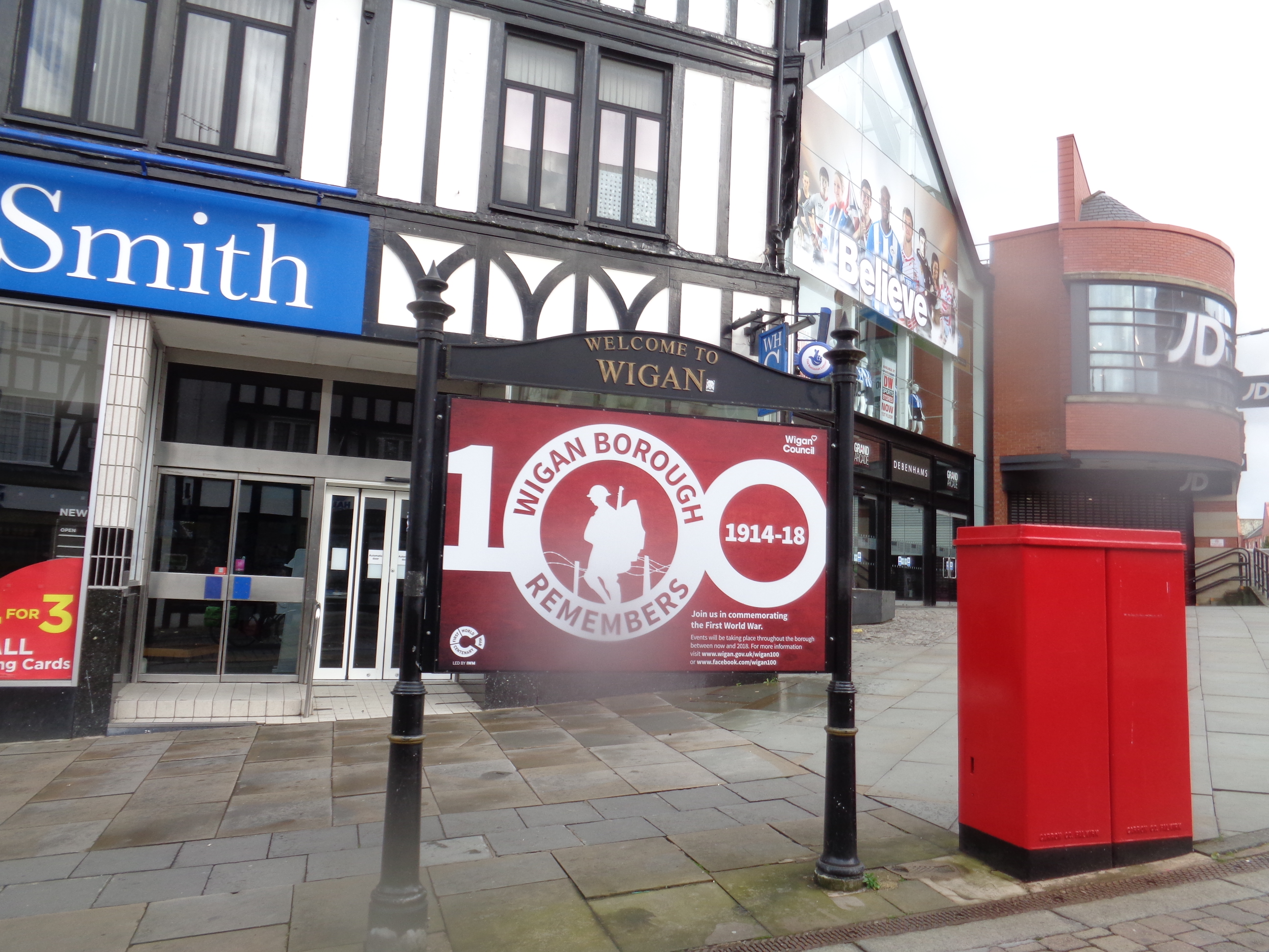 I head on, eyes wincing at the lashes of the rain, now passing through Euxton, Charnock Richard and Coppull. The beginning and end of this string of small settlements becomes indiscernible, just out-of-town supermarkets, car forecourts, petrol stations, pub carveries and their empty car parks. It reaches Wigan, where I decide to take a pause. The town here is much smaller than one would think, and is also a little more affluent than I had expected. But then I’d read George Orwell’s 1937 The Road to Wigan Pier, a sociological record of working class living standards in a sooty, overcrowded and at times squalid Lancashire cotton town. That work partly inspired this trip, and there’s something rich and curious about the first half of it. I’d like to know of how a modern-day work with the same agenda would compare.