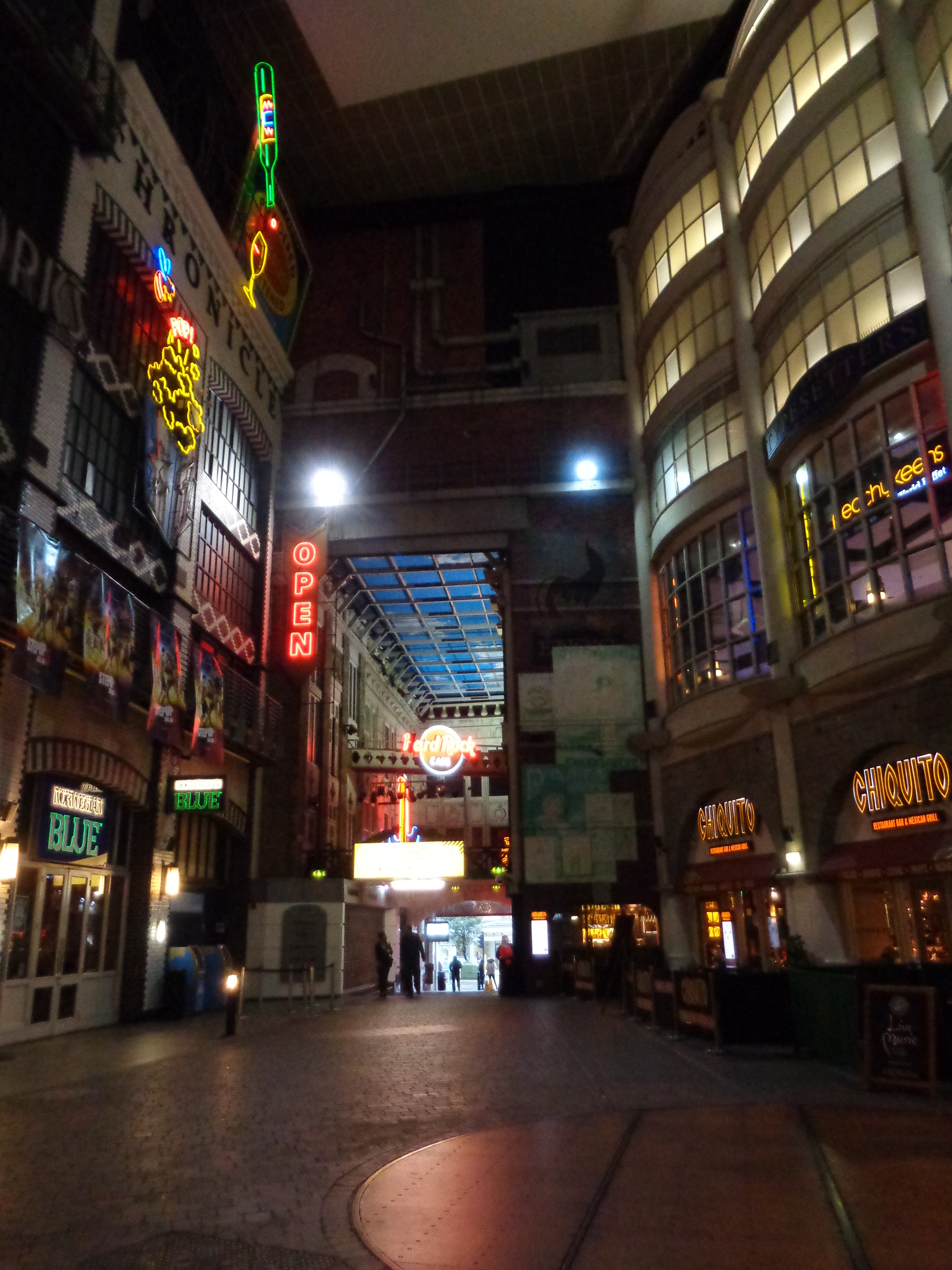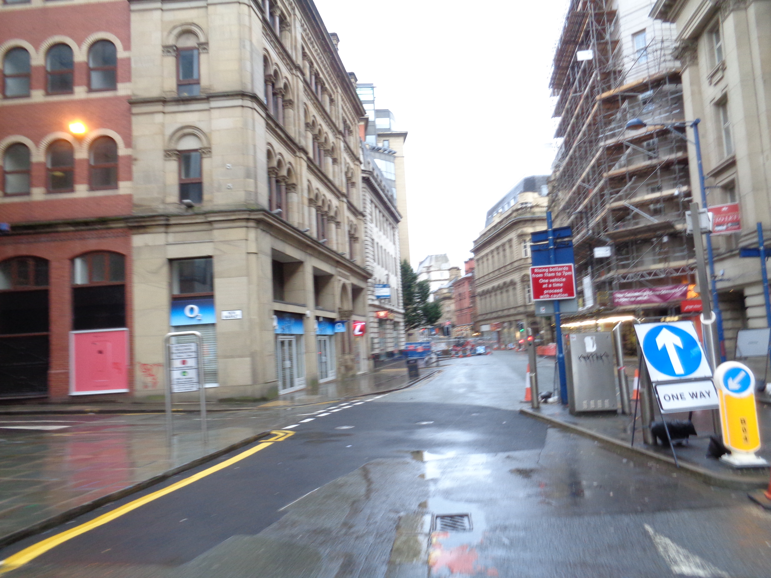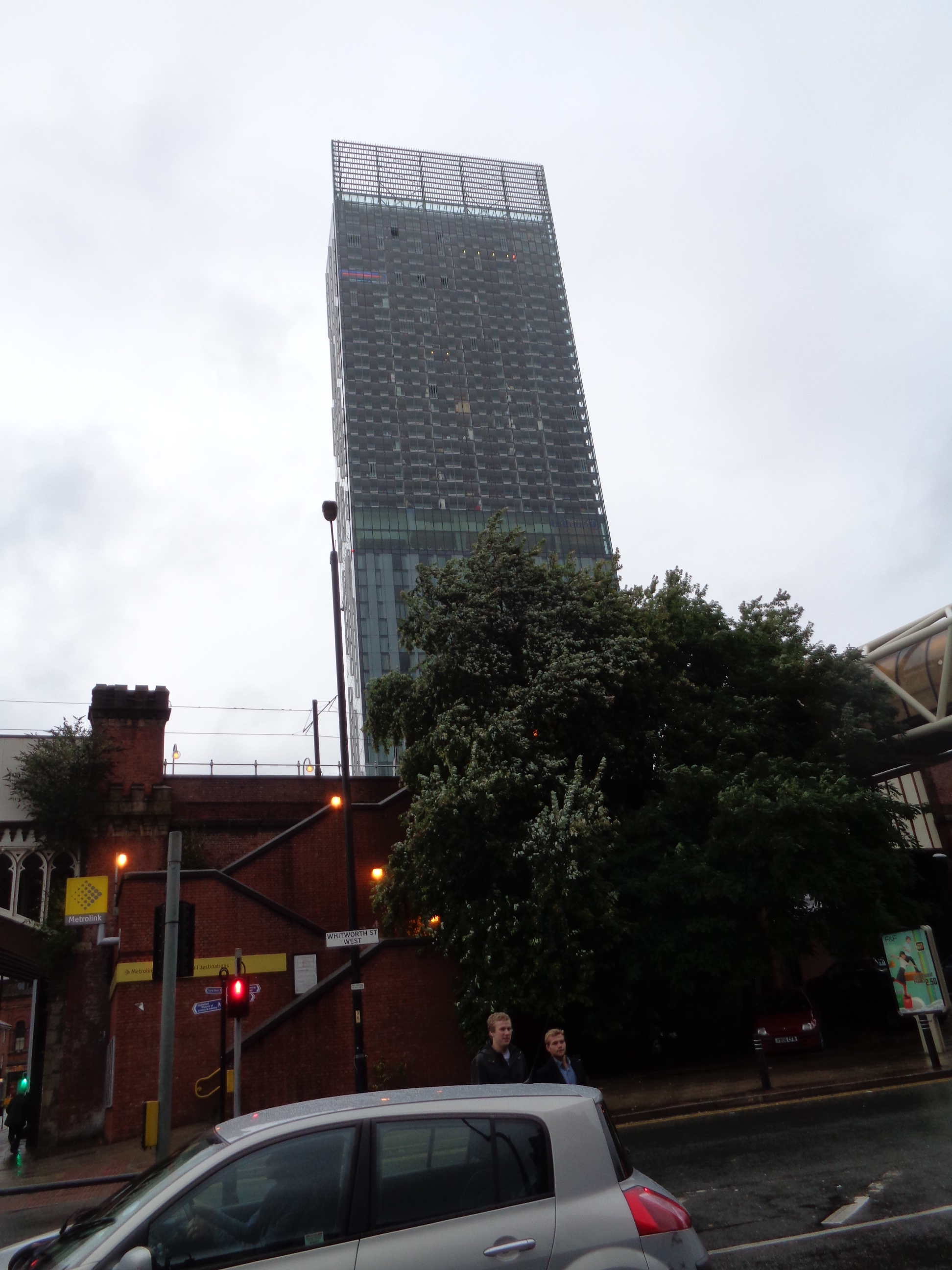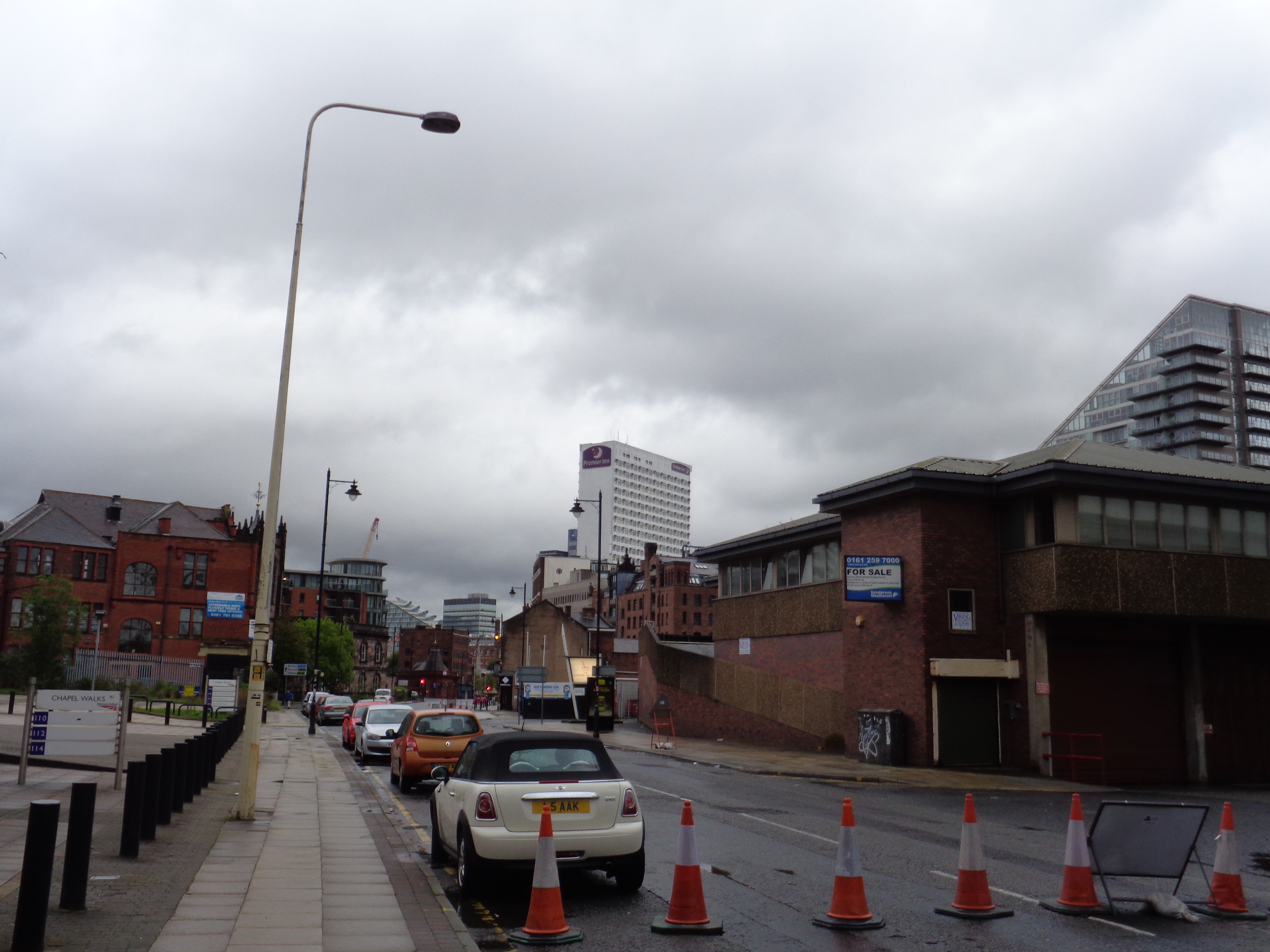 The road threads towards Victoria station in the centre of Manchester. The city itself is actually very small, and feels of equivalent size to Salford. The vast suburbs under its name of Greater Manchester give it far more pow than this small but modern centre would suggest. I thread via the National Football Museum in the impressive Urbis building and take a look at the small and unprepossessing cathedral nearby. There’s a small supermarket next to the garish and Disneyfied Printworks, a large and intriguing building given over to chain restaurants and bars. It even has its own unnecessary security team. One excessively consoles the waitress of a popular pseudo-Italian pizza chain who is feeling harassed by her manager.