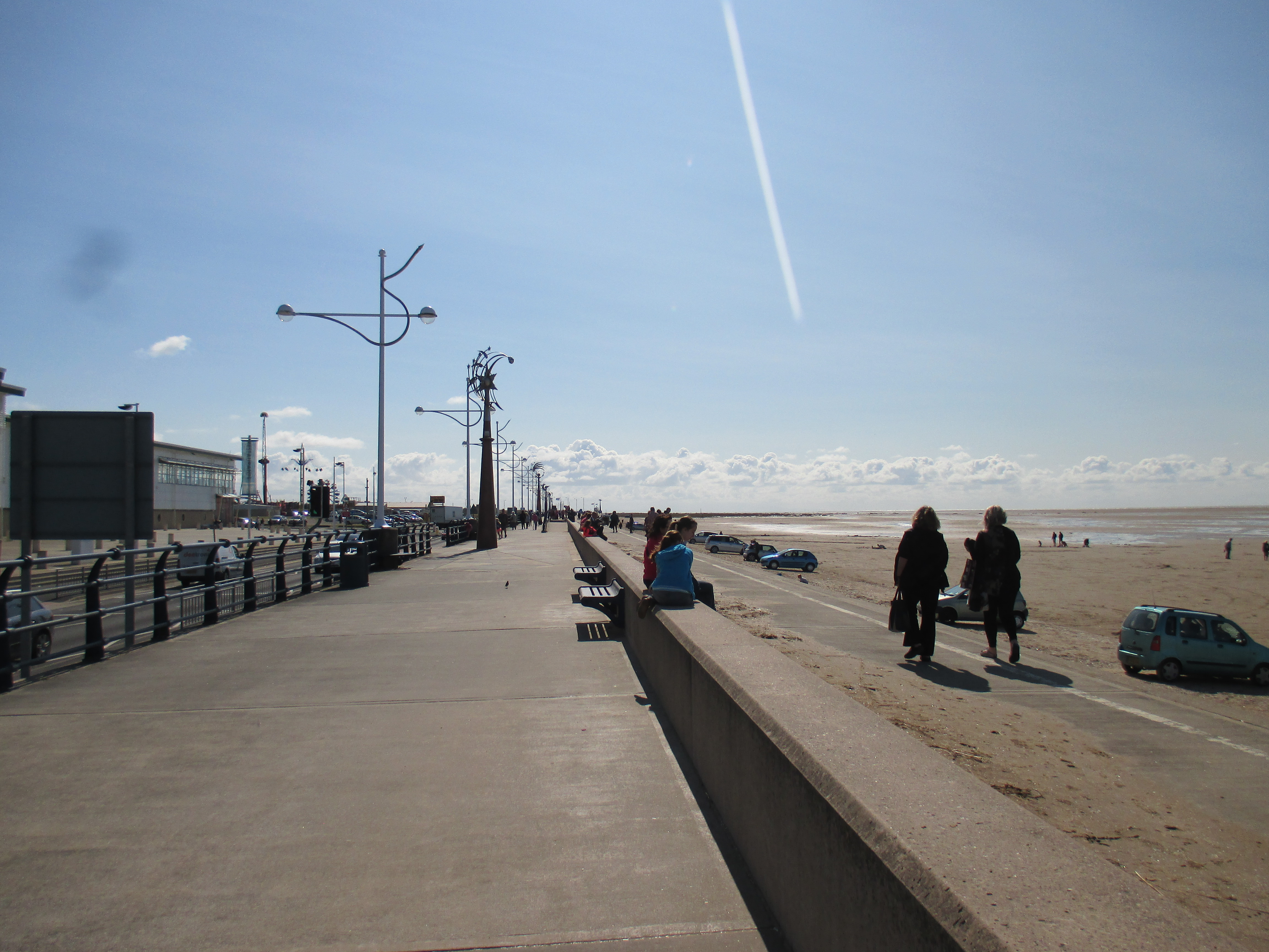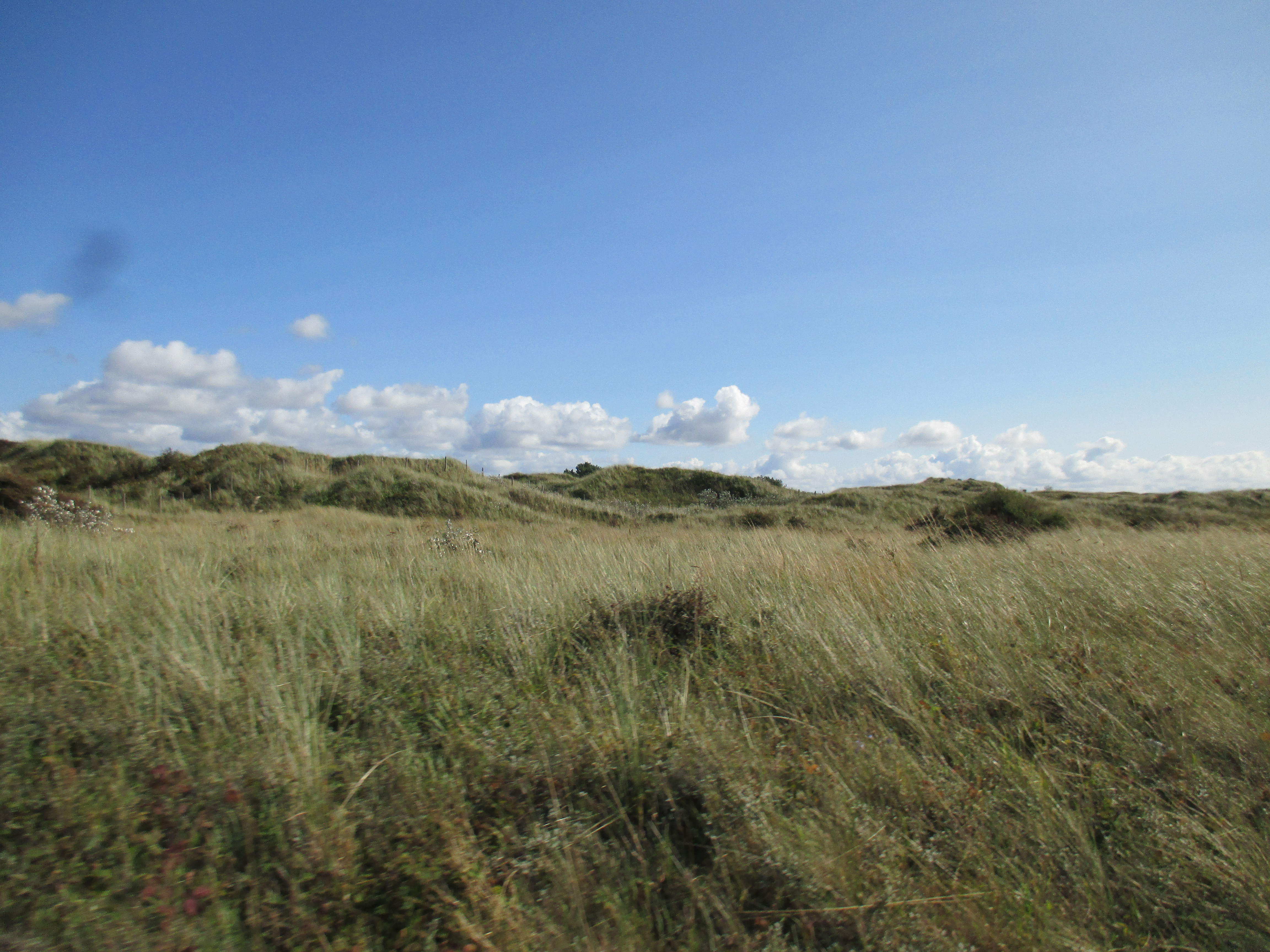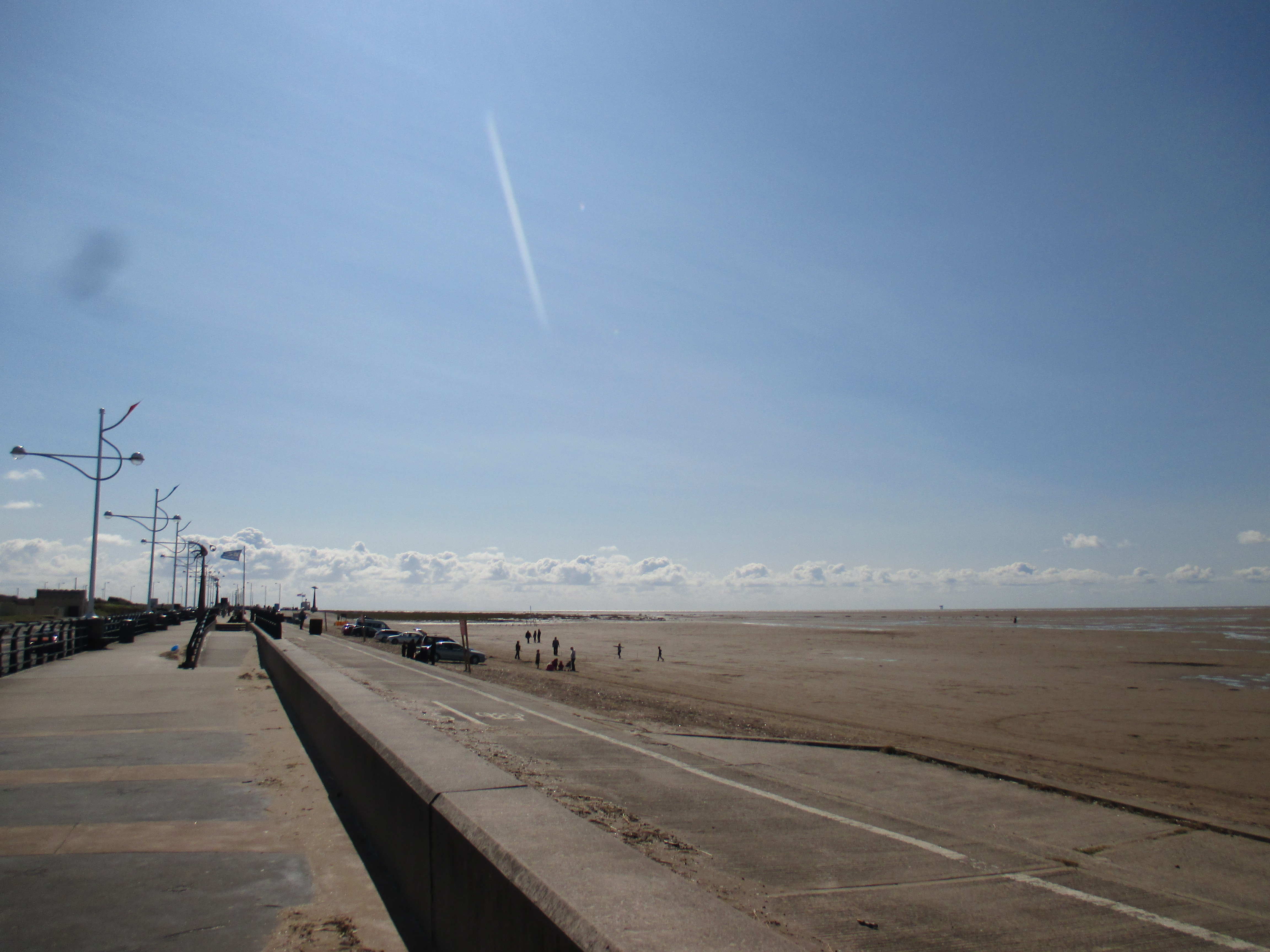 Further up the pier is the Ocean Plaza, an utterly shite retail park that brands itself ‘eat – shop – play’, with a McDonalds, KFC, Premier Inn and various chain restaurants to satisfy such desires. Demolish all this silliness and the place would be lovely, but it’s already good enough for me, and with this spurt of unusually fine weather, very enjoyable. I sit by and watch the world whilst eating muesli and water, the fodder that now sustains me for most of the day. There’s a lovely ride along the promenade after, with long golden sands to my right where children make sandcastles, and a cheerily-populous funfair to my left. The promenade disappears into a road that rides through the Ainsdale sand dunes, a delightful space where nature has been allowed to recuperate, thick and yellowy grasses jutting up through undulating hills which the coastal road neatly cuts through like a knife through warm butter. Southport marks the Merseyside boundary, I think, though the accent’s subtle.