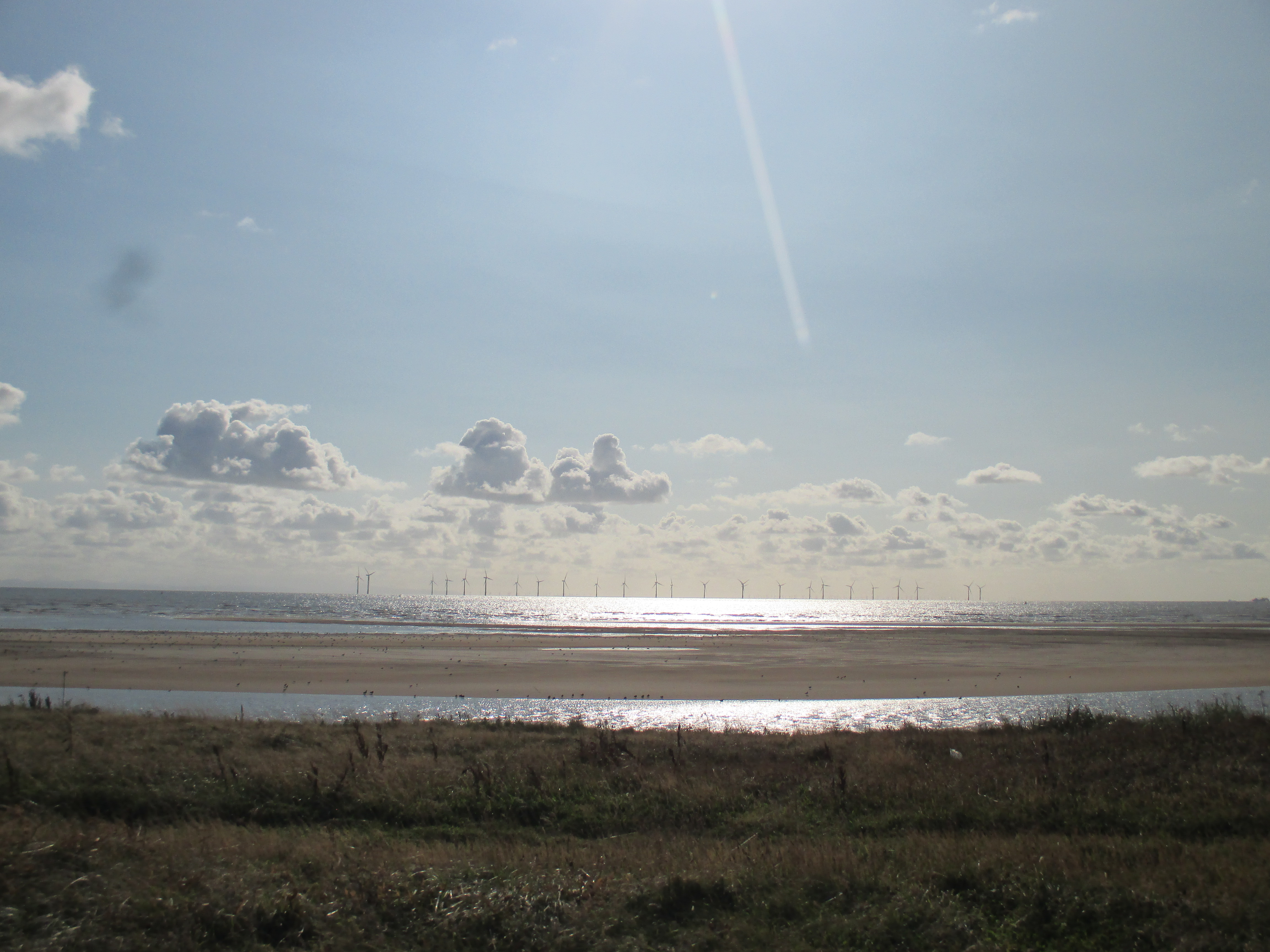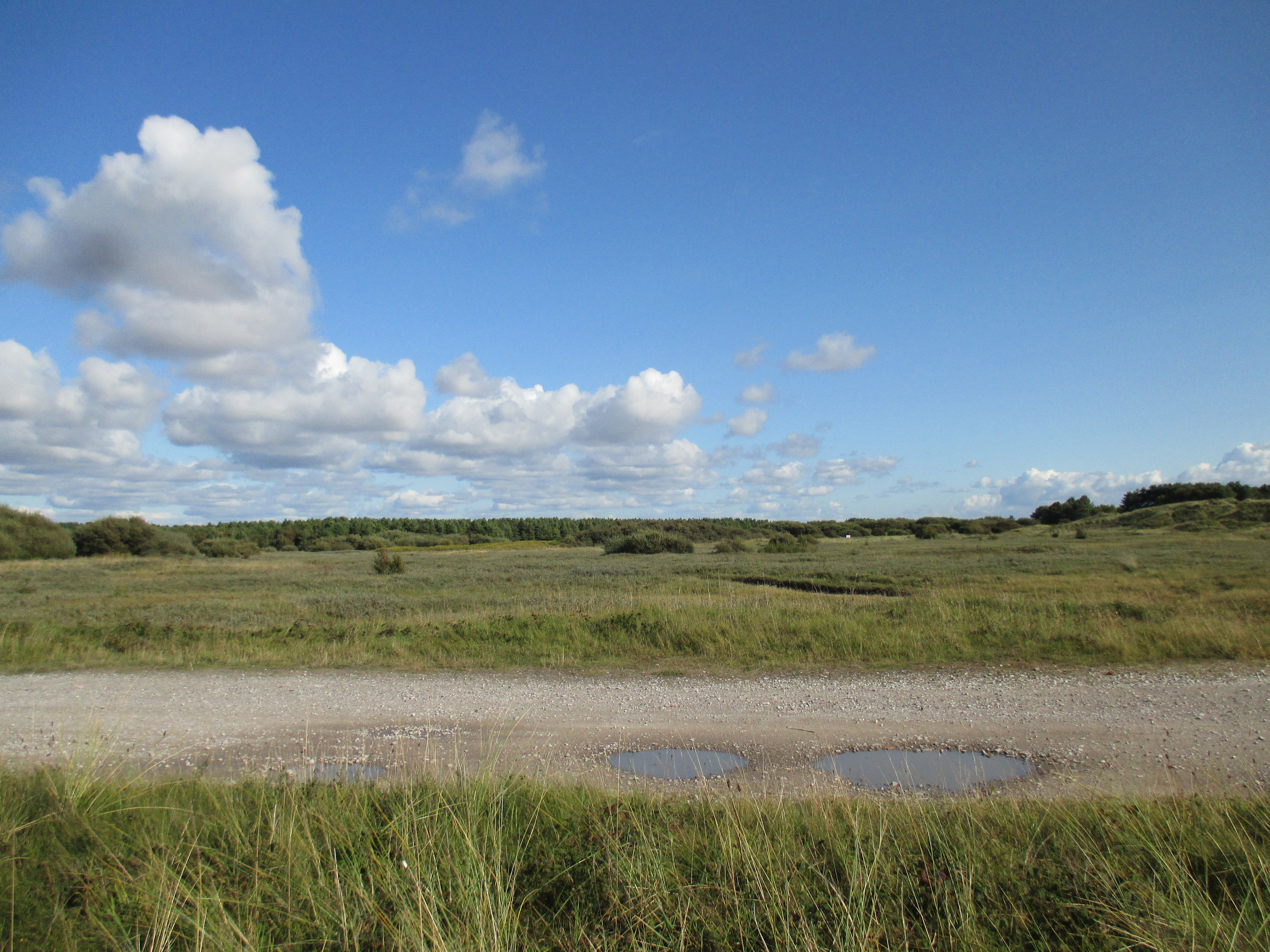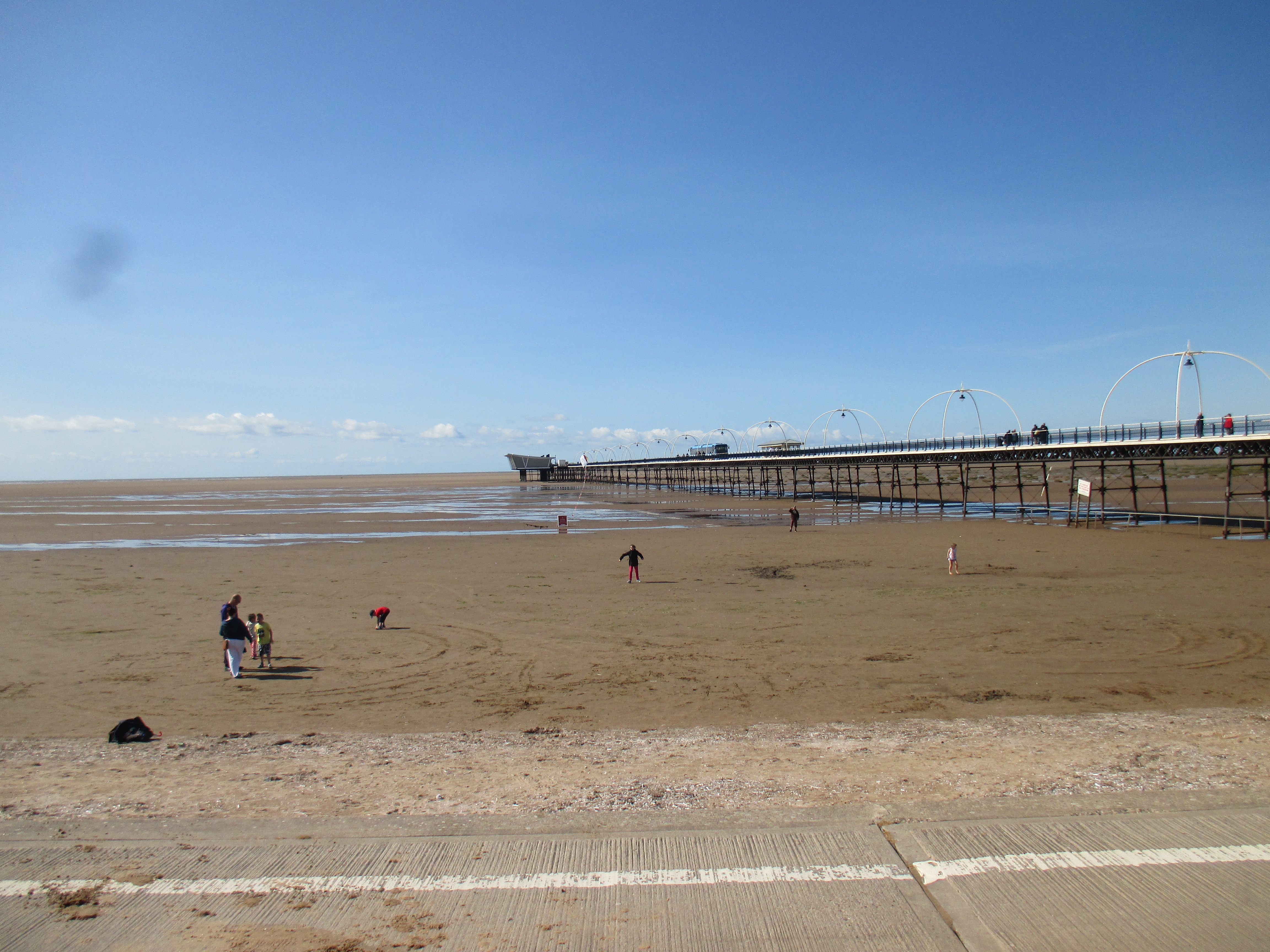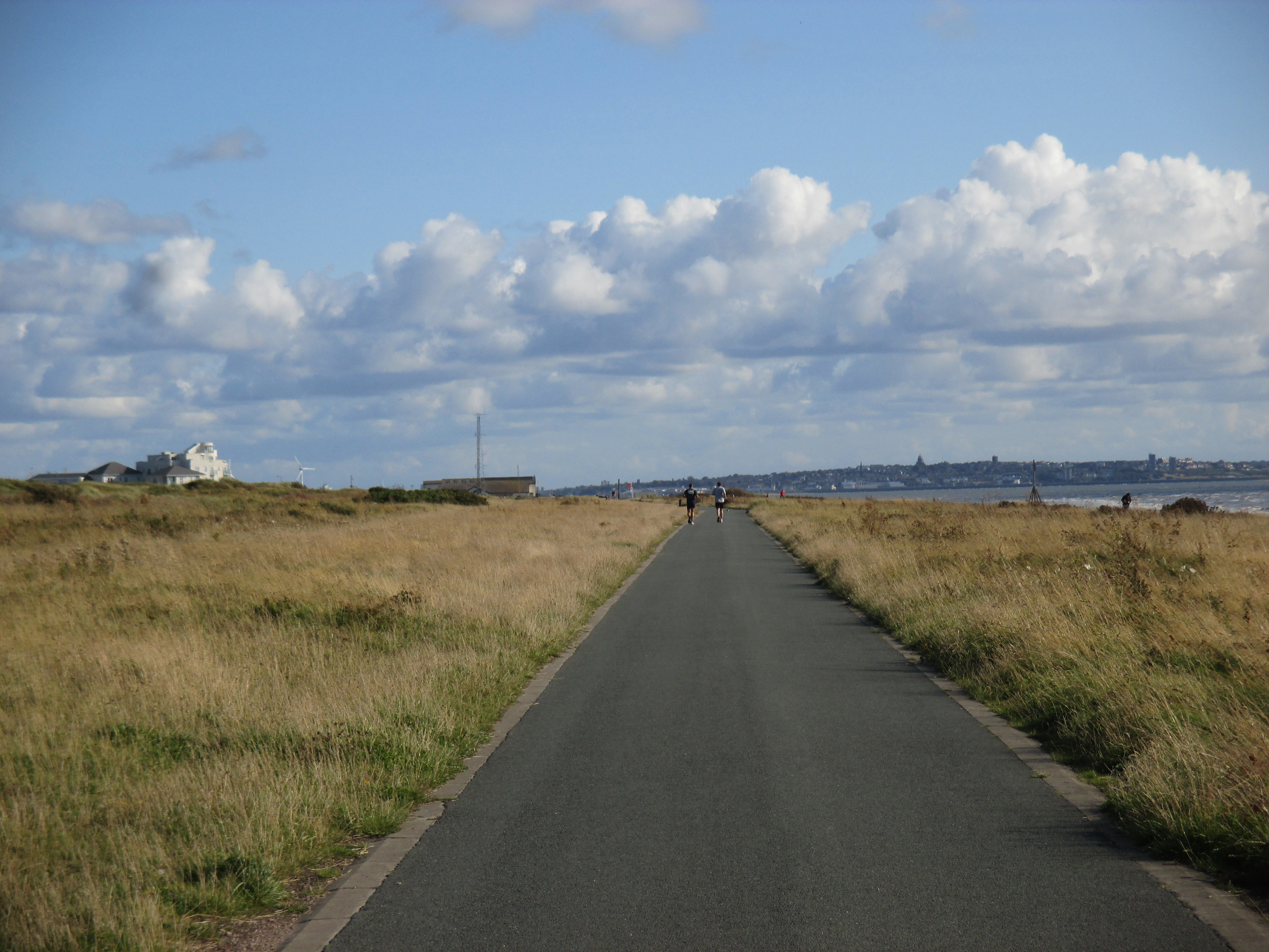 Further up the pier is the Ocean Plaza, an utterly shite retail park that brands itself ‘eat – shop – play’, with a McDonalds, KFC, Premier Inn and various chain restaurants to satisfy such desires. Demolish all this silliness and the place would be lovely, but it’s already good enough for me, and with this spurt of unusually fine weather, very enjoyable. I sit by and watch the world whilst eating muesli and water, the fodder that now sustains me for most of the day. There’s a lovely ride along the promenade after, with long golden sands to my right where children make sandcastles, and a cheerily-populous funfair to my left. The promenade disappears into a road that rides through the Ainsdale sand dunes, a delightful space where nature has been allowed to recuperate, thick and yellowy grasses jutting up through undulating hills which the coastal road neatly cuts through like a knife through warm butter. Southport marks the Merseyside boundary, I think, though the accent’s subtle.