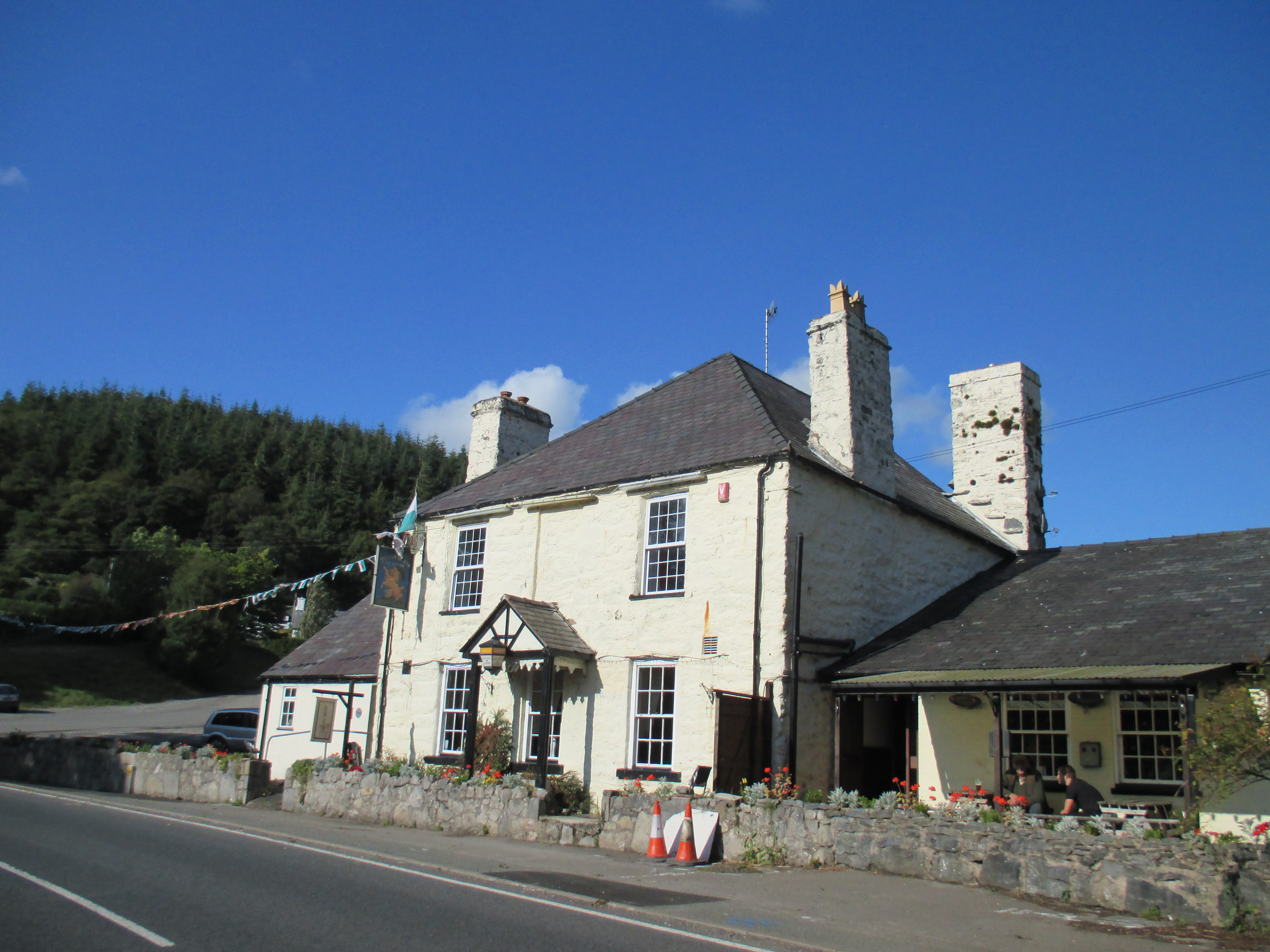 The A5 largely follows the course of the River Dee, and passes through villages with unpronounceable names like Glyndyfrdwy. It’s pretty scenic and pleasant, and the pace of my cycling slows in tandem with the speeds of life here. I take a stop in the village of Corwen, a village with a couple of shabby pubs and shops. There’s a growing normalisation of bilingualism here. Road signs switch their ordering as we pass from county Wrexham into the county of Denbighshire. ‘Slow Araf’ becomes ‘Araf Slow’, Welsh taking priority. The town’s chippy is called a ‘psygod a sglodion’ instead of ‘Tony’s fish bar’ or ‘XX Super Fry’. I pop into the Eagles Hotel for a quick half and get a deeper sense of the place.