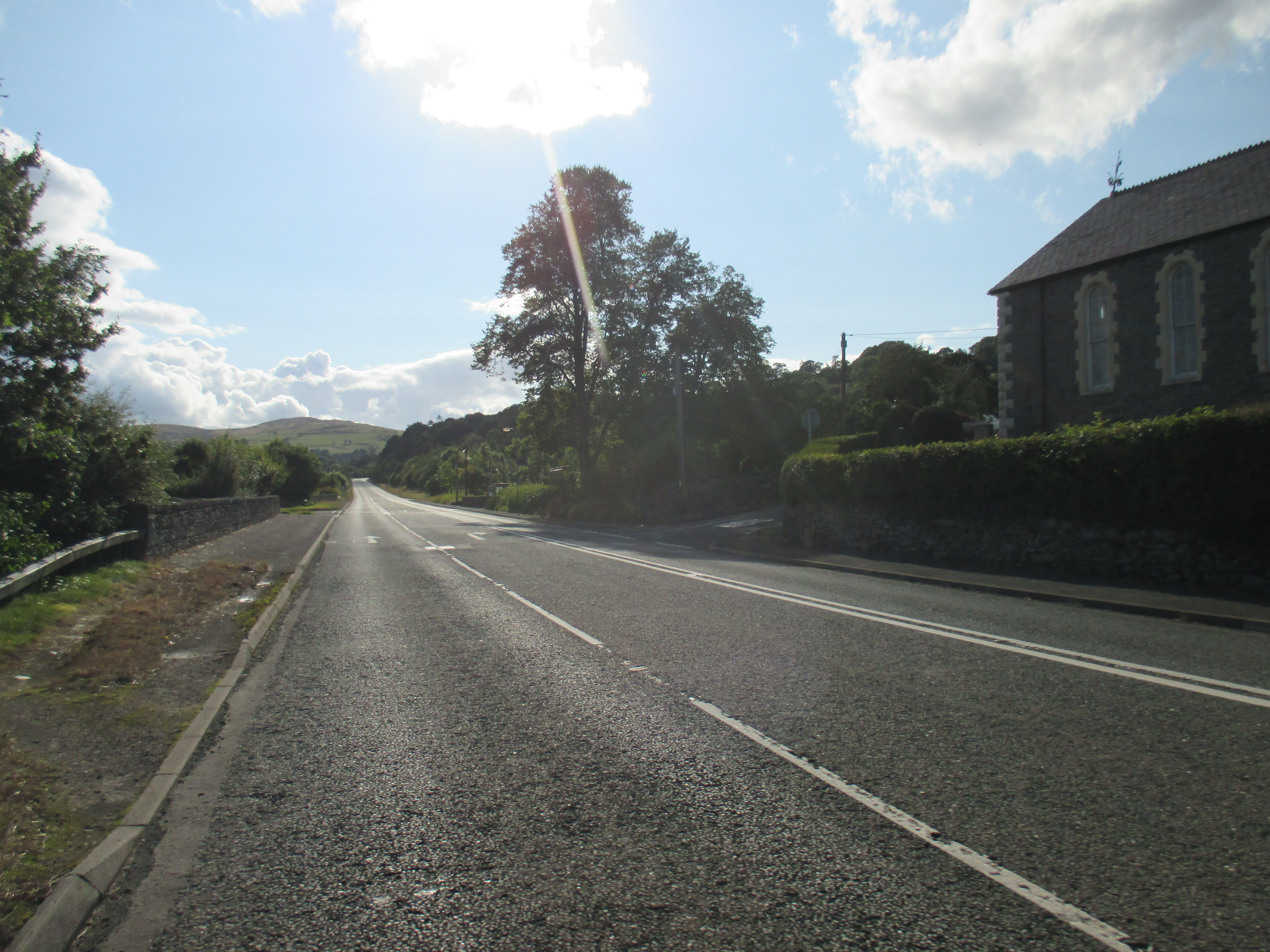 I get talking to a pretty strange fella outside the pub. Conversation in Wales so far has been a little sluggish, as I found in Wrexham. Sharp, racy and acerbic wit won’t be found here, unlike the bigger nearby cities of Wrexham and Manchester. It’s more slow and cautious without being ponderous, delayed but not returning with an insight. Perhaps I’m the one slow, asking the wrong questions, not quite getting north Wales just yet. I suspect it’s something in between. But the accent’s changing as I pass further west, losing some of those Scouse elements just about present in the Wrexham accent (an effect of Liverpudlian migration to the plethora of light industries there in the Seventies), to a tone that’s more cavernous in the mouth, yet at the same time monotone, lacking that singsong intonation I’ll come to hear in south Wales. The villages are mainly residential, and it’s becoming hard to suss the nature of life here. With reticent albeit friendly locals, I’m feeling in the dark about the place.