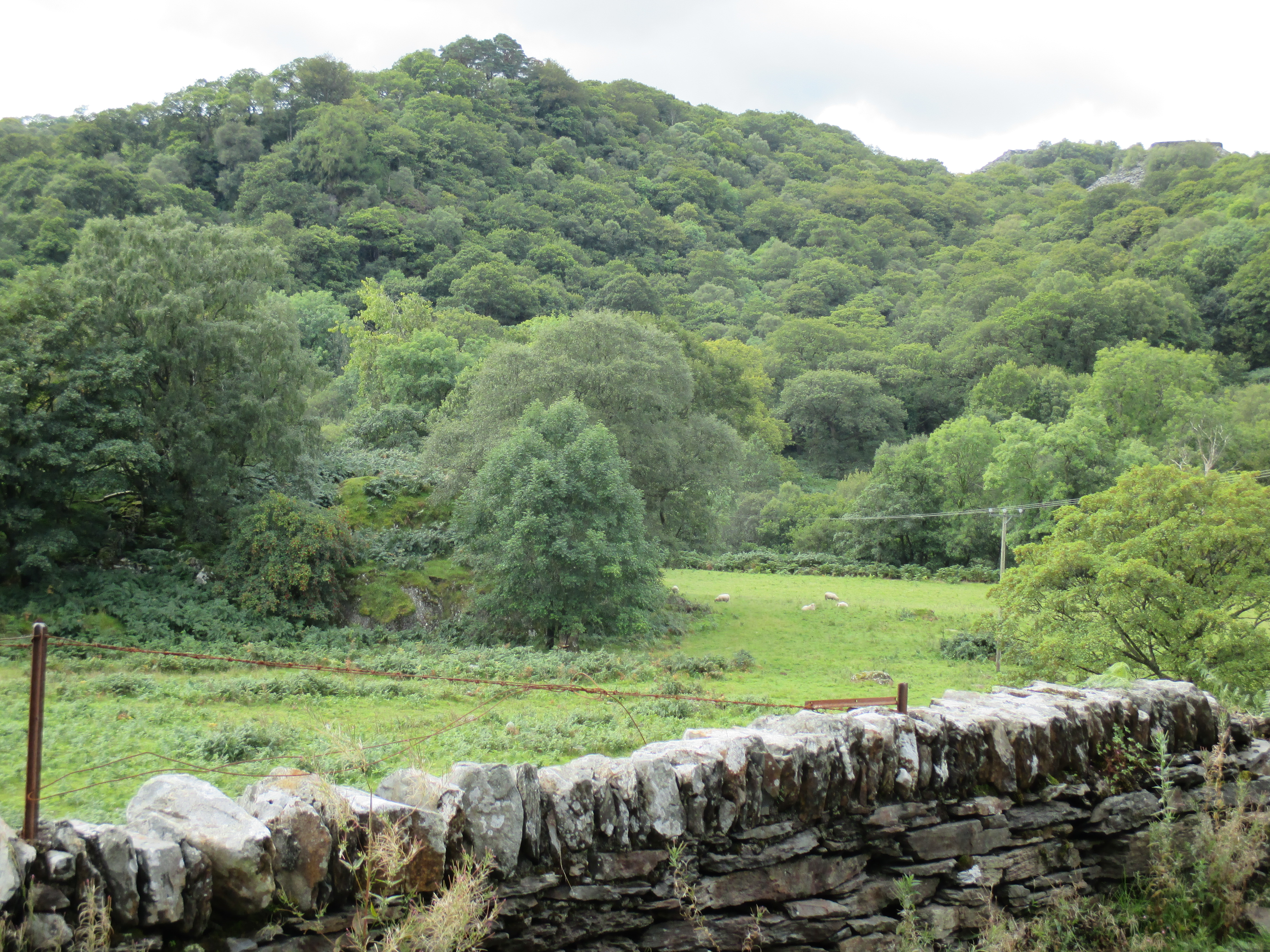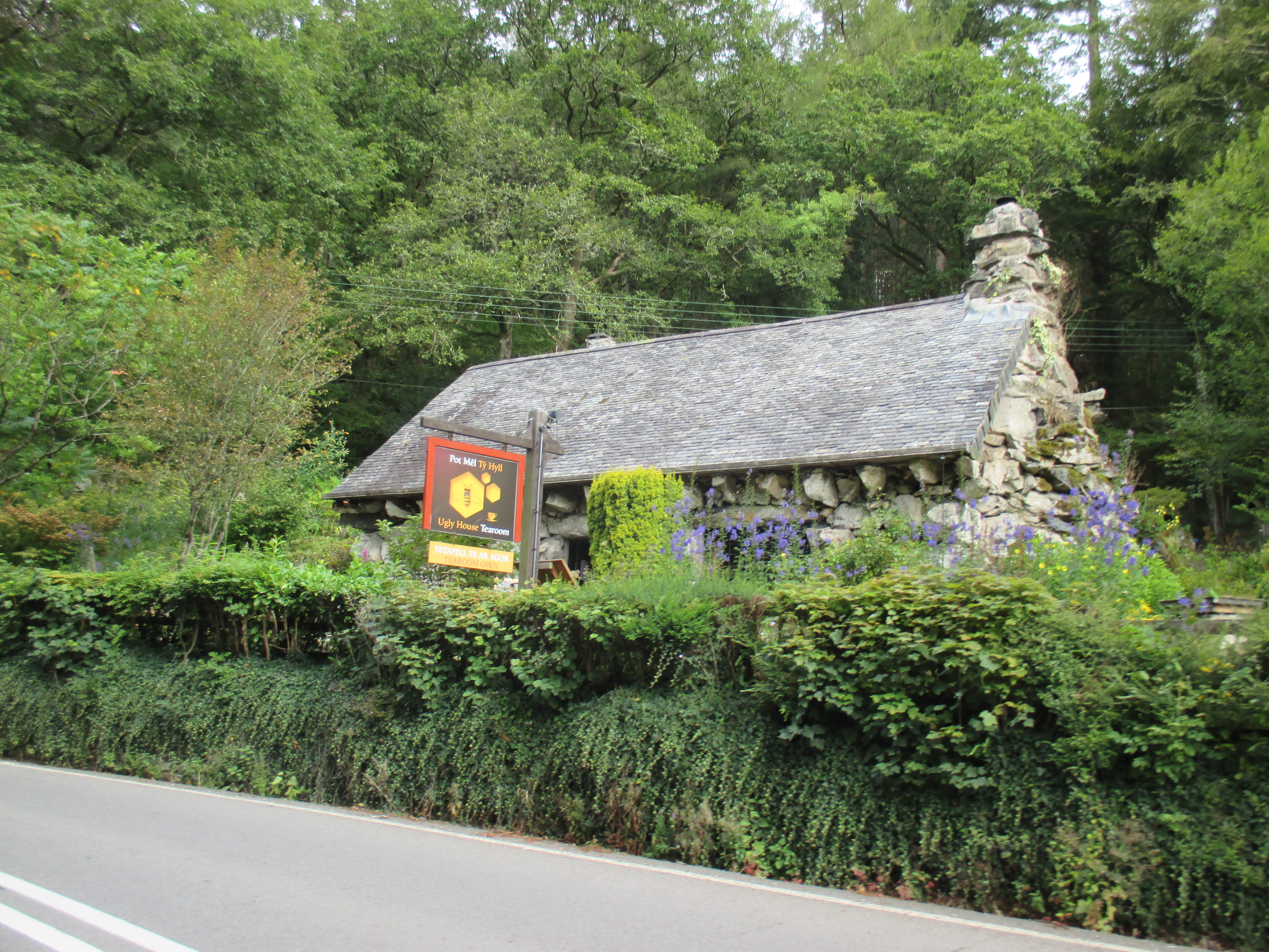 Snowdonia can also be enjoyed in the rain. As a variety of the travel experience, it’ll turn out to be inferior to say the least to a delicious afternoon huffing up then whizzing down its mountain peaks in the baking heat, sustained by tap water, Brains’ ales and fresh blackberries, but hey, it’s still alright. The weather’s threatening murder as I set out to leave. I dress up in my waterproofs and say goodbye to my friends from the previous evening, and leave the hostel by Swallow Falls. I’m following the road west through Snowdonia and passing by Snowdon. It’s especially forested and verdant here, and I pass Artists’ Woods, a pretty little thing with the bizarre name of ‘Ugly Cottage’, and reach Capel Curig, a small village where the road forks. I take the road less travelled, up towards Snowdon itself.