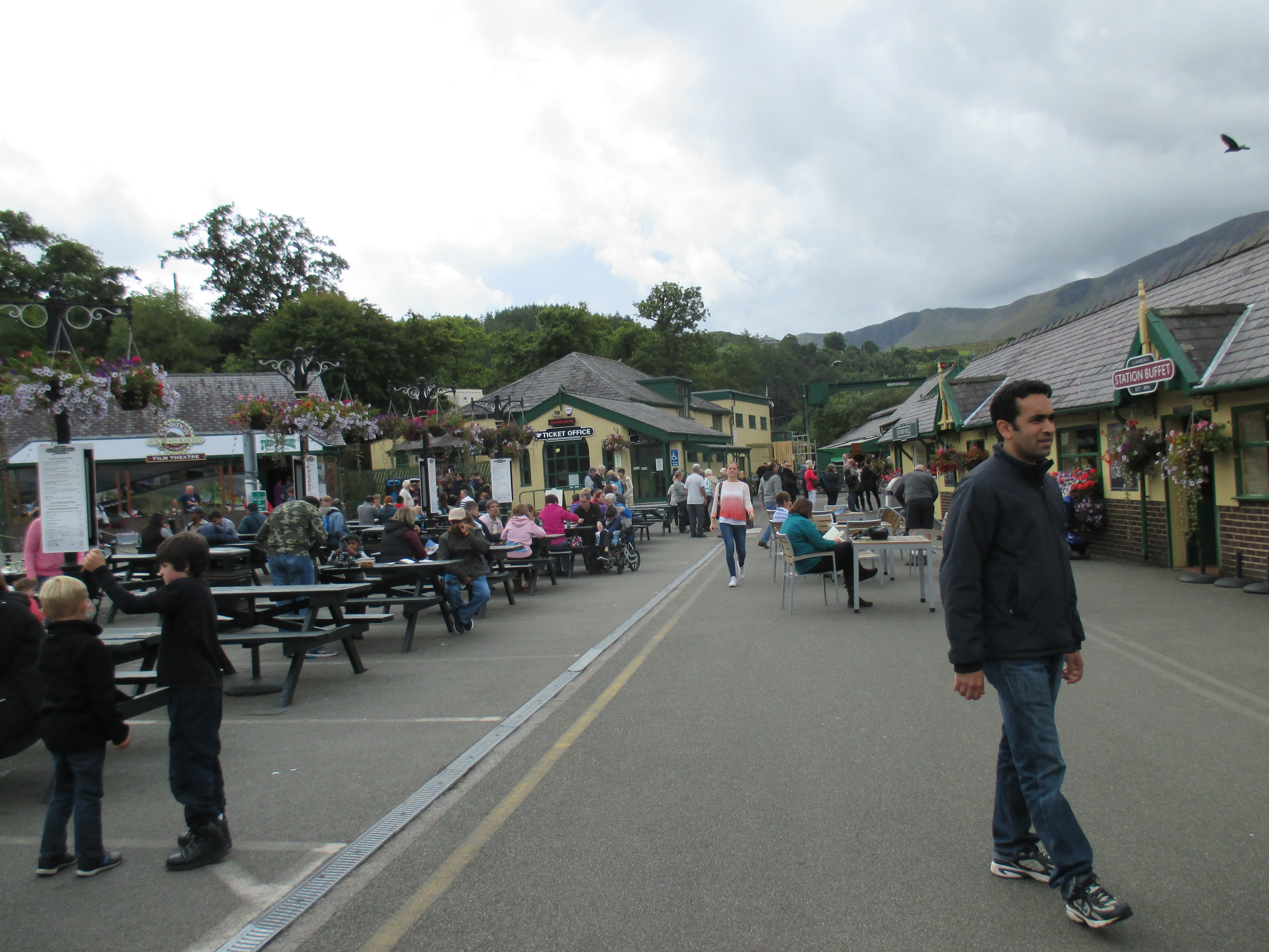 At the bottom is Llanberis, another village defined by its provision for tourism. Outside one can see the tiers cut into a purple mountain, the remains of slate quarrying that once provided an income for workers who travelled here. There’s a small railway here that charges huge prices to take up tourists to the top of Snowdon and back, and it’s fully booked before I can even consider being lazy enough not to walk it. Again, like at Betws-y-Coed, I encounter visitors from across the world here, attracted by the tranquillity promised by the park and the relative ease of ascending Snowdon. There are a couple of large lakes one can gaze out languorously, think of the distance of home, of one’s love, or the rumble in one’s tum that suggests its time for lunch…