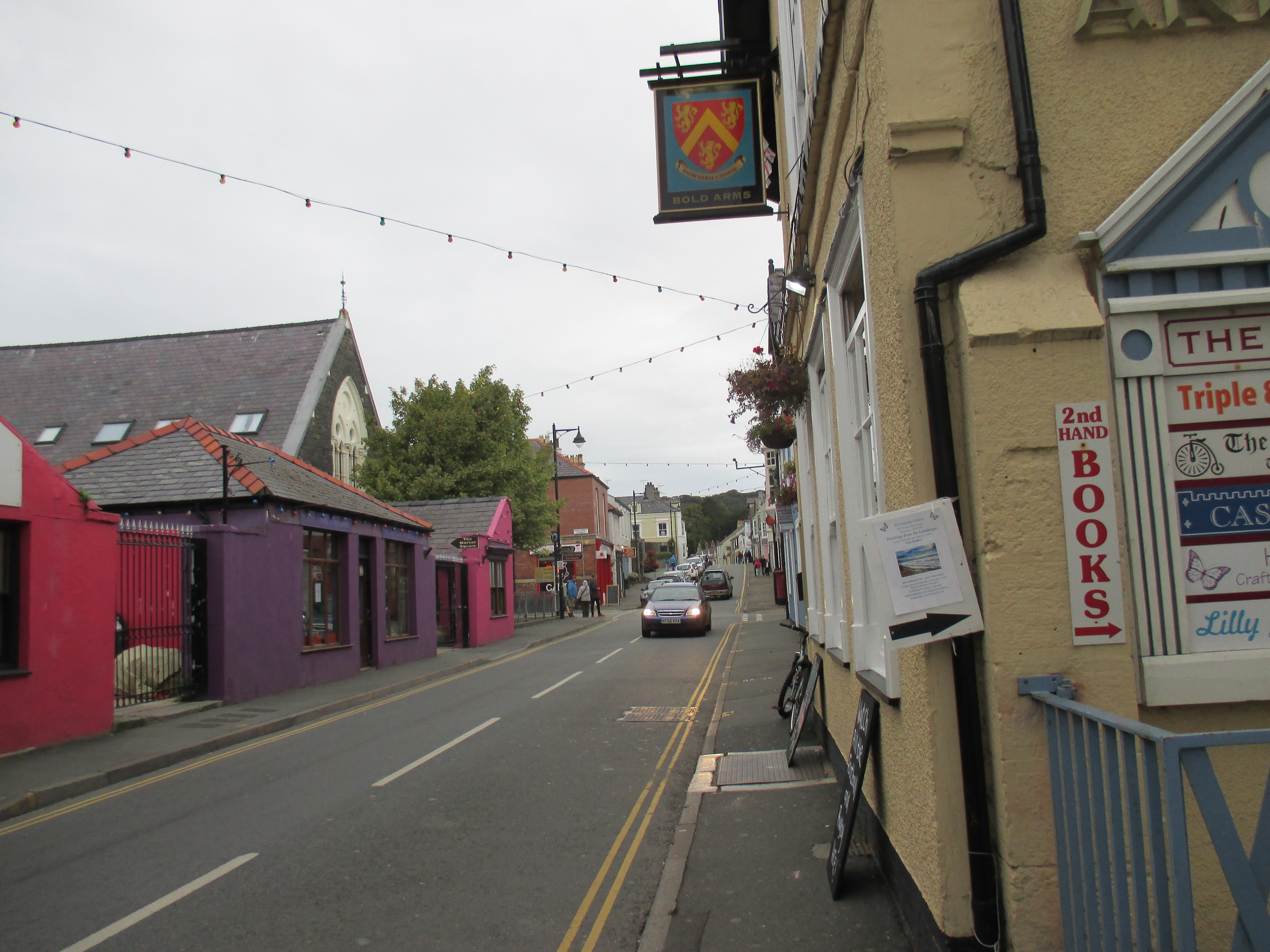 A fella pushing his cycle out of one of Benllech’s cheery terraces cheers me on as I huff back up towards the peak overlooking the bay. From hereon it’s an easier ride through the fields down towards Beaumaris. On another day I’d’ve stopped at Penmon where there’s reputed to be one of the most beautiful of beaches, but the variable though invariably wet weather rubbishes this plan. I pause at the Panton Arms. A man and woman in their mid-30s walk together into the pub, their bodies close but not holding hands. It’s a break away. He’s drinking lager, and she a large glass of pink, which neither much enjoy, but enjoyment’s not the aim. They talk a little while, exchanging observations until one annoys the other. There’s laughter and the airing of frustrations. Opposite there’s a Chinese chip shop. Bored kids skip in the street and make robotic dances. Time slowing.