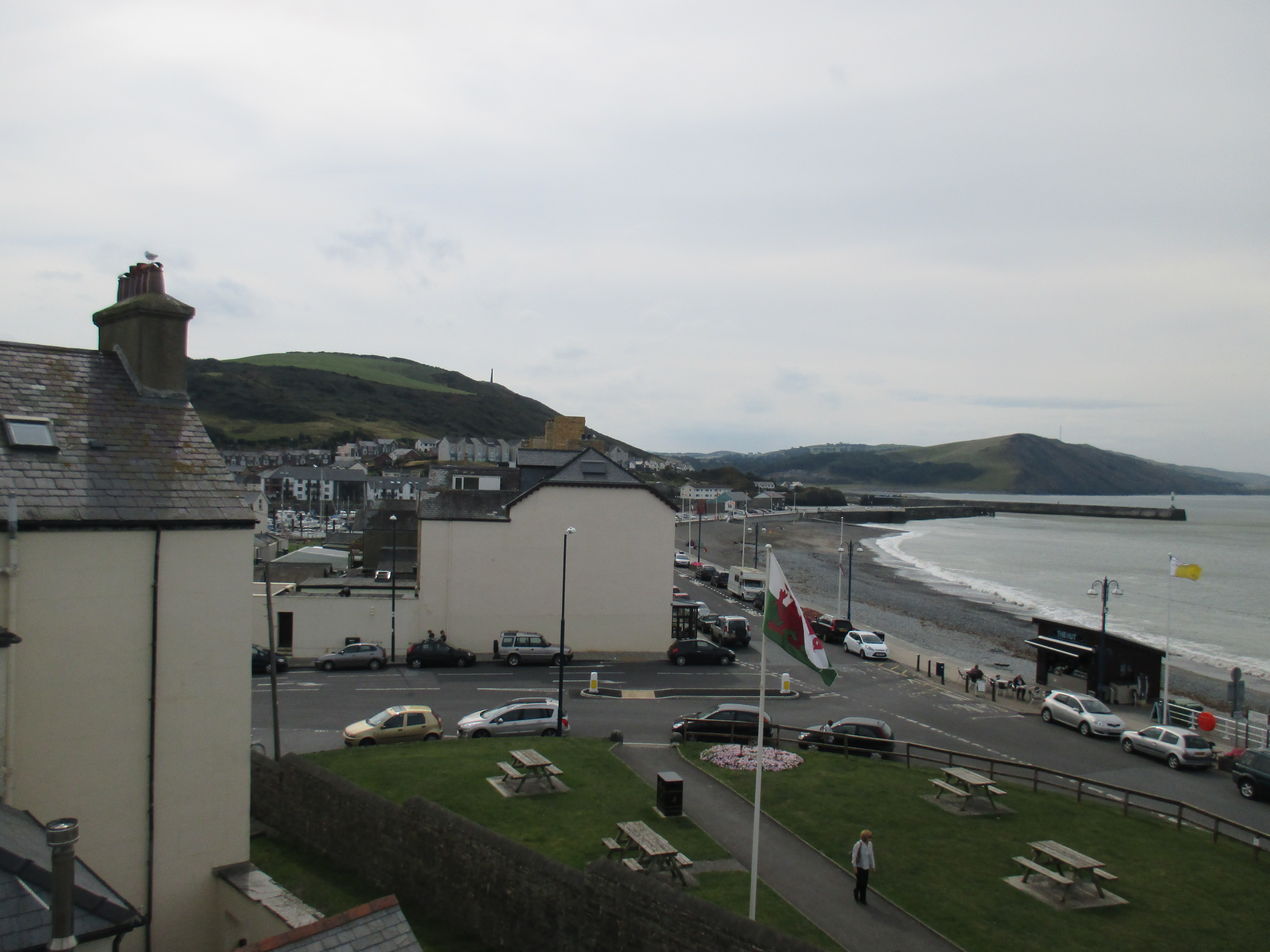 The road to Aber is largely steep and up hill, crossing from Powys into the county of Ceridigion. The final push into the town is exhausting, but the reward is well worth it: a rapid descent into a small, isolated but utterly lovely little seaside town-cum-university city. Good morning Aberystwyth.