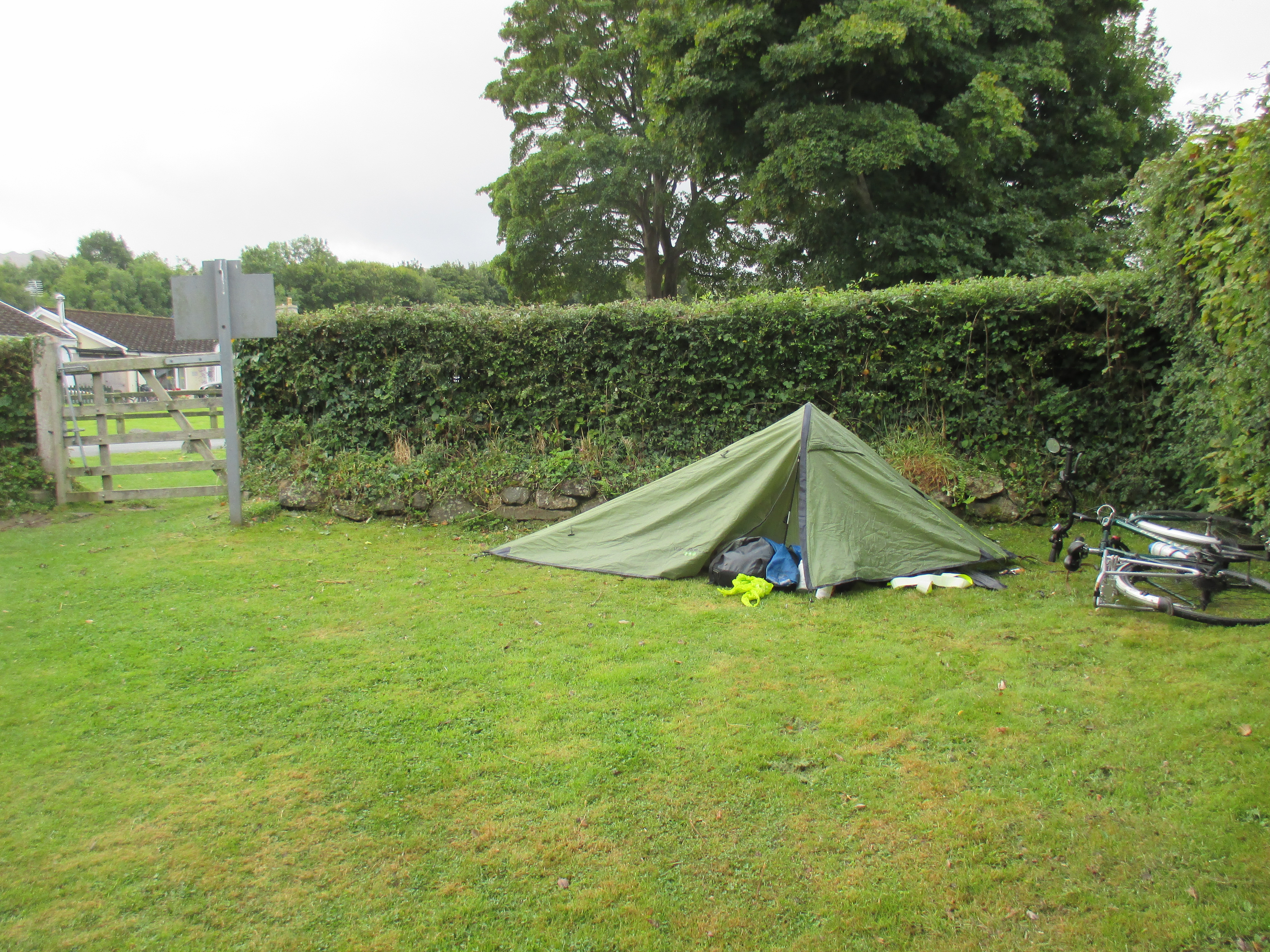 I awake in my tent next to a five thousand year old memorial to a forgotten life and a forgotten way of living. Yet the large stone still stands improbably upright despite its hulking size over the smaller stones propping it up. Though the stones are in a residential area on the edge of Newport, a tall privet hedge ensures I’m secluded. A middle-aged man calls to a woman, perhaps his wife, in the distance, as he loads up an estate car with household bric a brac. Up and awake early, I pack up furtively and sneak out.