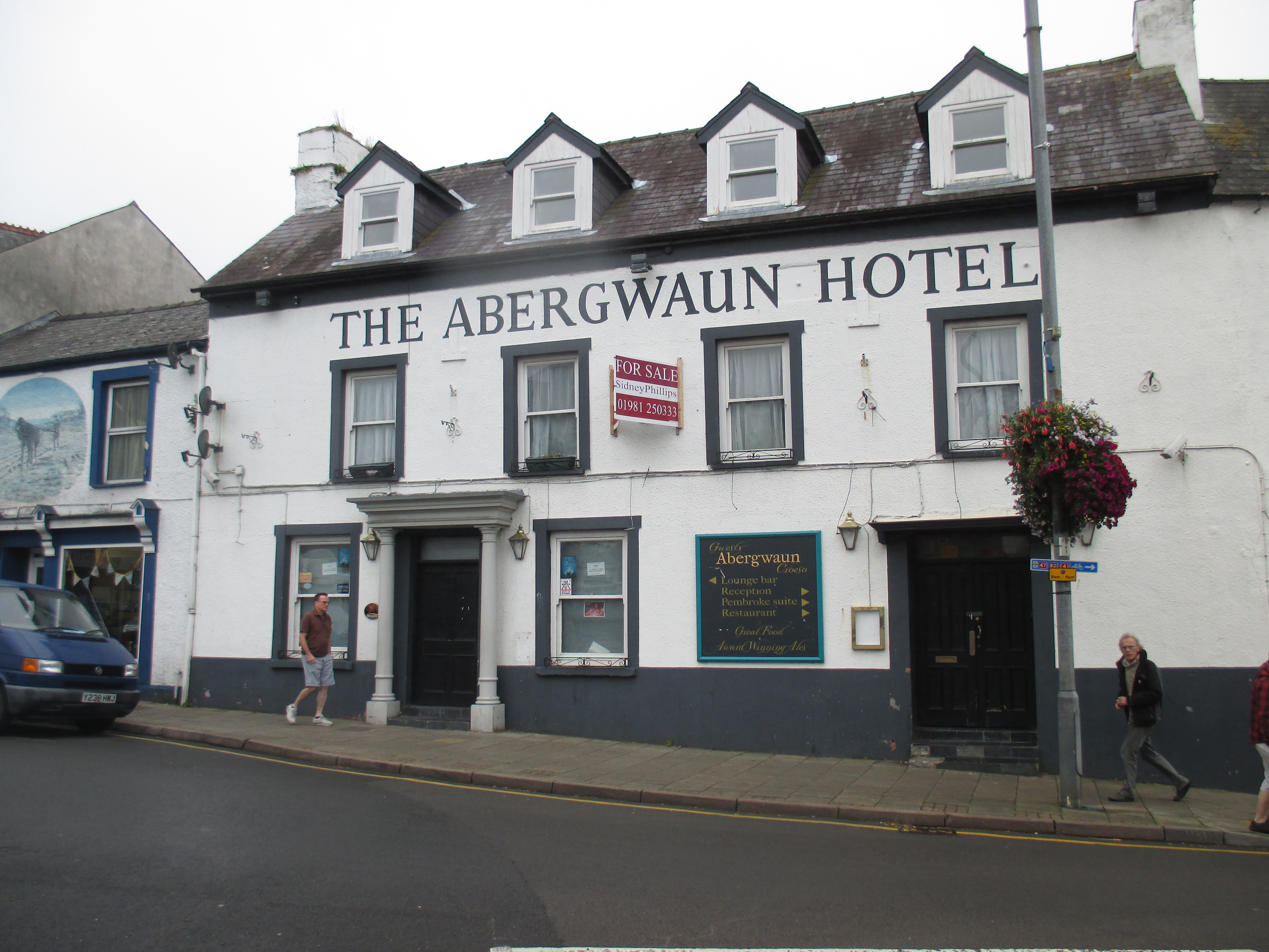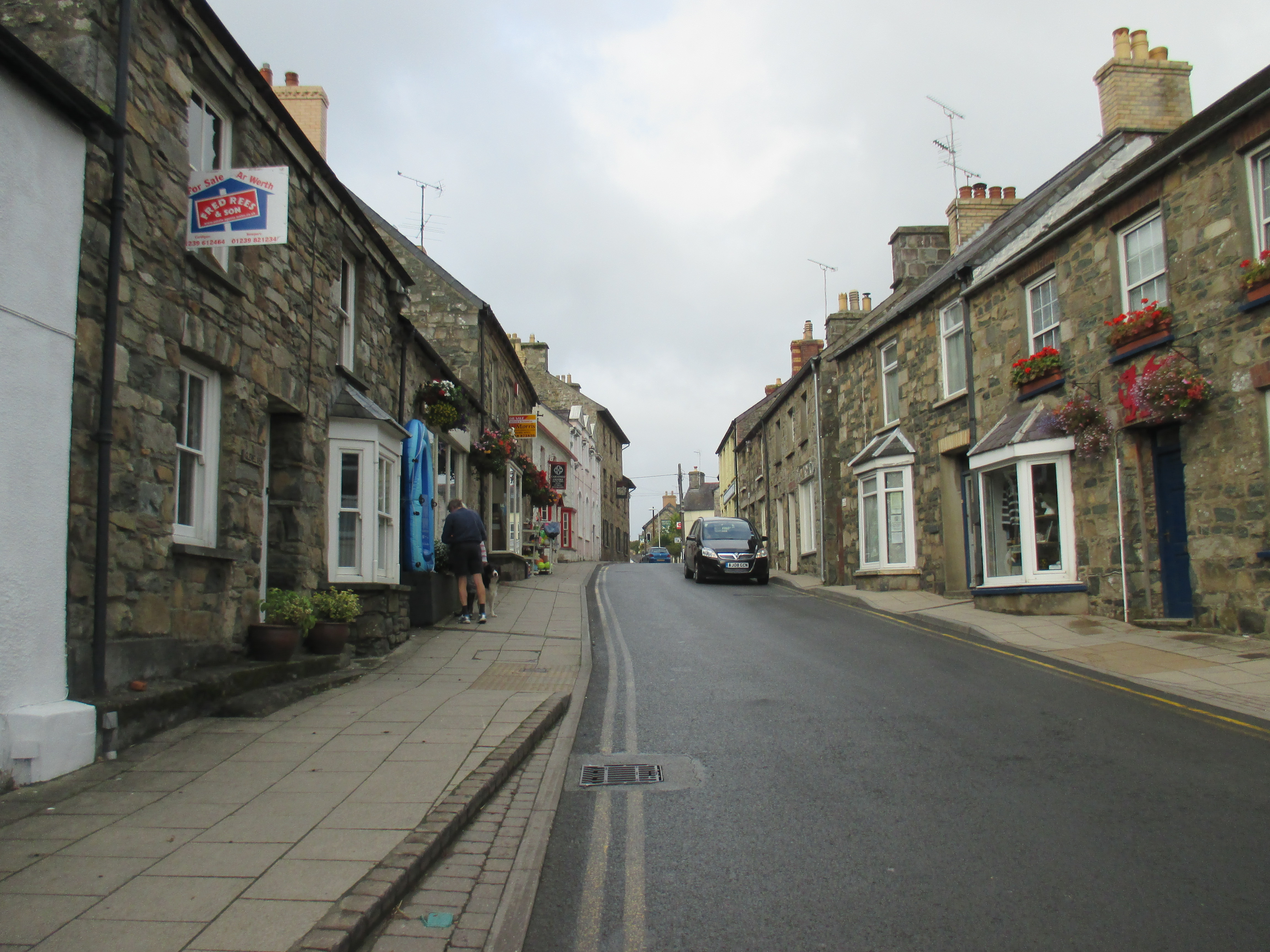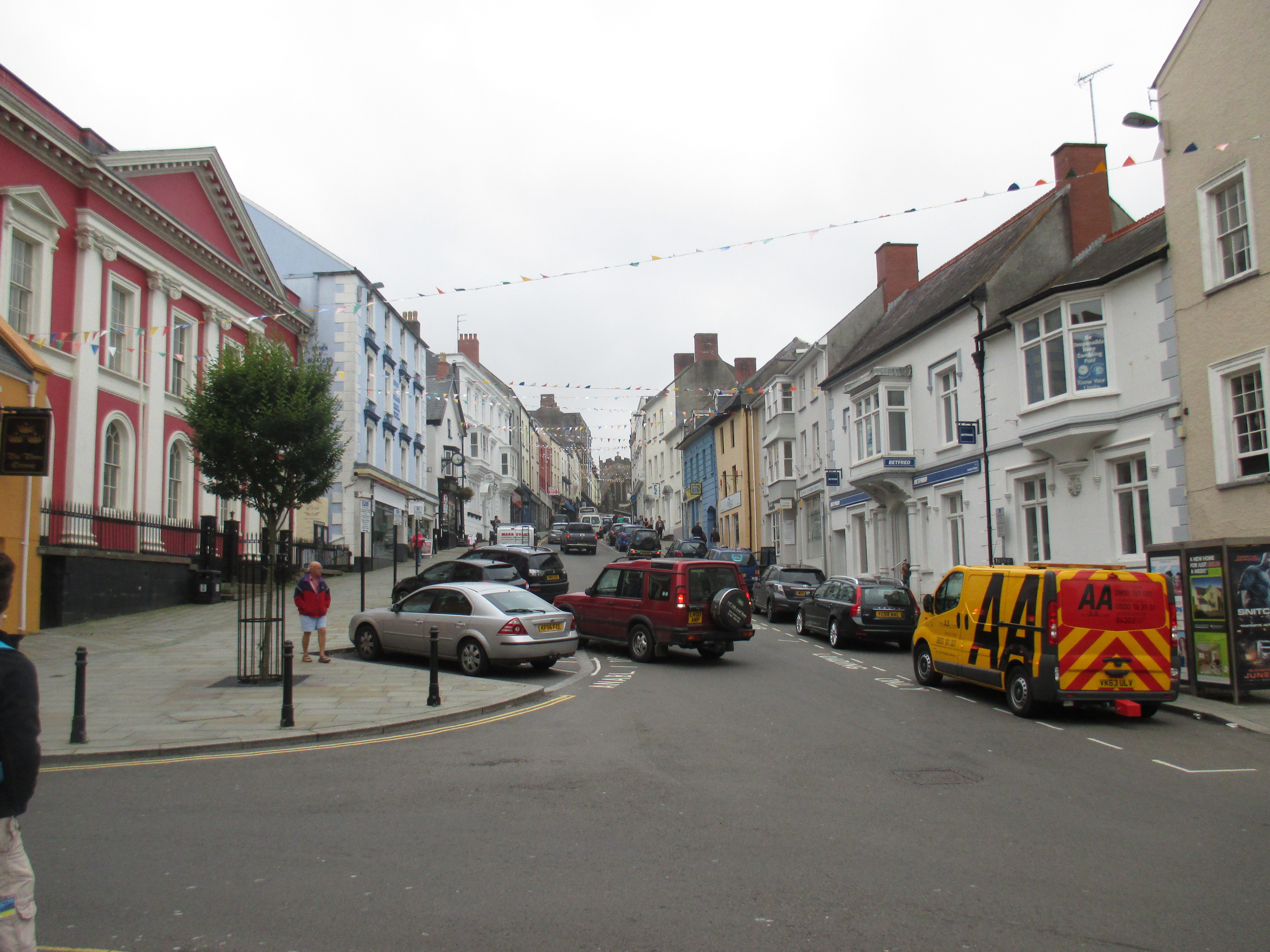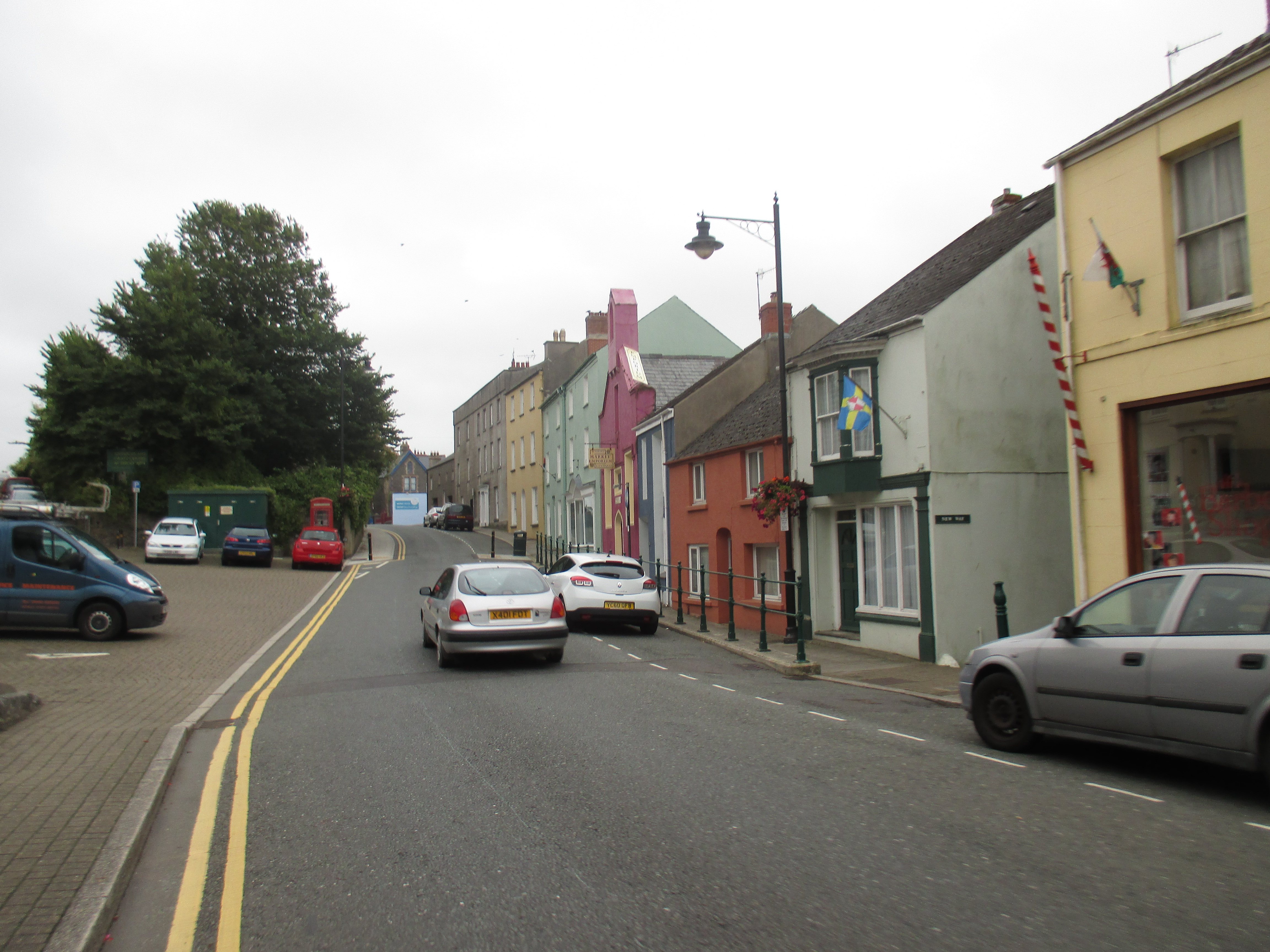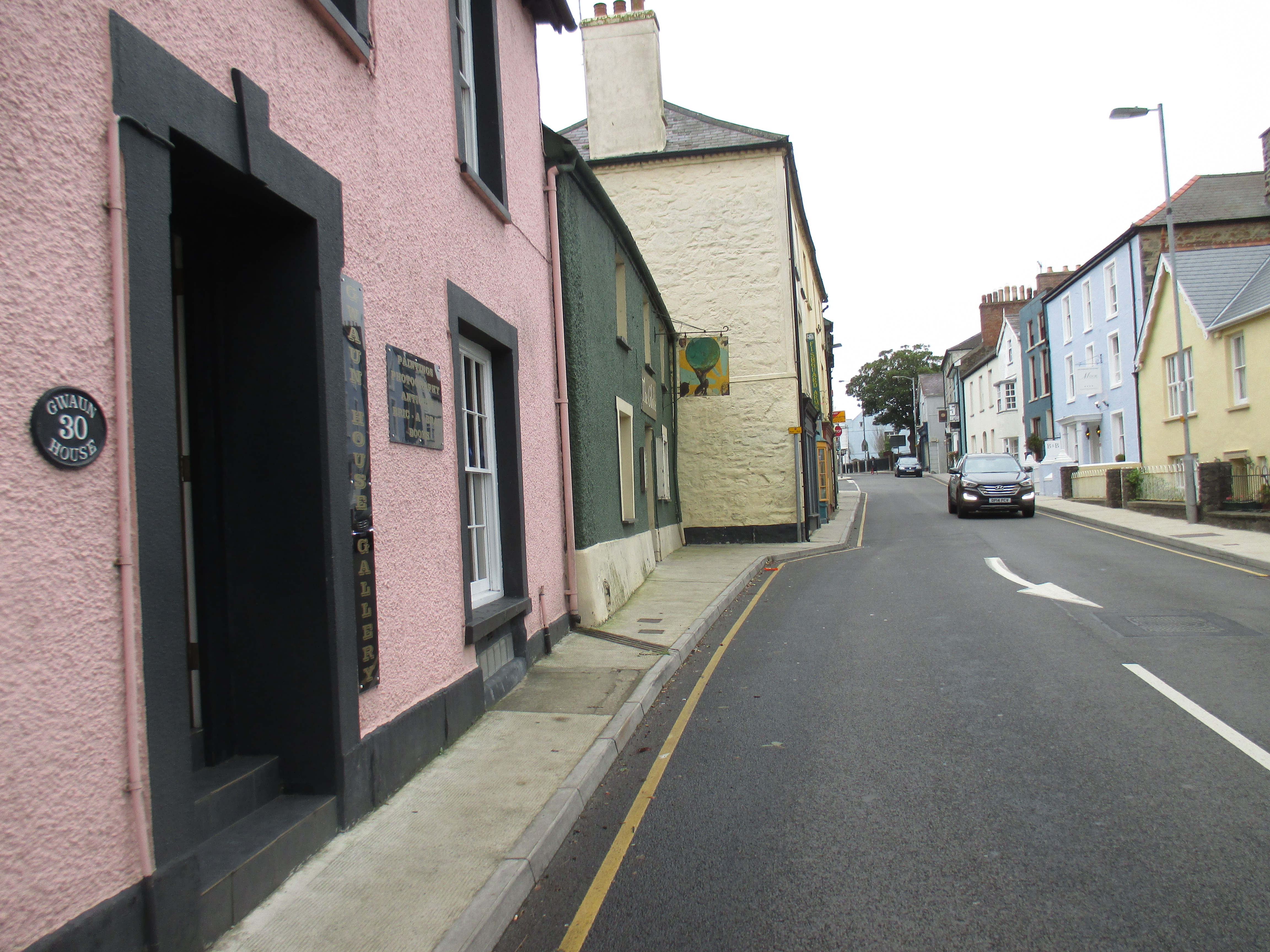 I head along the old narrow shopping street towards its end, and take a pause by a small stone bridge. There’s a good bakery here called simply ‘The Welsh bakery’, slightly stating the obvious, where I get a flapjack and some bara brith for my couchsurfing hosts for this evening. I pop into the Fishguard arms to refill my water bottle and for conversation. Typically though for Wales, it’s hard to get much started at all, and initiating conversations has been quite difficult. I’m served by a lady with a tattoo on her hand stating simply ‘mum’, and have around me a daft conversation about Princess Diana.