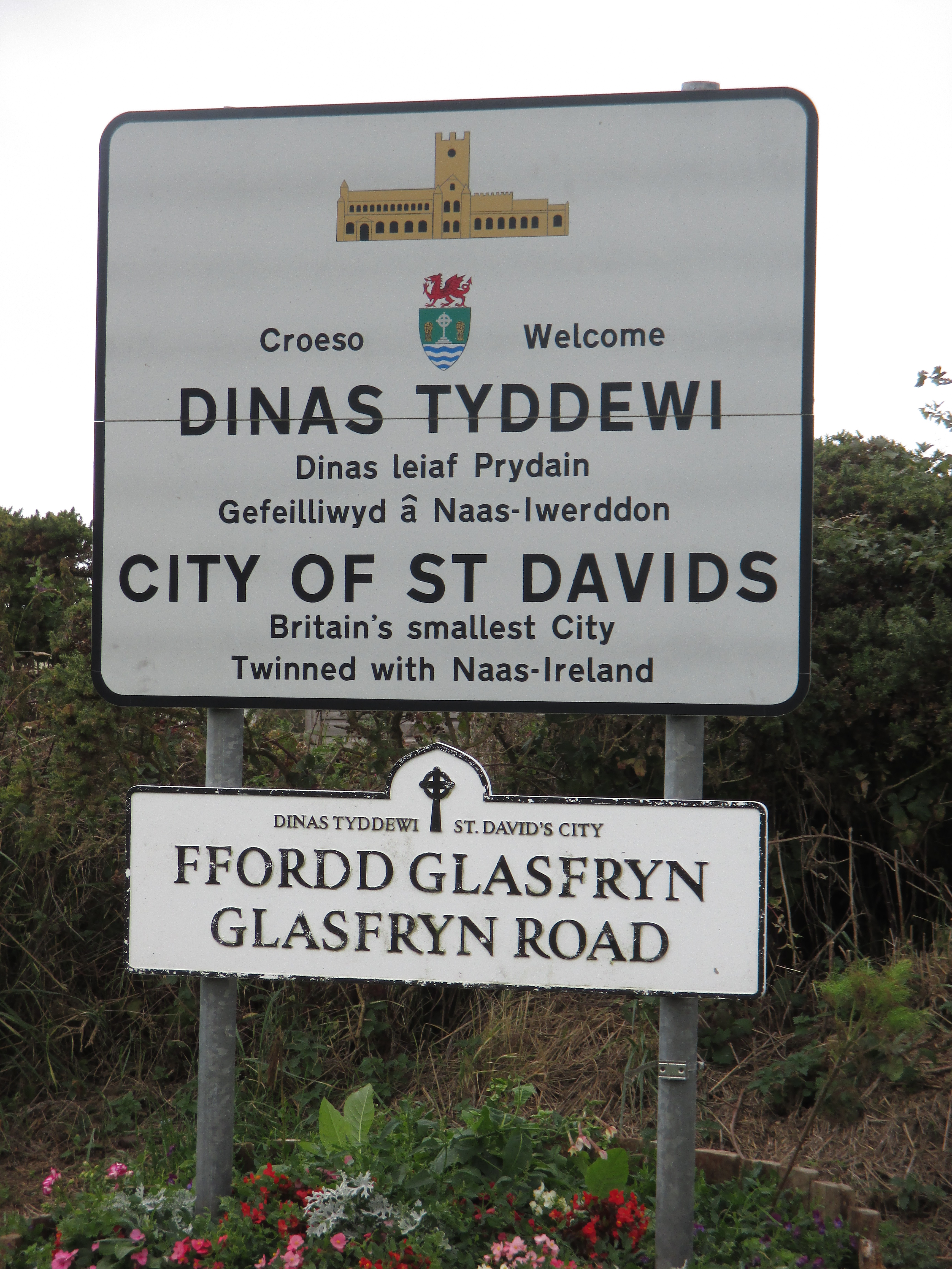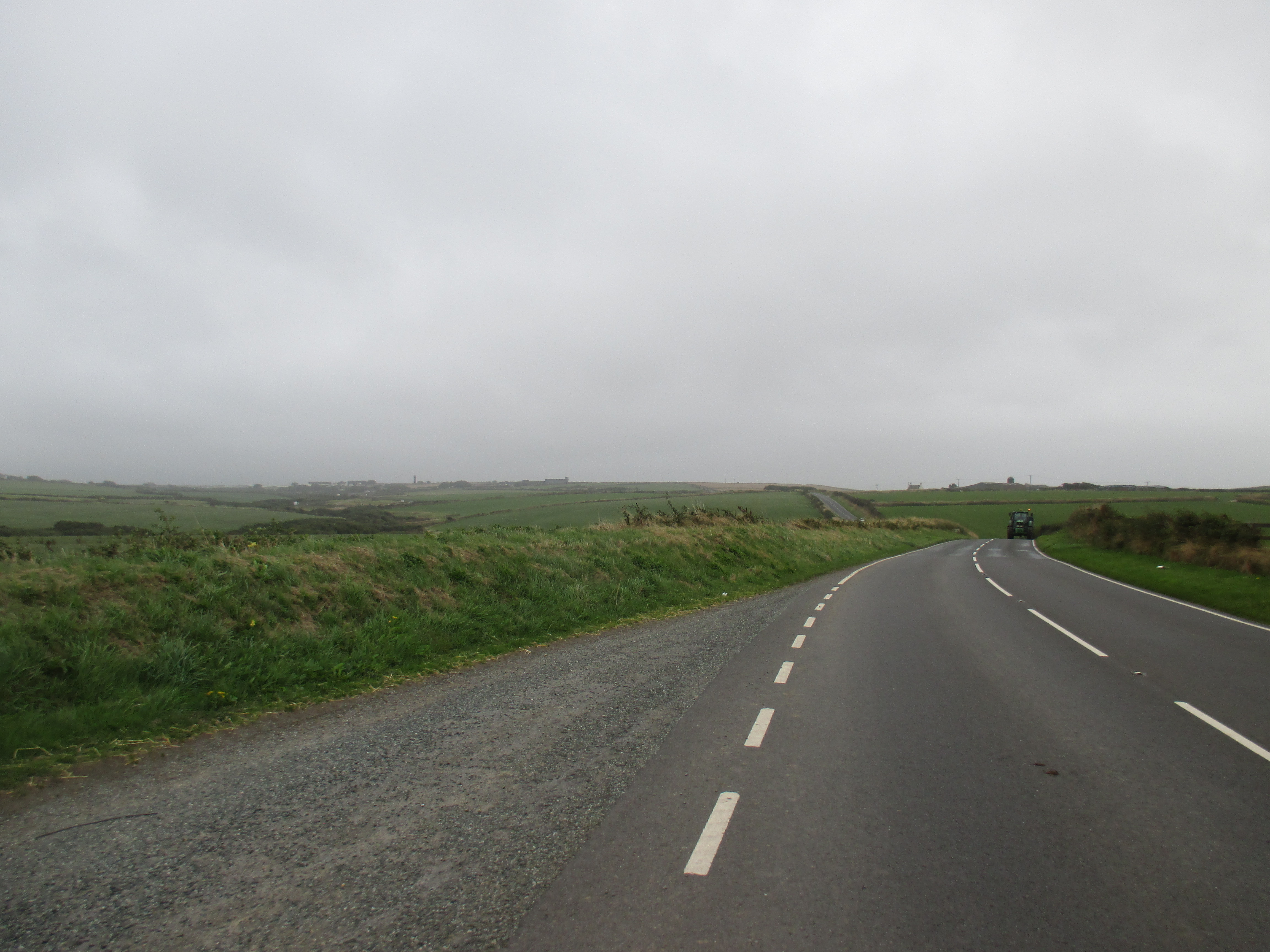 From Goodwick I’m on the road south to St. David’s, less undulating before but still of the same characteristically agricultural and modest vistas. I pass through small villages with names like Panteg and the fantastically-titled Square and Compass. The back wheel comes loose again and I’m beginning to fear how far I’ll get.