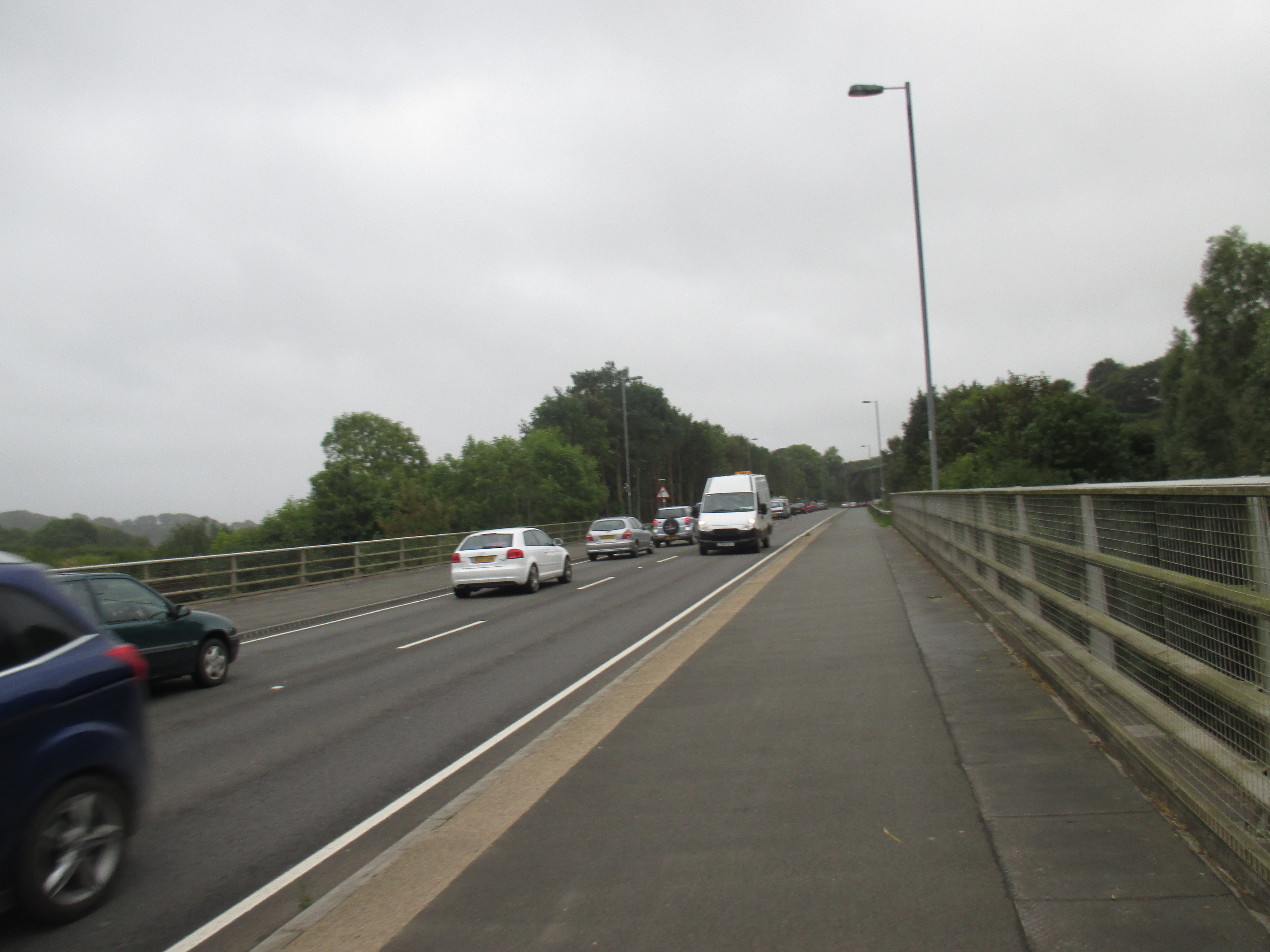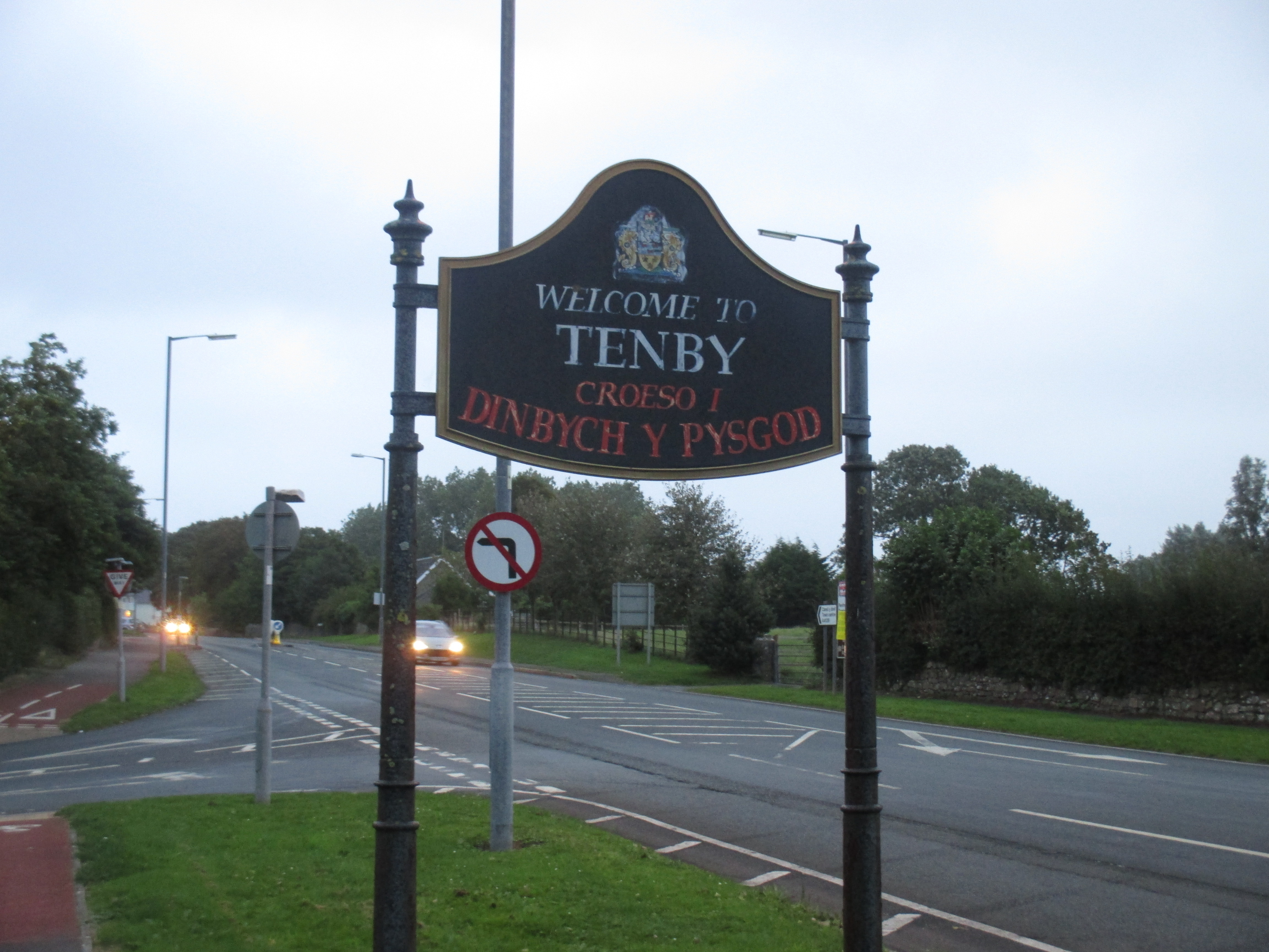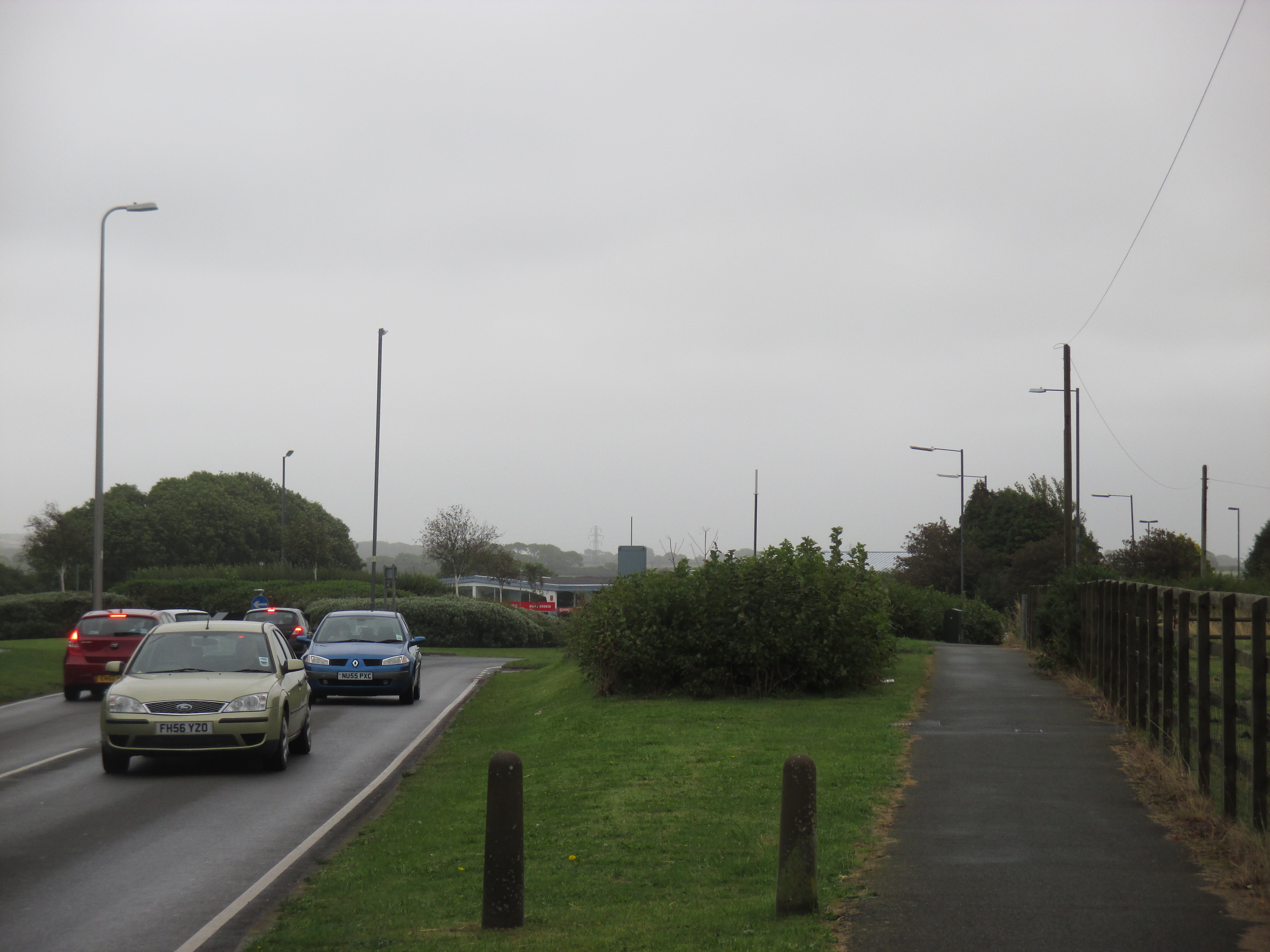 I drift over the stone bridge and back towards the madness of the Friday evening traffic. I get lost, and a man from his door shouts directions at me. ‘Neyland? That way!’ Thank you, that man. The road out is so busy that I take the pavement instead, passing a busy McDonald’s drive-thru at Merlins Bridge before heading out along to Pembroke Dock.