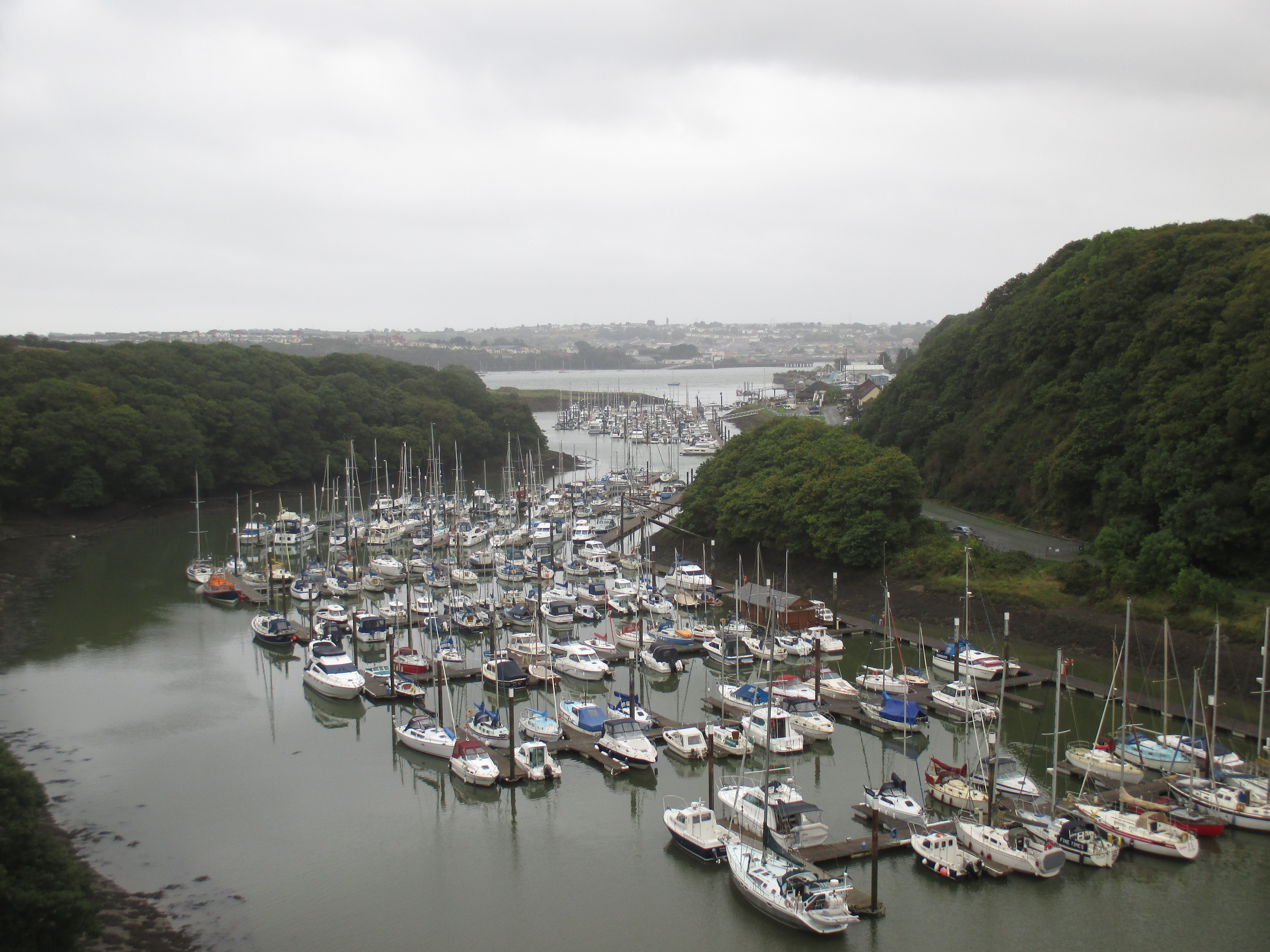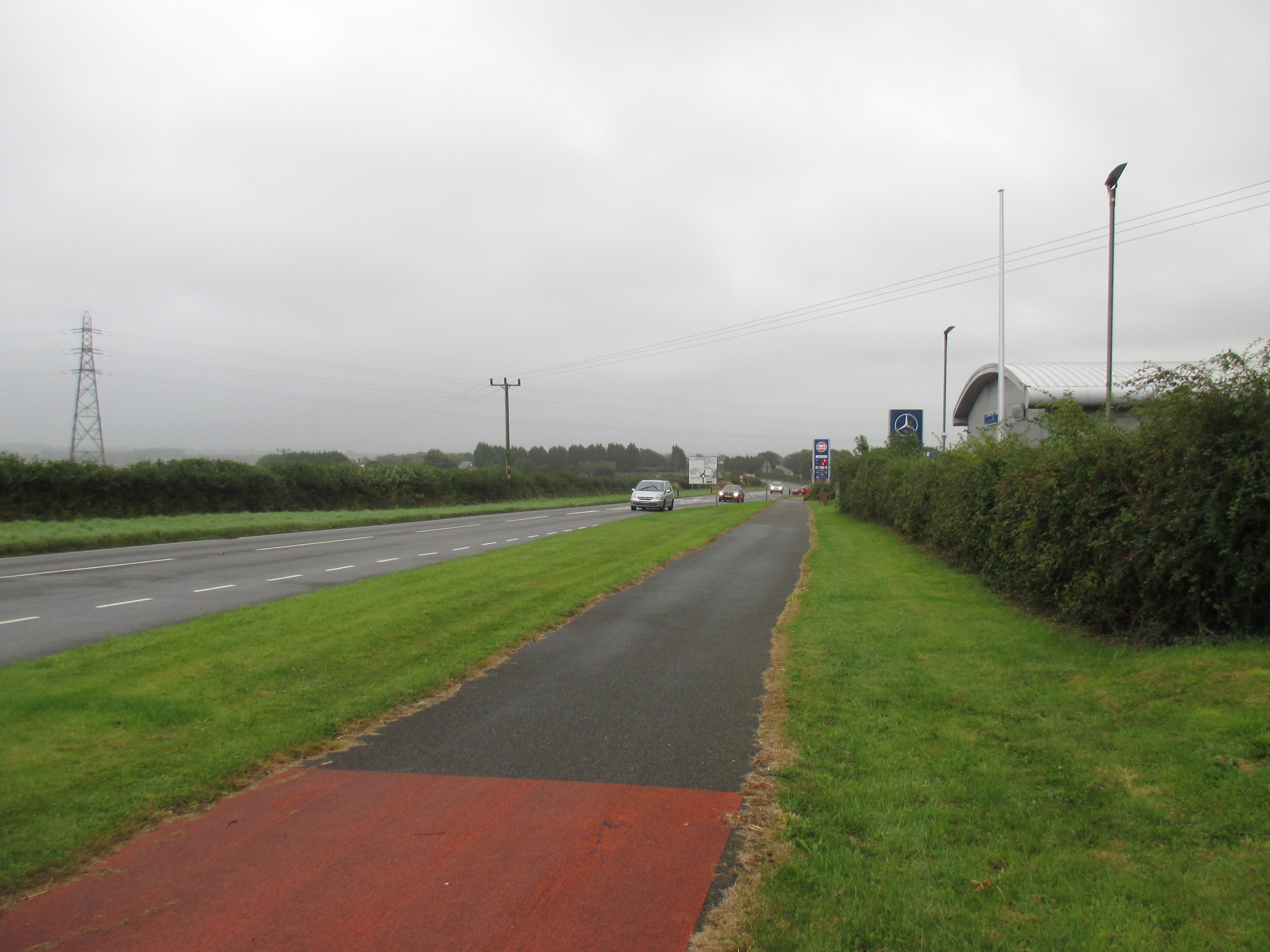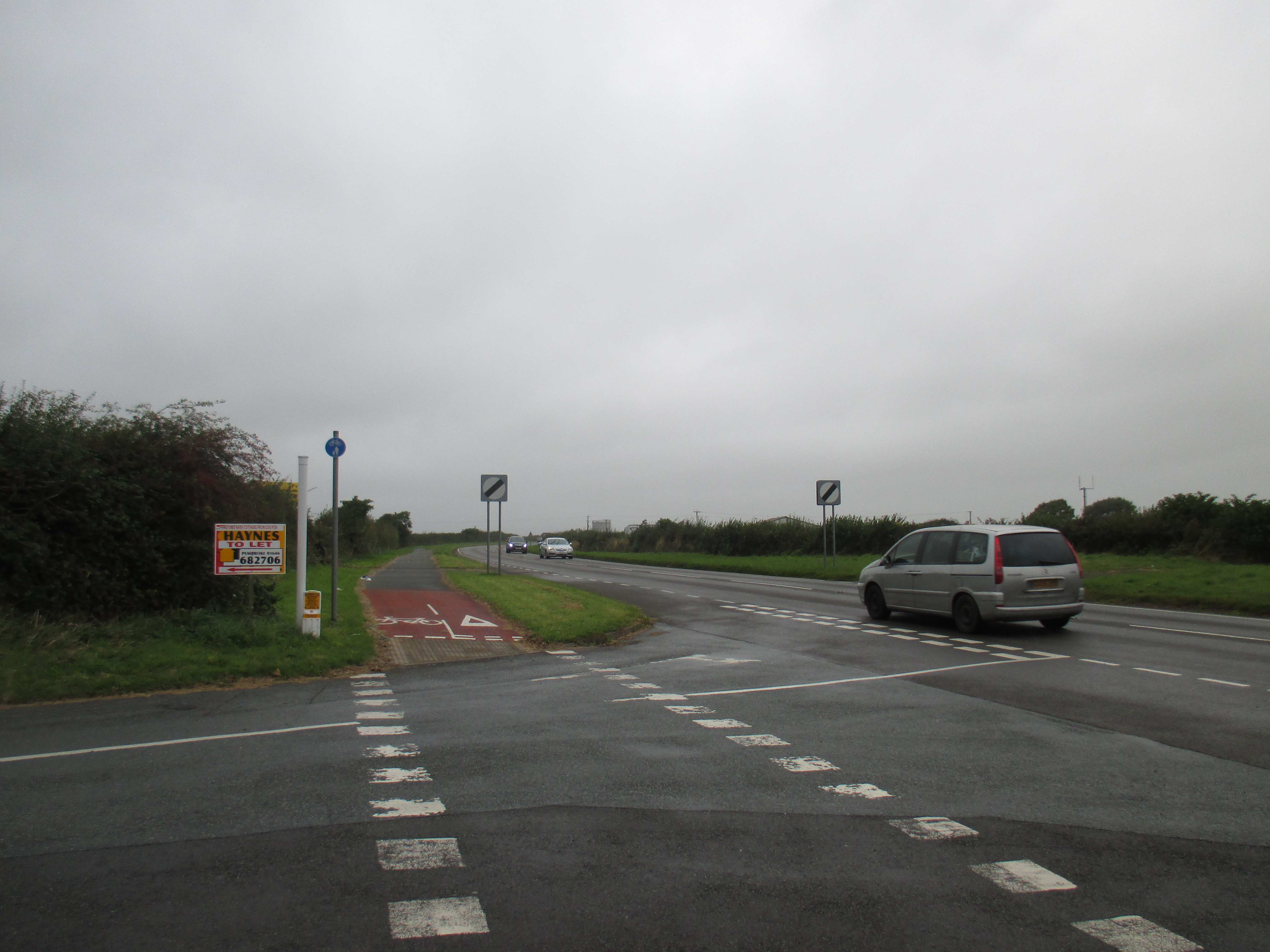 I drift over the stone bridge and back towards the madness of the Friday evening traffic. I get lost, and a man from his door shouts directions at me. ‘Neyland? That way!’ Thank you, that man. The road out is so busy that I take the pavement instead, passing a busy McDonald’s drive-thru at Merlins Bridge before heading out along to Pembroke Dock.