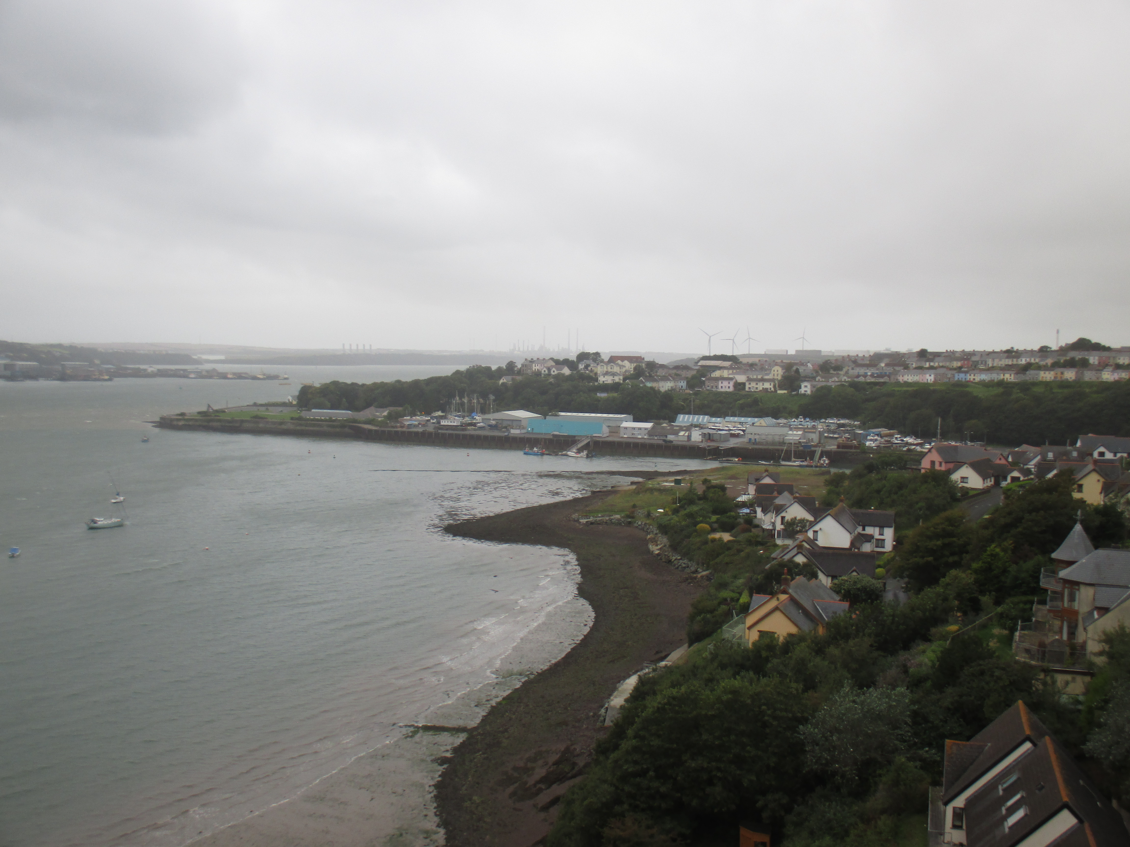The road is busy and a little featureless, but at least it’s out of the wind. I pass signs for Milford Haven, which despite the pretty suggestions of its name is actually a huge gas terminal where much of the country’s gas is imported through. It’s the third largest port in the UK and brands itself as the ‘energy capital’ of the country. It’s preceded by car showrooms, places to buy yachts or swimming pools if that’s your thing, but nothing about the landscape suggests affluence. By the time I cross over the Toll Bridge I can see great chimneys in the background, haunting dystopias of Milford Haven, a place that looks slightly terrifying from a distance and which I’m later told is a ‘dump’ by one woman who works there.