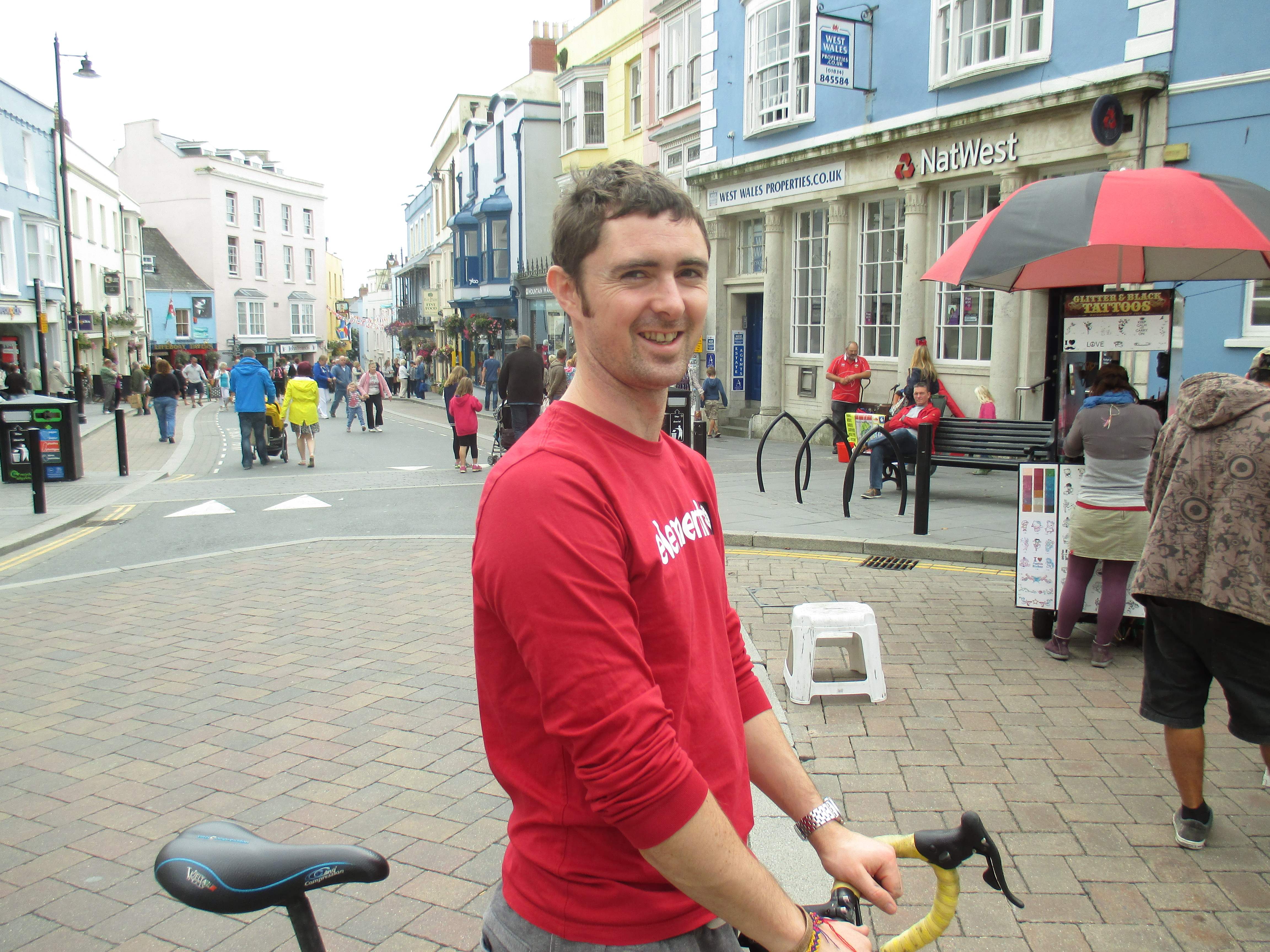 I’m woken by a friendly shout and the smell of frying bacon in the other room, after a lovely deep night’s sleep in Tenby. Everything is good: the friendly company of Declan and Dorie, who have kindly put me up through the Couchsurfing website, which I strongly recommend to any travellers considering a similar journey. Then there’s the small town of Tenby, dotted on the south-west Welsh coast, a delight of a place to pass the time. And then there’s the prospect of a full Irish breakfast this morning. This is the start of a good day.