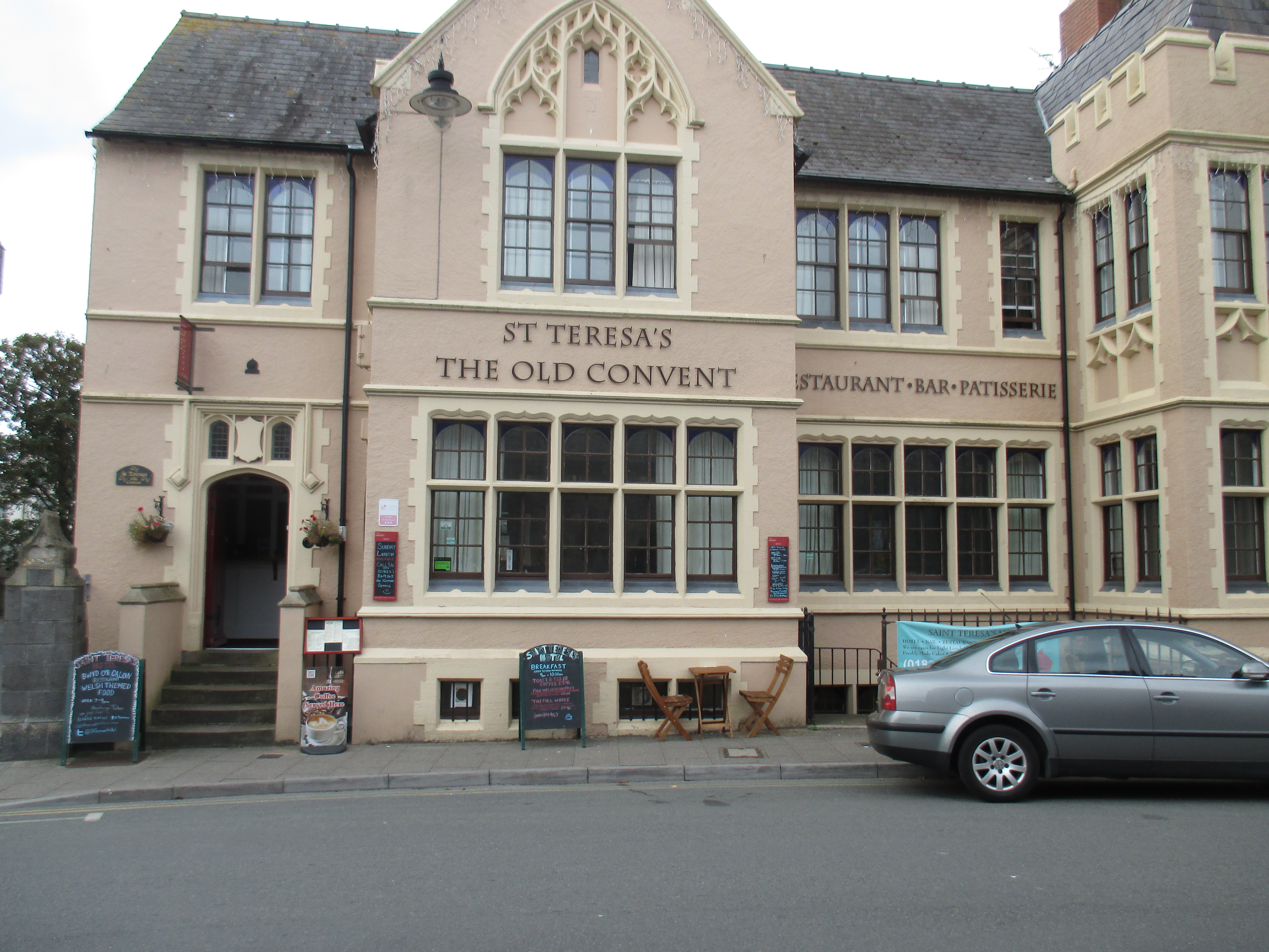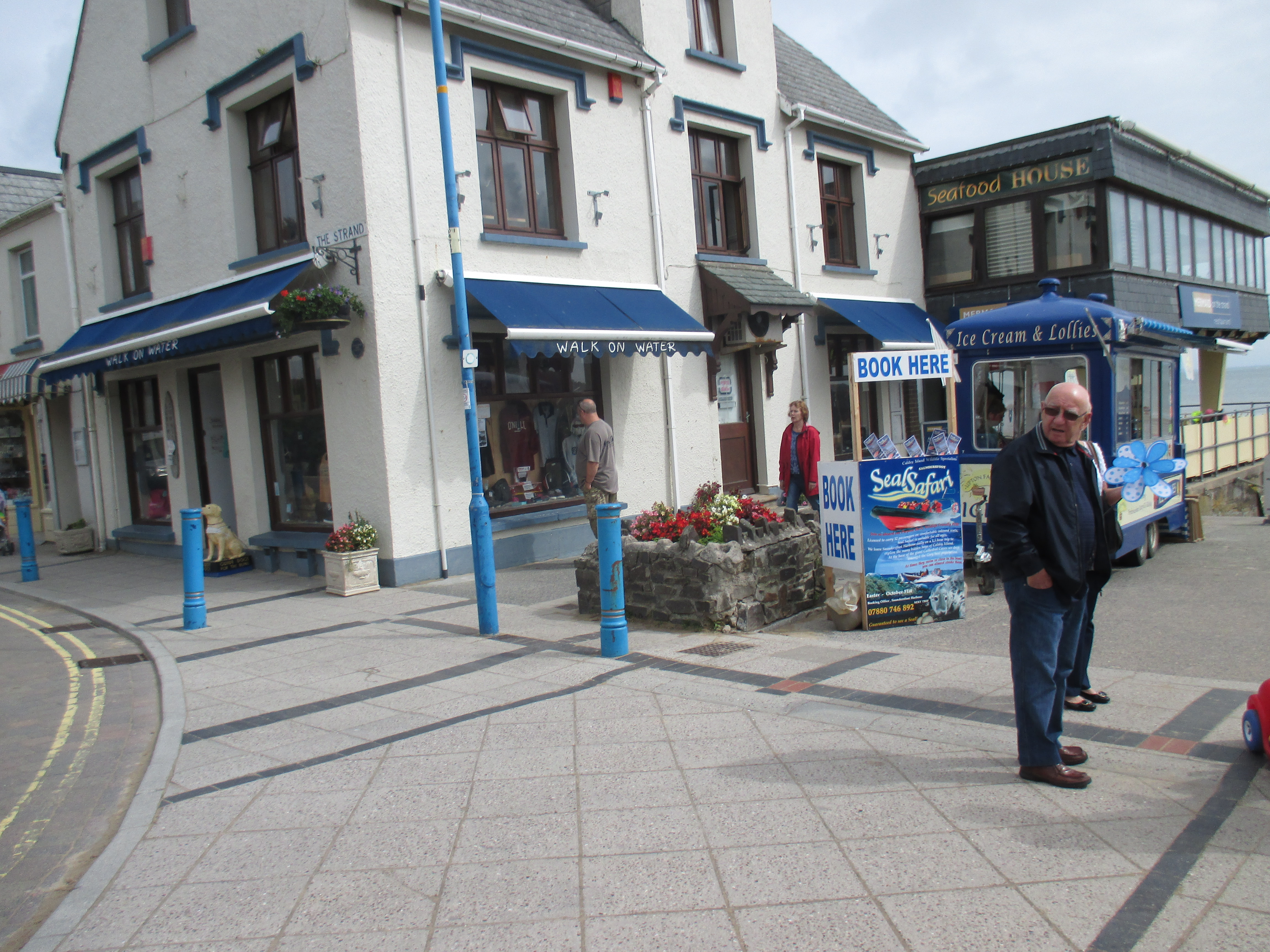 Declan offers to fix the back wheel on the bicycle, but after peering at it together we’re still none the wiser why it keeps becoming misaligned. So instead we cycle around Tenby town. He shows me its four different beaches, and the five arches by the town’s walls used locally as a major meeting place. From the promenade we gaze at the remains of a fort on St. Catherine’s island, and another nearby island islet used by monks. We cycle through its surprisingly large town centre, a place filled with fish and chips, pubs, sticks of rock, and other shops competing for the already-taxed attention spans of holiday-makers. We pass tourists eating breakfast outside coffee houses or dressed uncomfortably in wedding garb. It’a a wonderful Victorian seaside resort whose charm remains. It seems to be faring better than Morecambe without conceding too much of itself, like Blackpool. Its costly-looking architecture reflects a Victorian boom in tourism, much of it through investment by railway companies building the lines out to these resorts and properties around them. I wonder about this awe it evokes. Some day, will concrete become so costly and environmentally unsustainable that future generations will look at the dated Sixties and Seventies’ resorts of the Mediterranean with a similar wonder?