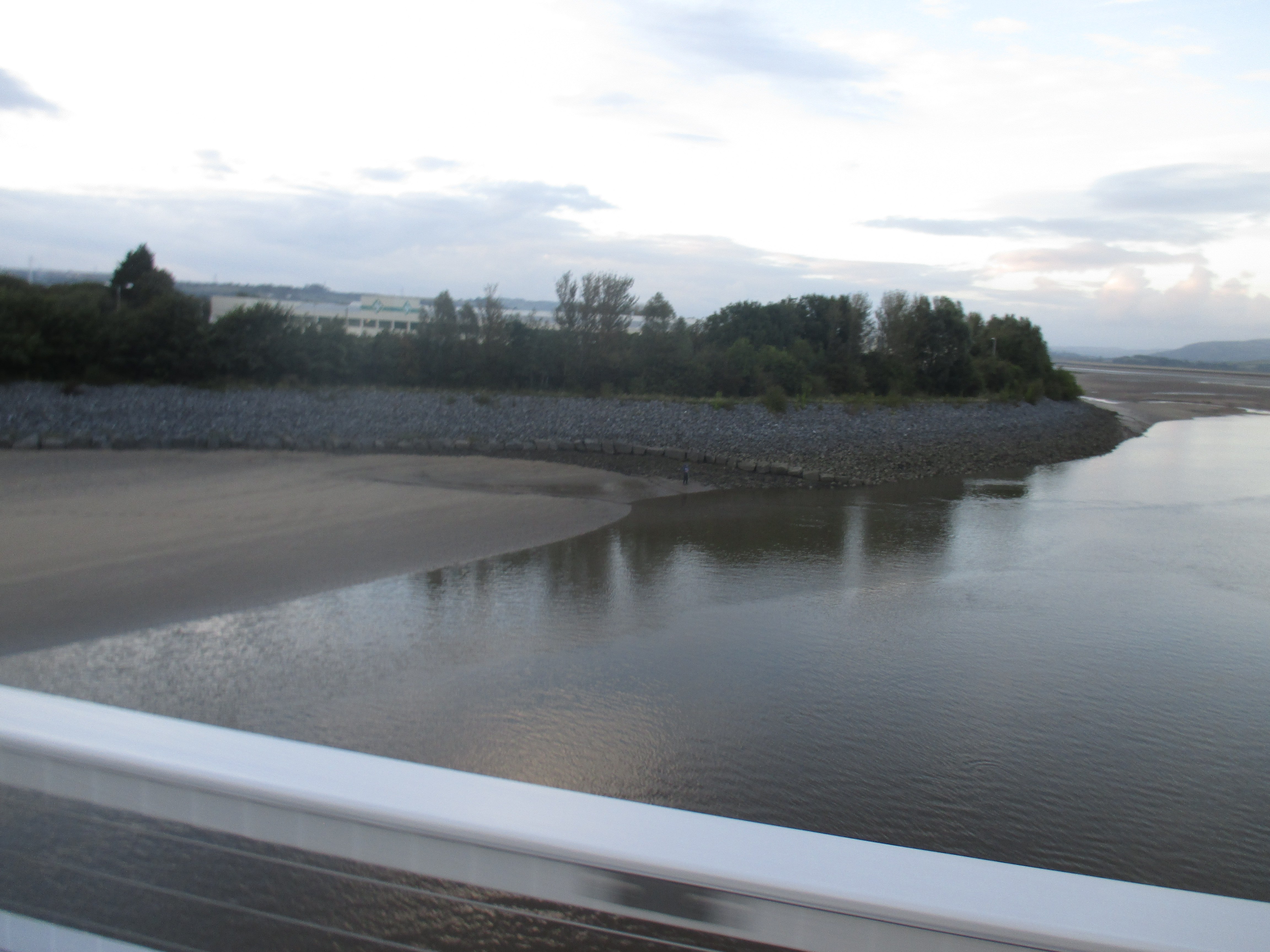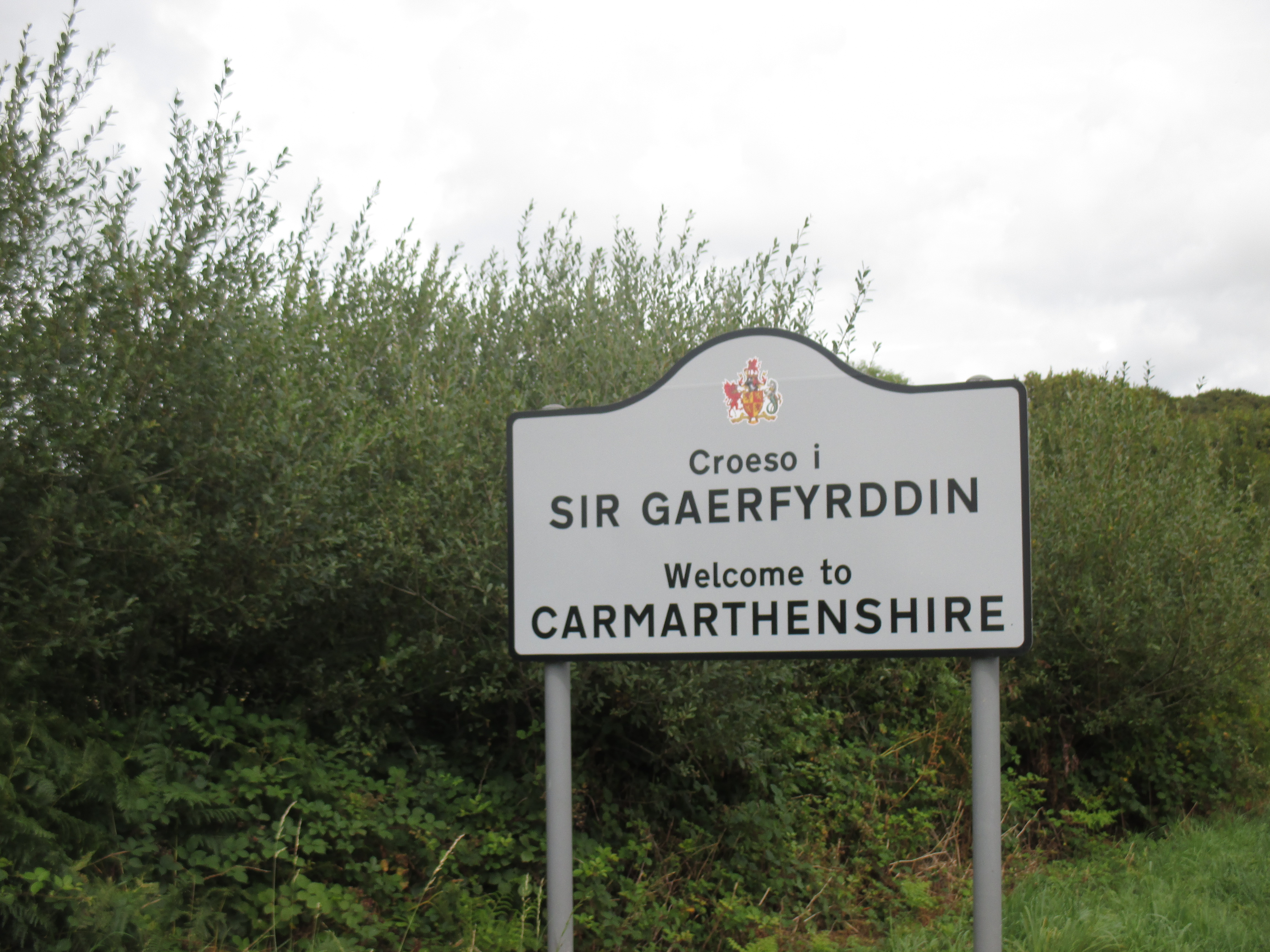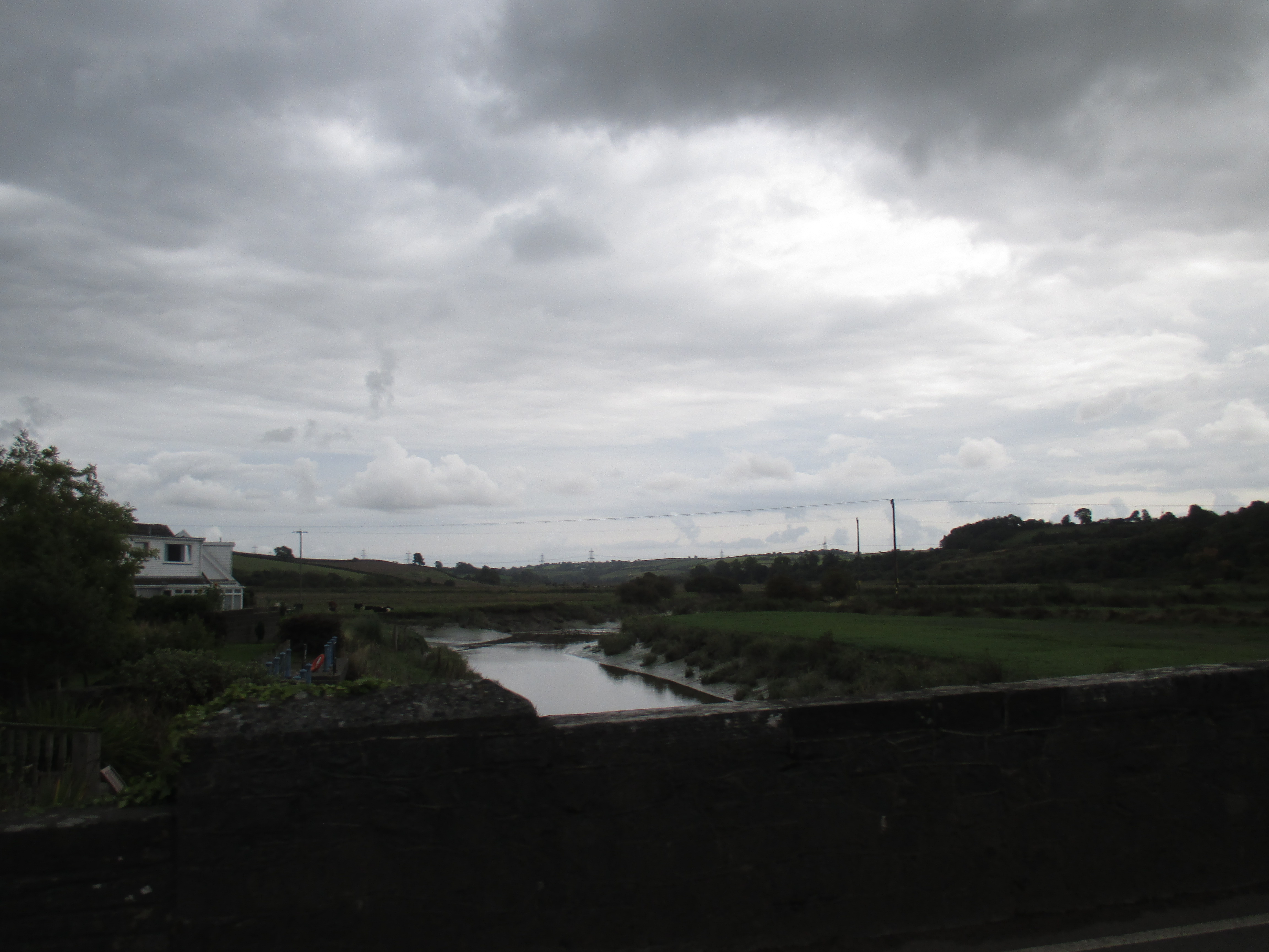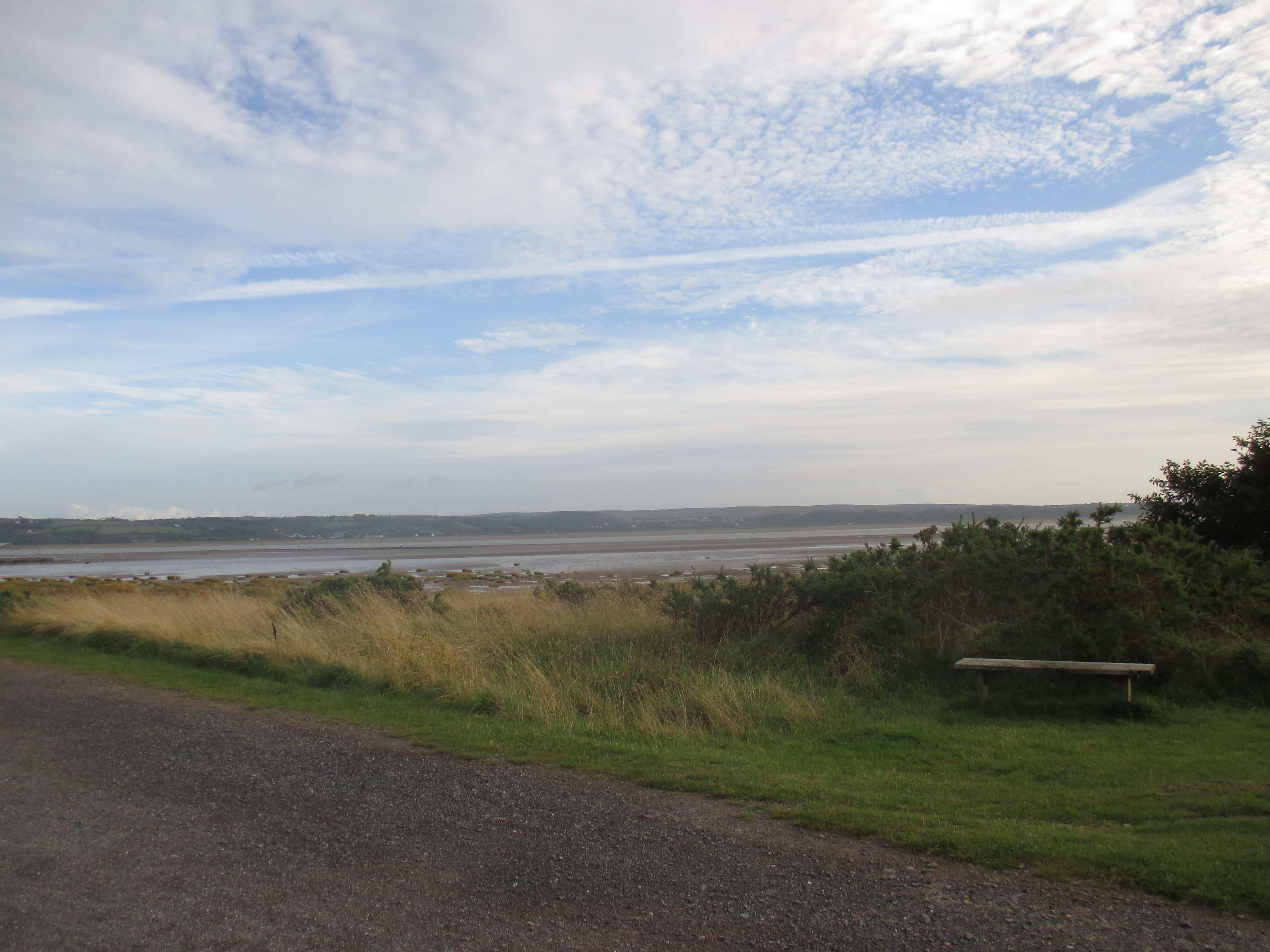 There are some great views of the Gower peninsula and estuary, and the clouds are extraordinary this evening over the bay, exploding out onto the horizon like a solemn cortege marking the slow death of a star. I follow this route round, passing the occasional dogwalker, and spend a while picking some blackberries for my last-minute couchsurfing host, Sarah. Eventually the route rejoins the road, and I reach Gowerton, another bland suburban spread with a Tesco where I get some granola, famished after what will become seventy miles in the saddle. The language is changing with the urbanised, industrialised scenery: Welsh ‘araf’ no longer takes priority over English ‘slow’. Bilingual signs become fewer and scarcer, and where they appear, take English as the first tongue.