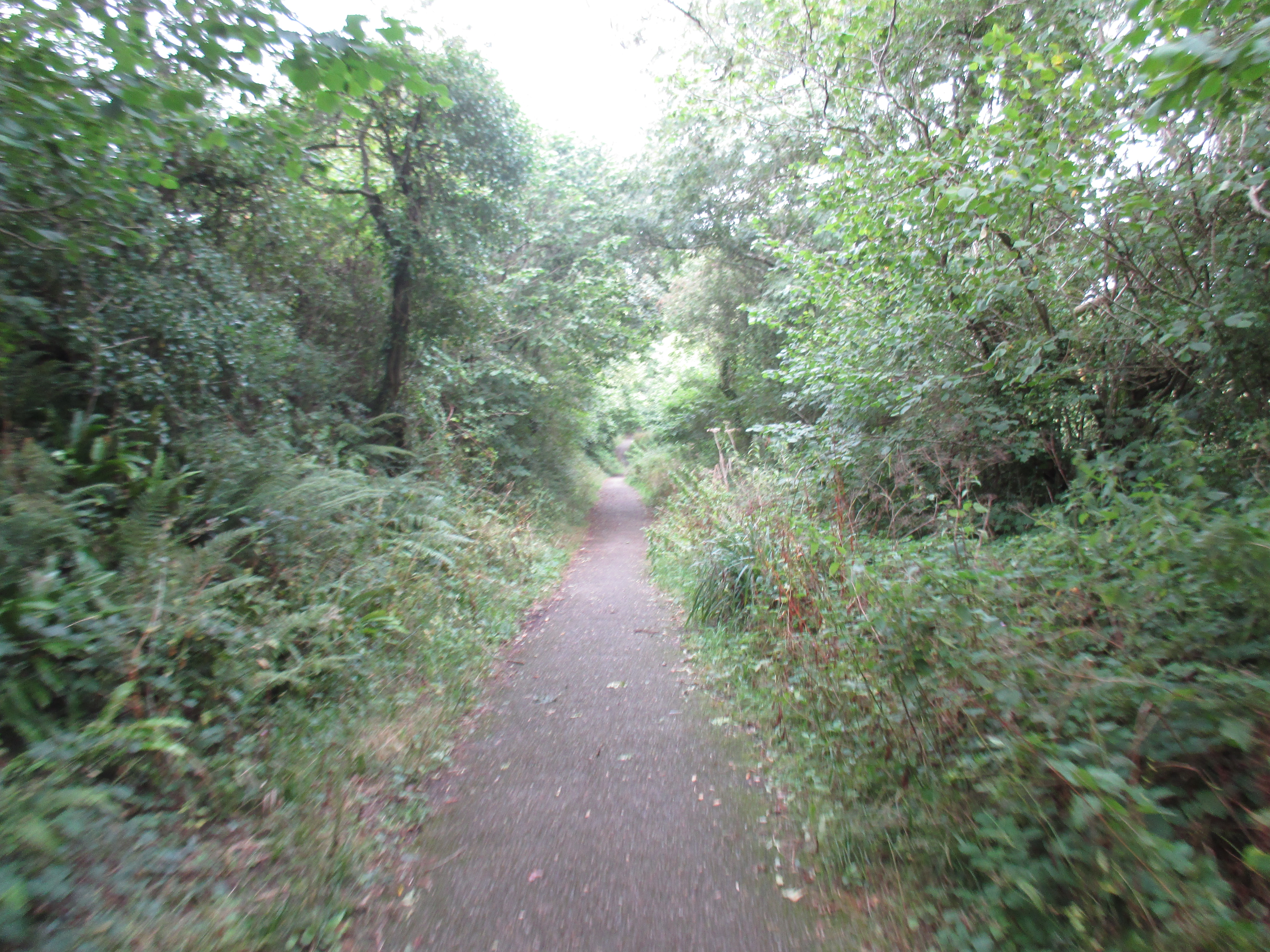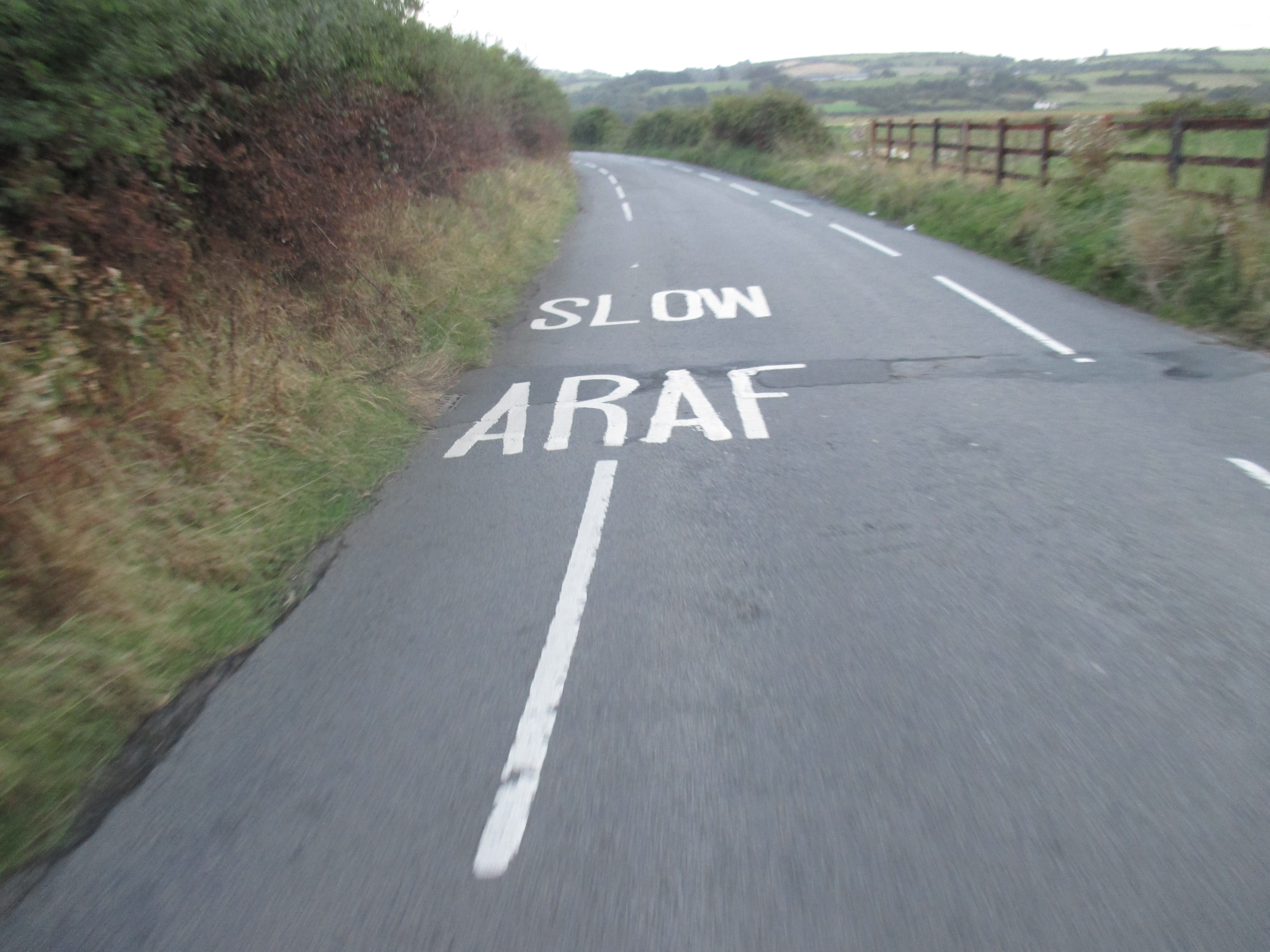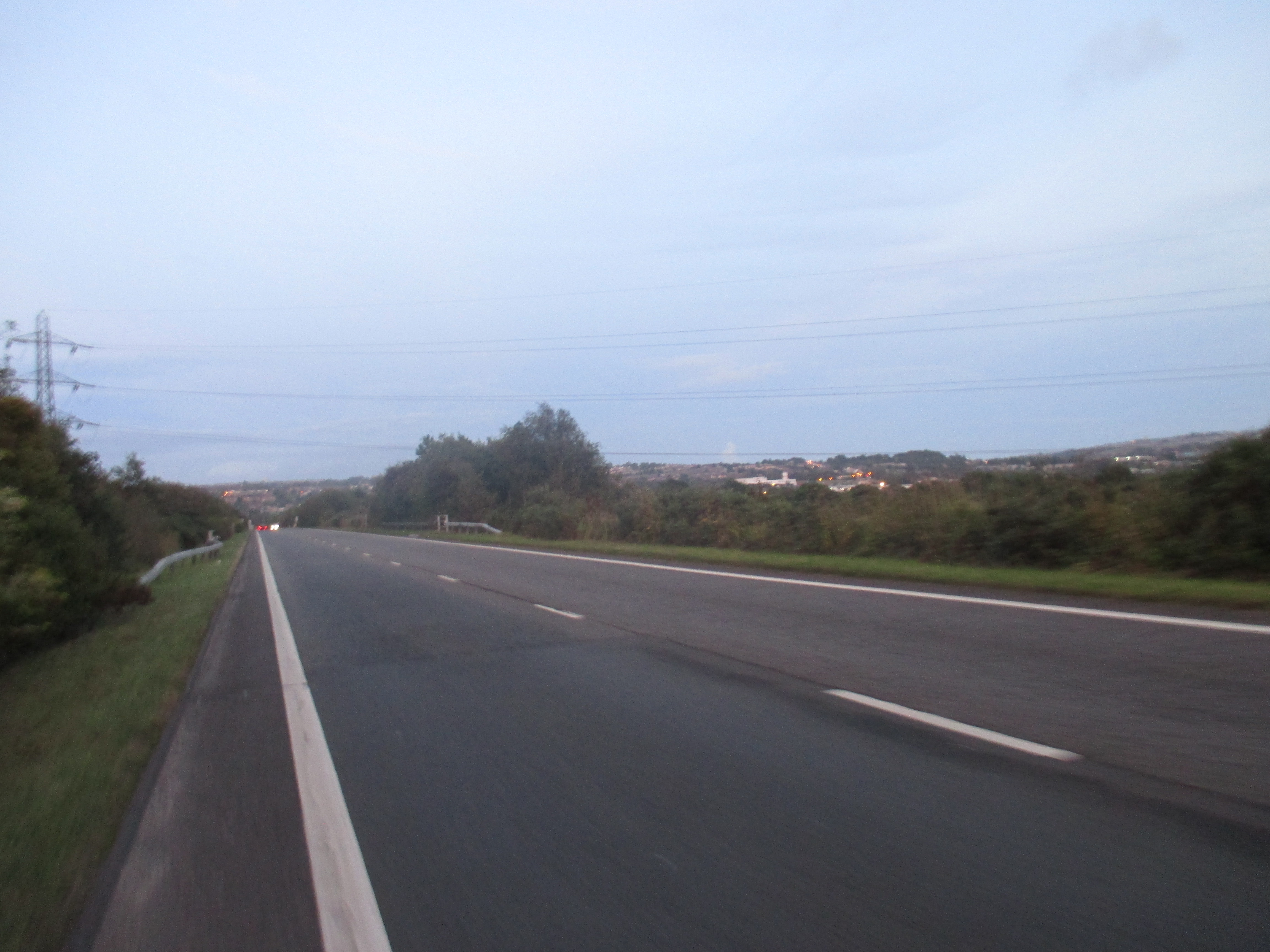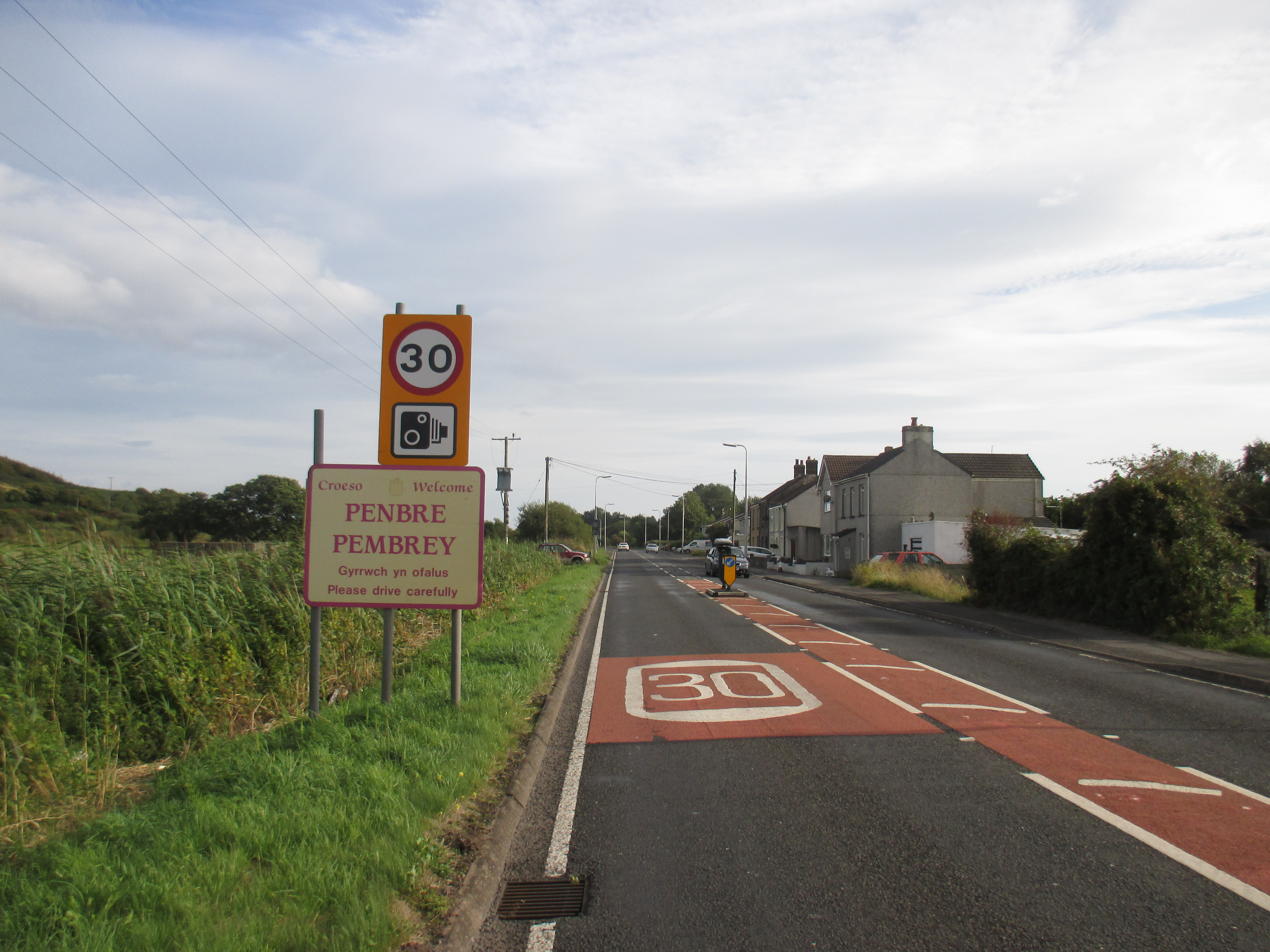 There are some great views of the Gower peninsula and estuary, and the clouds are extraordinary this evening over the bay, exploding out onto the horizon like a solemn cortege marking the slow death of a star. I follow this route round, passing the occasional dogwalker, and spend a while picking some blackberries for my last-minute couchsurfing host, Sarah. Eventually the route rejoins the road, and I reach Gowerton, another bland suburban spread with a Tesco where I get some granola, famished after what will become seventy miles in the saddle. The language is changing with the urbanised, industrialised scenery: Welsh ‘araf’ no longer takes priority over English ‘slow’. Bilingual signs become fewer and scarcer, and where they appear, take English as the first tongue.