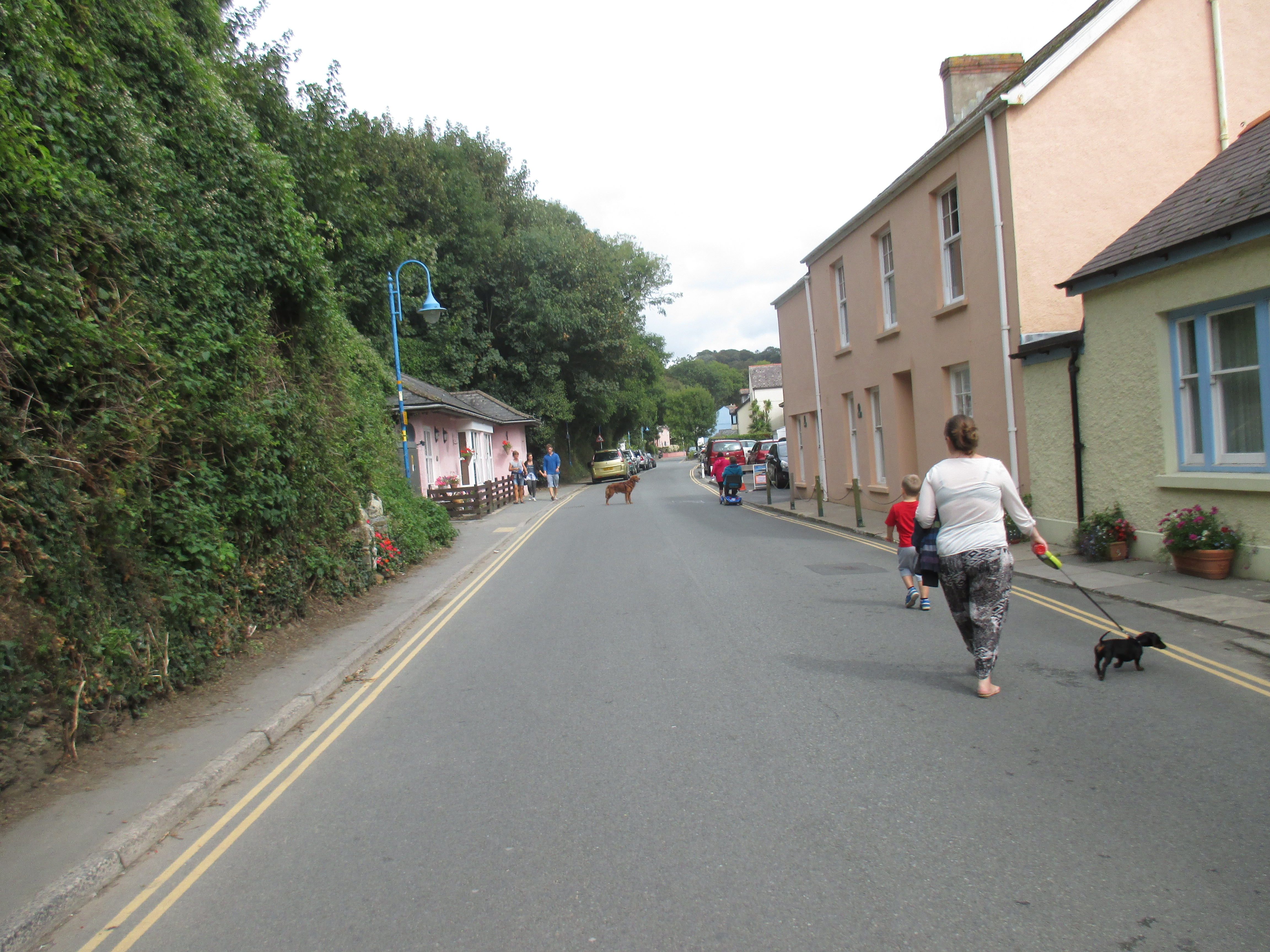 There are roads to Laugharne (pronounced Larne), another haunt of Dylan Thomas, and a delightful sounding place called ‘Red Roses’, but I take instead a delightful rollercoaster ride through a series of thick forests that eventually lead to St. Clears, a small village over a small stream, marked out by a front garden filled with an excess of gnome and other fake animal tat. There’s a small row of takeaways, homeware stores and the odd pub.