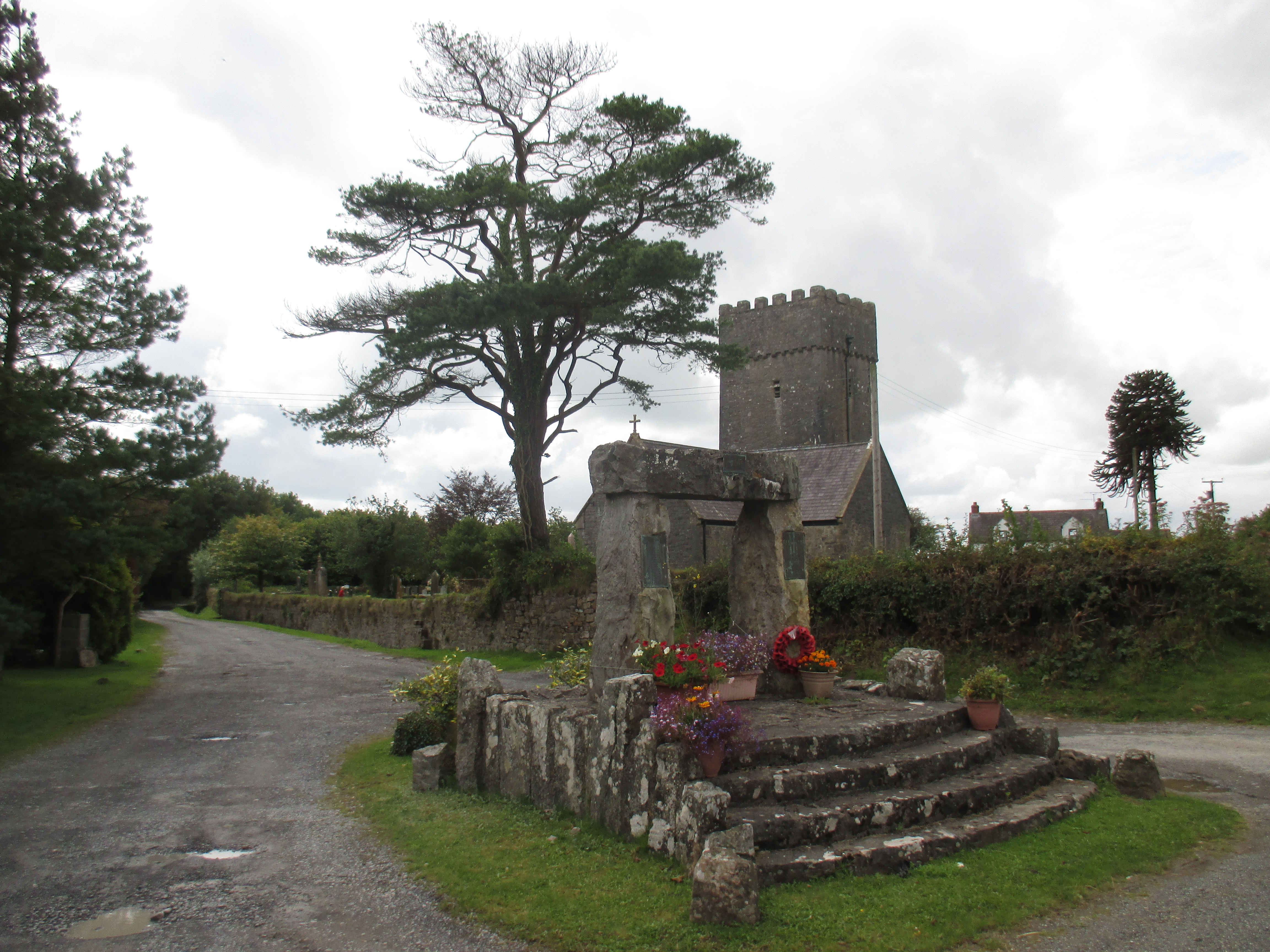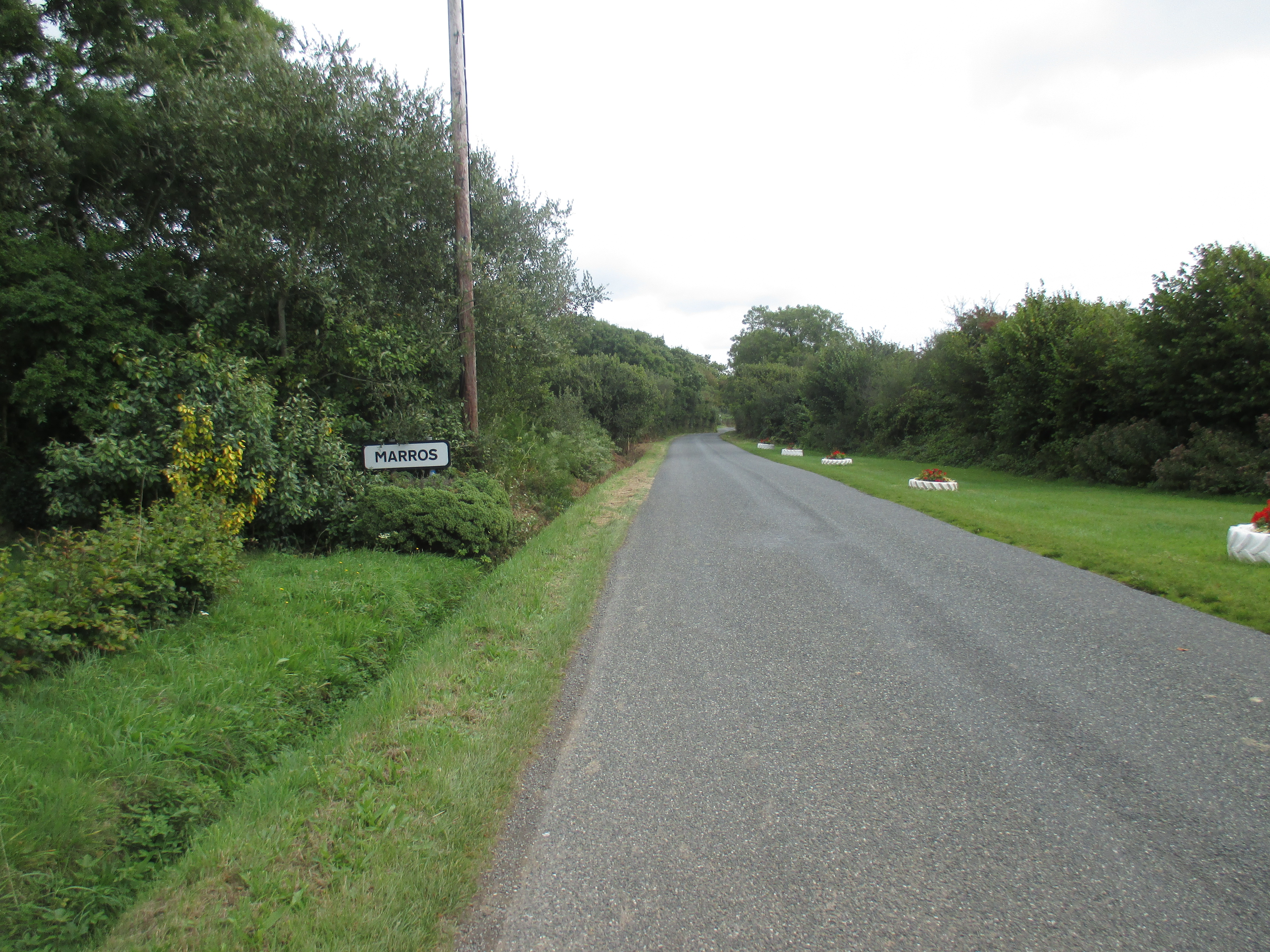 The route is zigzagging up and down along the cliffs, and it’s tiring stuff, but with the sun out and the afternoon heat at least there’s no rain to contend with. After Amworth beach it’s another steep climb, eventually passing through the odd field of caravans and the occasional tent into farmer’s fields of sheep and cattle. The roads are narrow and steep and it’s becoming even hotter, wonderfully so I guess, but unpleasant when wearing a shirt, jeans and battling the close weather. I curse the hill, give up several times, changing into a tee and shorts, and carry on, eventually reaching the top of some kind of hill by Pendine, wind turbines and lovely views of the sea in the distance. It’s lovely and quiet here. From the top, the views of the serene bay are a salve to the soul. One could stop time completely in the sleepy village of Marros, and sit by the monument to the town’s sons, brothers and fathers, fed into an industrialised killing machine just under a century ago, and count the butterflies and the sparrows, the wildflowers by the kerb, and hear in the sigh of the breeze the beginnings and end of a new kind of music.