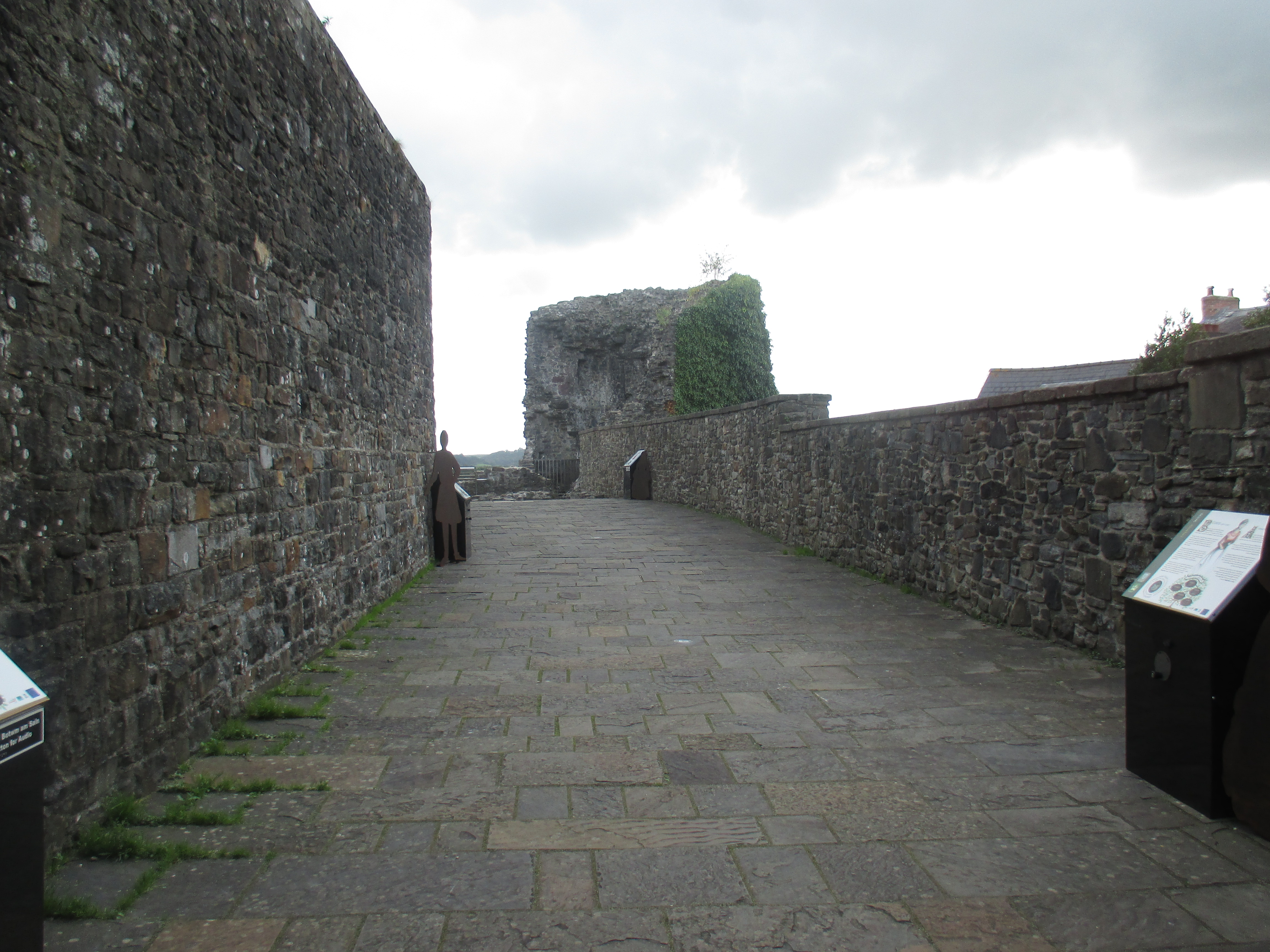 The road is steep and tough. I’m following national cycle route 4, something I’ll be chasing over the course of the day. Fortunately it’s a route that’s well sign-posted and thought through. There’s some steep climbs up to Saundersfoot, another seaside settlement not far from Tenby, where the road dips through a tunnel before, heading up a very steep hill into some forests and back down again into Wiseman’s Bridge. The village is not particularly pleasant, its buildings horribly dated in some places, and its car park obsessively filled with security cameras. From there it’s another steep climb via a batch of holiday homes up to Amworth, then another descent back down into a pebbly seafront and some seaside settlements, the castle here little more than some crumbled walls.