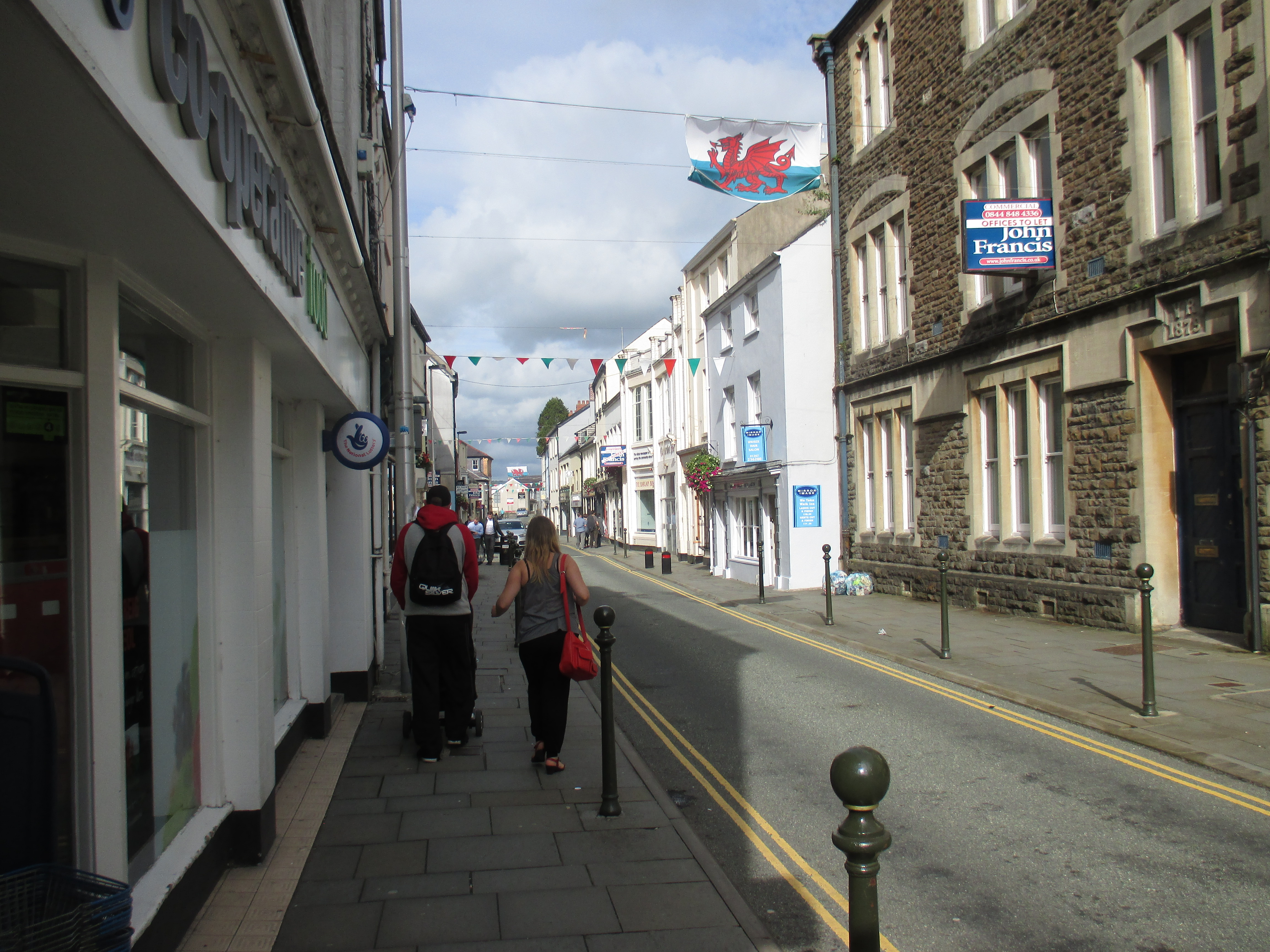 The accent’s changing, becoming slightly stronger and more jagged in its intonations. It’s certainly not the singsong Valleys’ accent that’ll I’ll encounter a few miles ahead, but there’s hints of that, you hear it. And there’s no Welsh to be heard. ‘You see the army, its rubbish. The marines they’re good. I did bog standard infantry. Rubbish’, one young man tells an older man and woman. Judging by the expressions on their faces it’s a totally different answer to whatever question they’d asked.