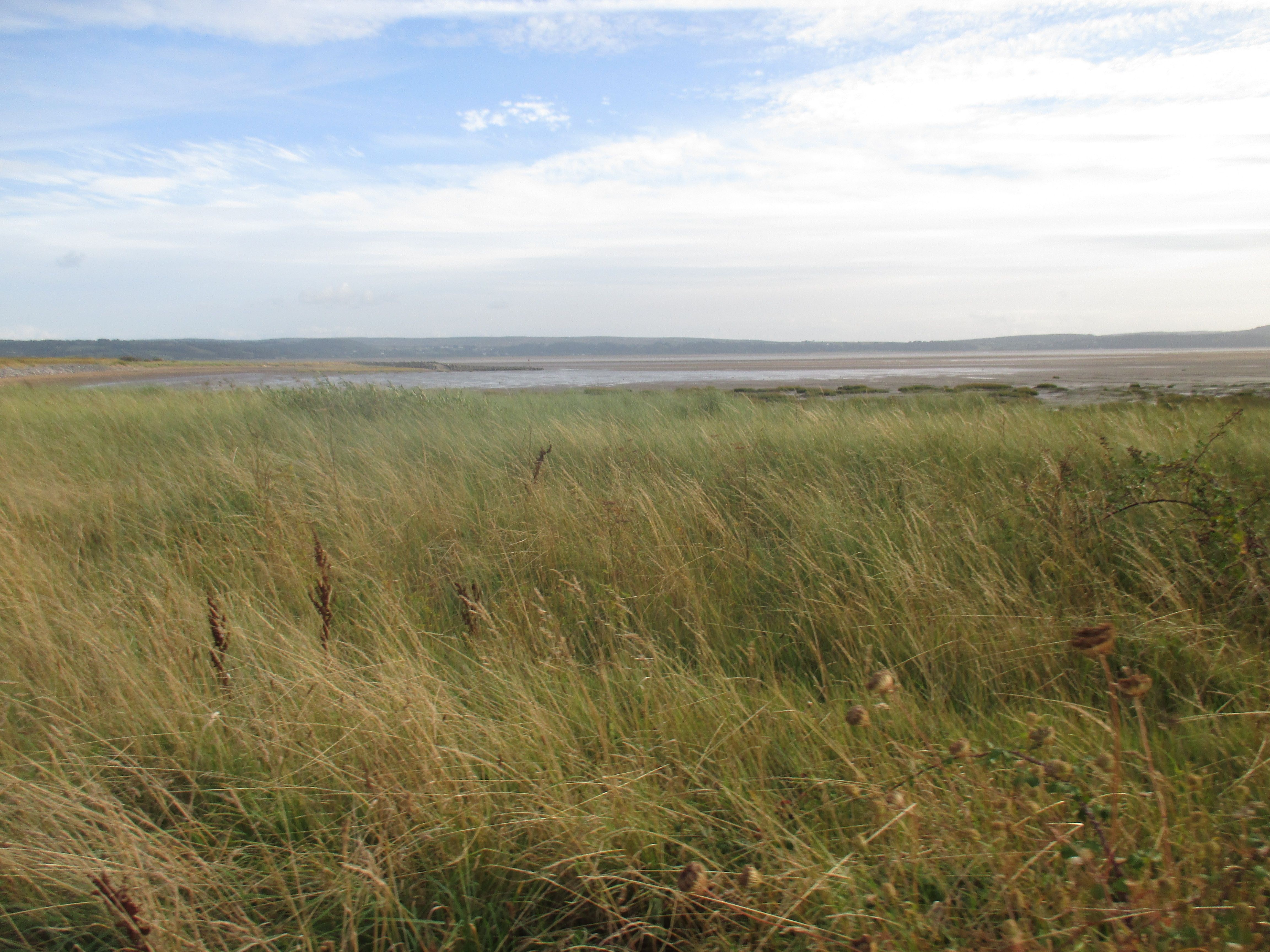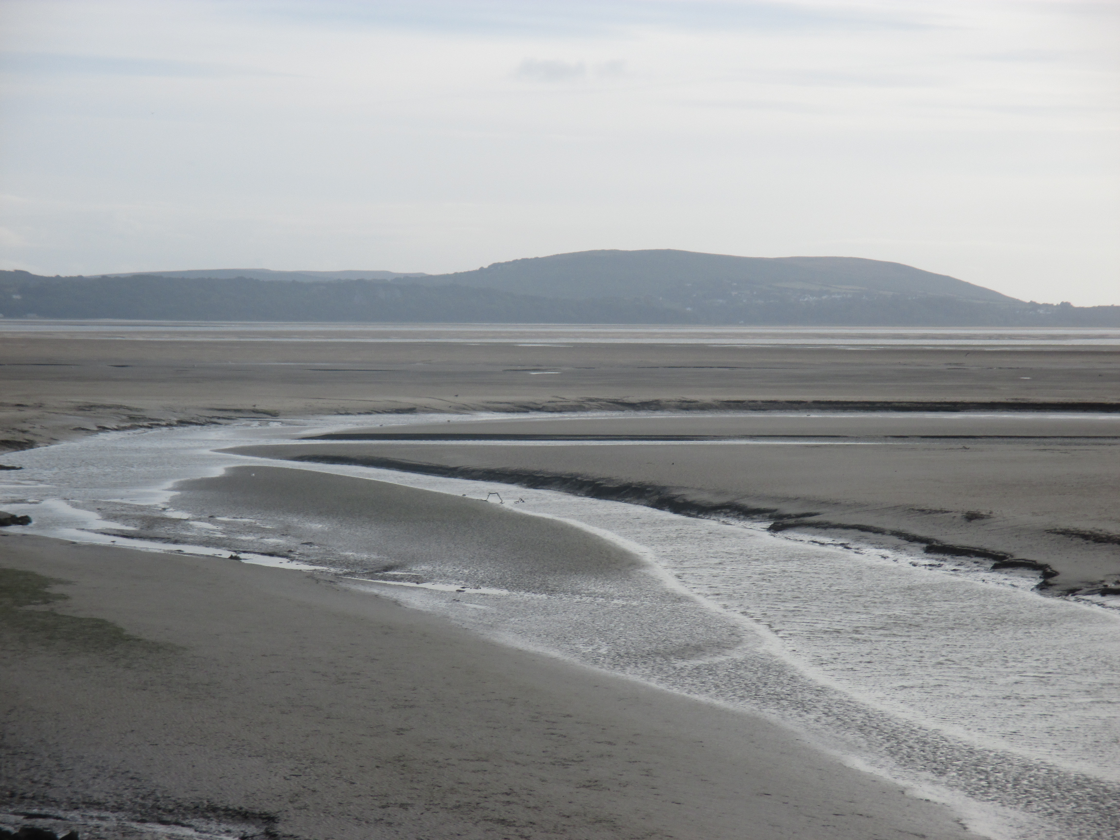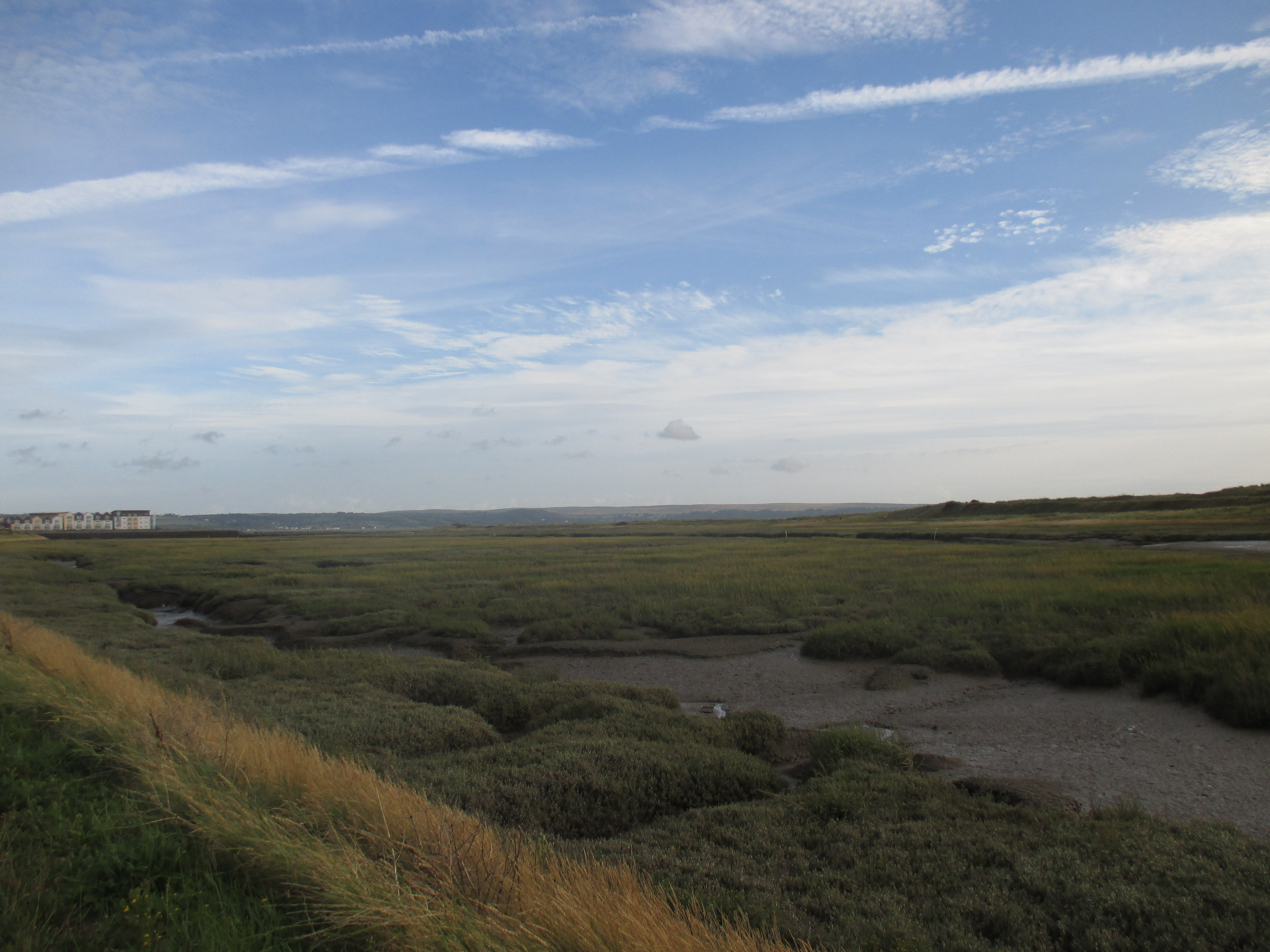 I’ve provisionally booked a youth hostel bed at the bottom tip of the Gower peninsula, but whilst in Carmarthen I’m offered a bed through couchsurfing which I take instead. Unsure if it’ll work out in time, I cycle out, taking a busy road past the obligatory mess of an out-of-town retail park, then bucking along a quieter country road south through to Kidwelly, Pembrey, Burry Port and Llanelli. It’s a warm and sunny afternoon, and the route is a little featureless. The chips from St. Clears seem to have been covered in some kind of rocket fuel, and I power away, quickly passing the now very flat scenery, the cows in their fields and the odd warehouse. I pass Kidwelly in the distance, a sleepy residential town, then later Pembrey, where a large forest grows and where I had, in an original plan for this trip, intended to wild camp.