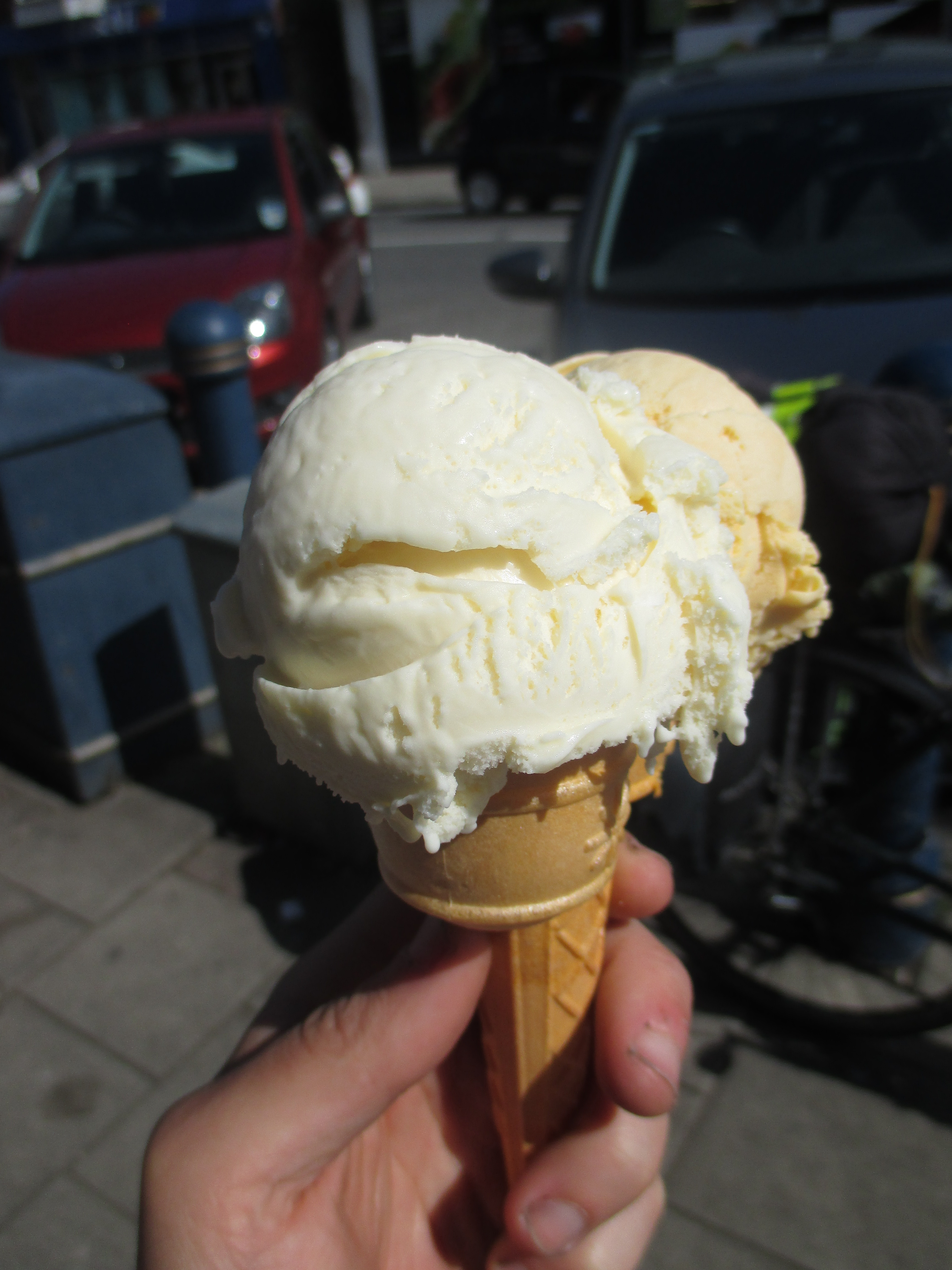 I’m told to visit the Mumbles before I leave, a small seaside village to the west of Swansea, so off there I head. It’s a wonderfully sunny morning, and I whiz down to the coastline, where I follow a cycle path for around half an hour along Swansea’s surprisingly pretty and large golden beaches to Mumbles. The path and nearby parks are full of Swansea residents at play, families cycling together, student rollerbladers, people of all ages sitting in cafes licking ice creams. Mumbles is a small Victorian village but filled with visitors. I follow a local tip and have a delicious caramel honeycomb and coconut ice cream from Joe’s parlour, then head down to Mumbles pier, taking in a new lifeboat, a crumbling pier view, and milling around with these happy crowds at rest and play.