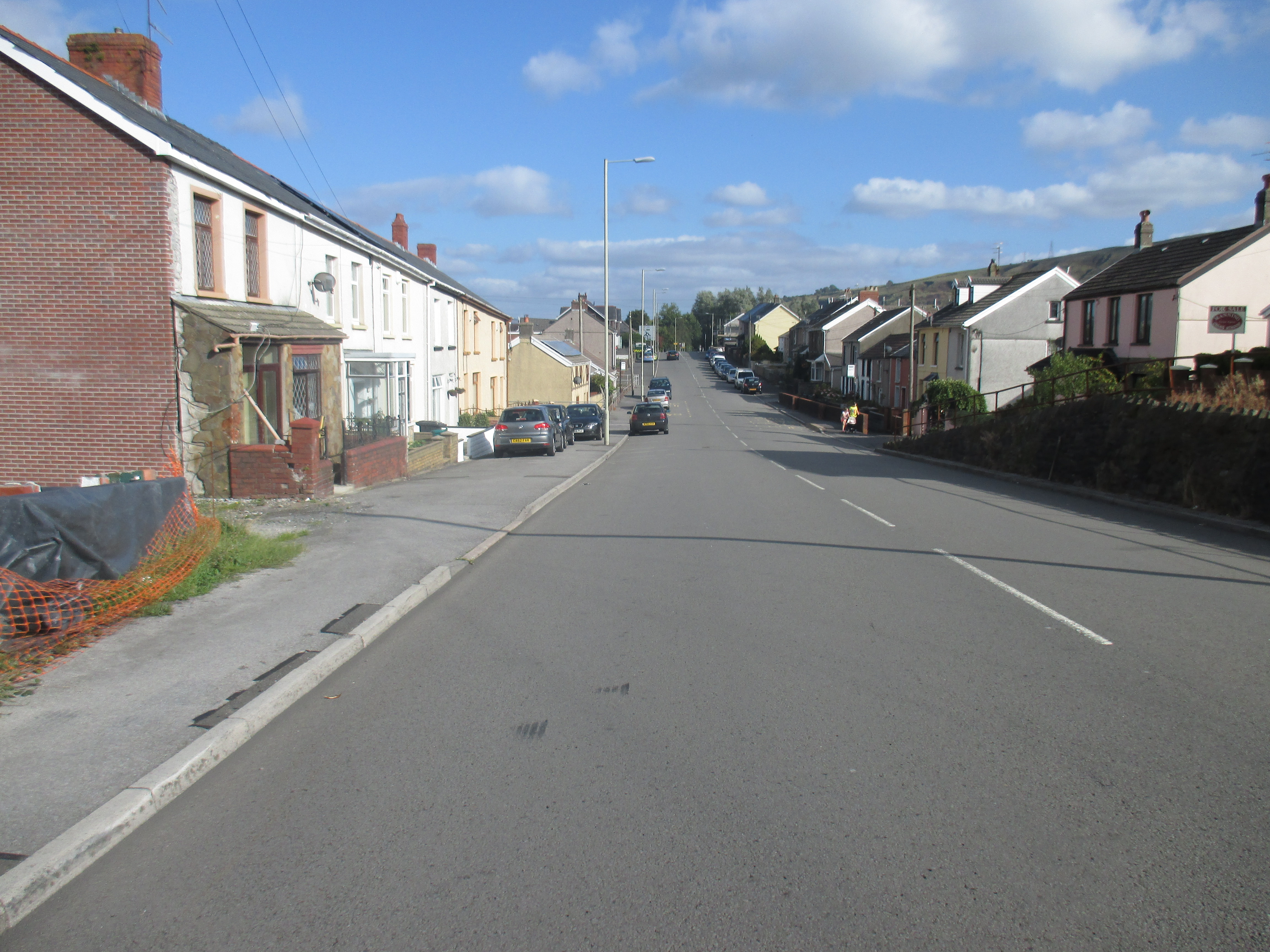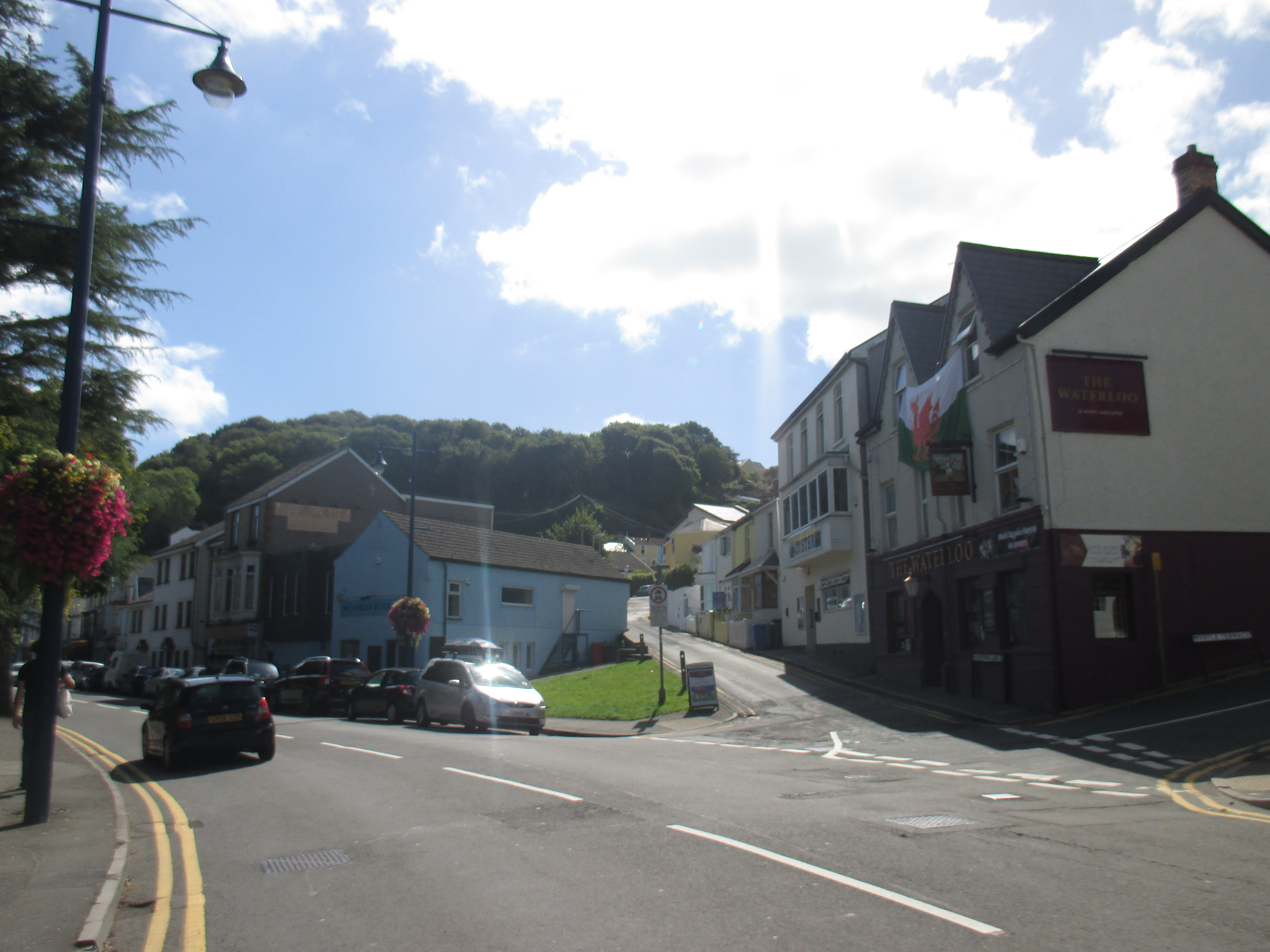 My road is steep, bringing me up through the villages of Tonna and later Resolven, small residential strips aboard steep hillsides above a busy road towards Merthyr that drives through the Valleys towards the Brecon Beacons. There’s evidence of the mining past of the area in Resolven’s large and derelict miners’ welfare club, a cream-painted and large building, perhaps once impressive but now with windows boarded with spare timber. I pass a series of Chinese-and-English takeaways and small shops, some which seem long out of business, and cross over the very busy main road to Merthyr Tydfil, my destination, and take another small road running parallel.