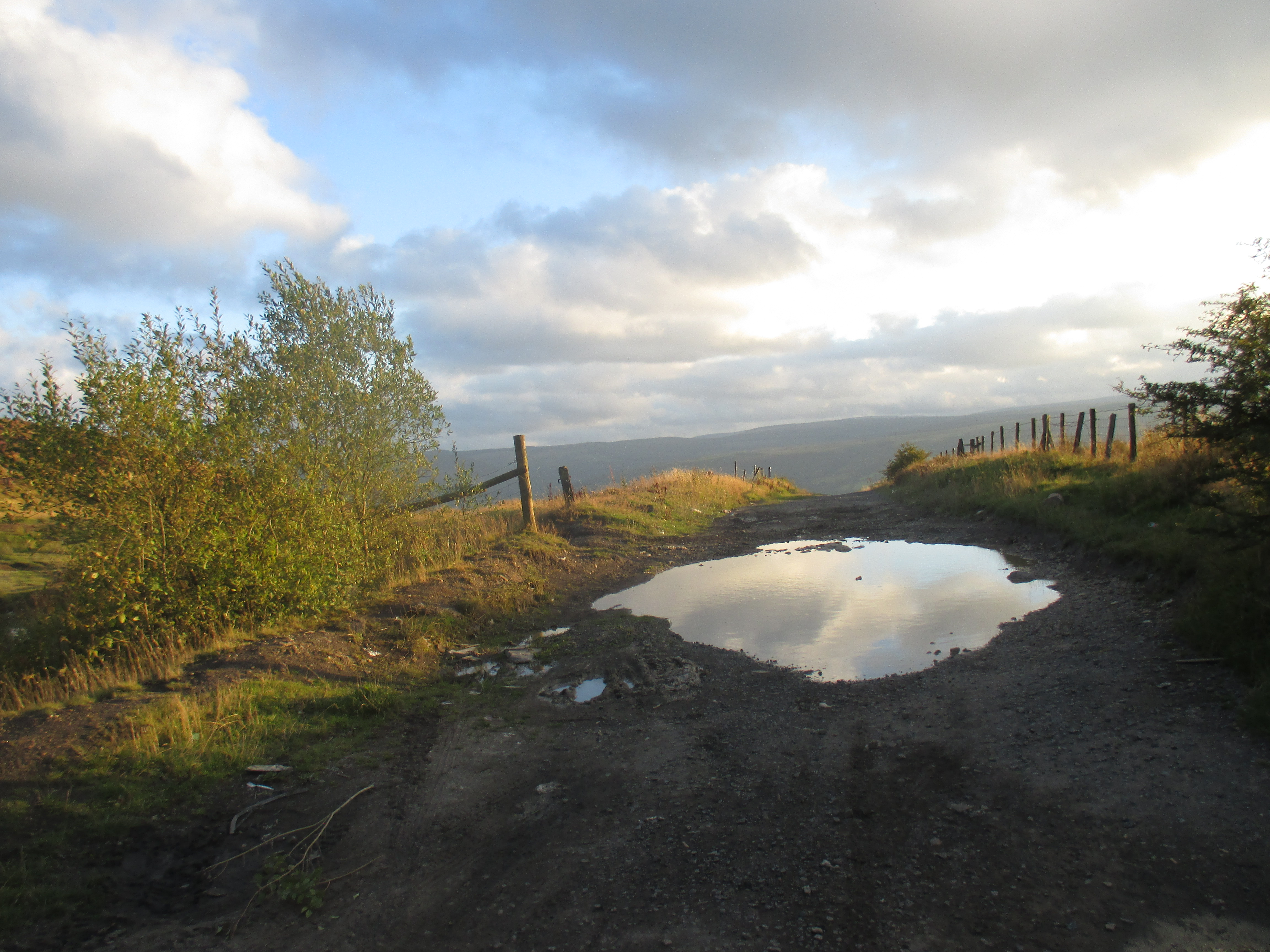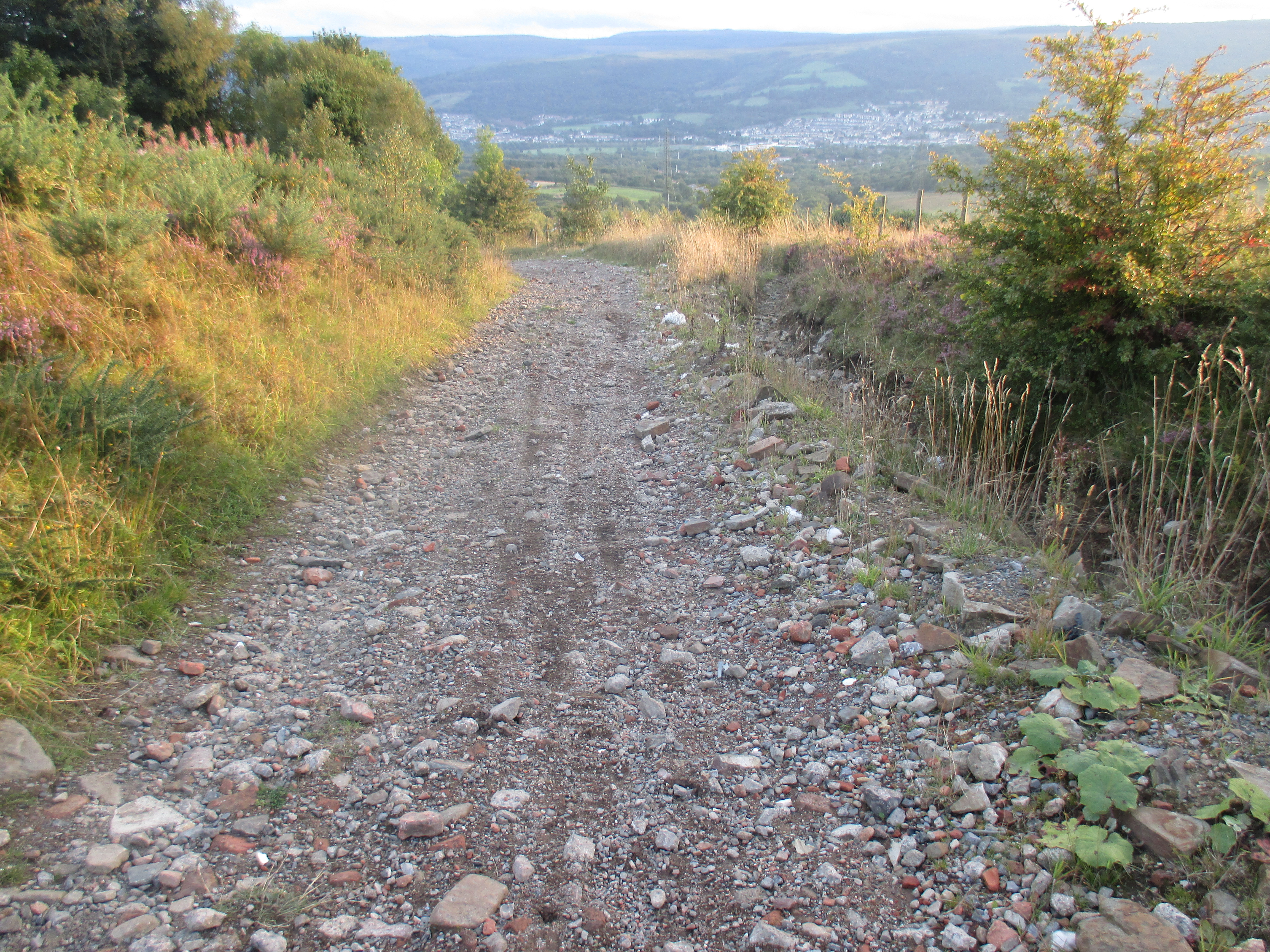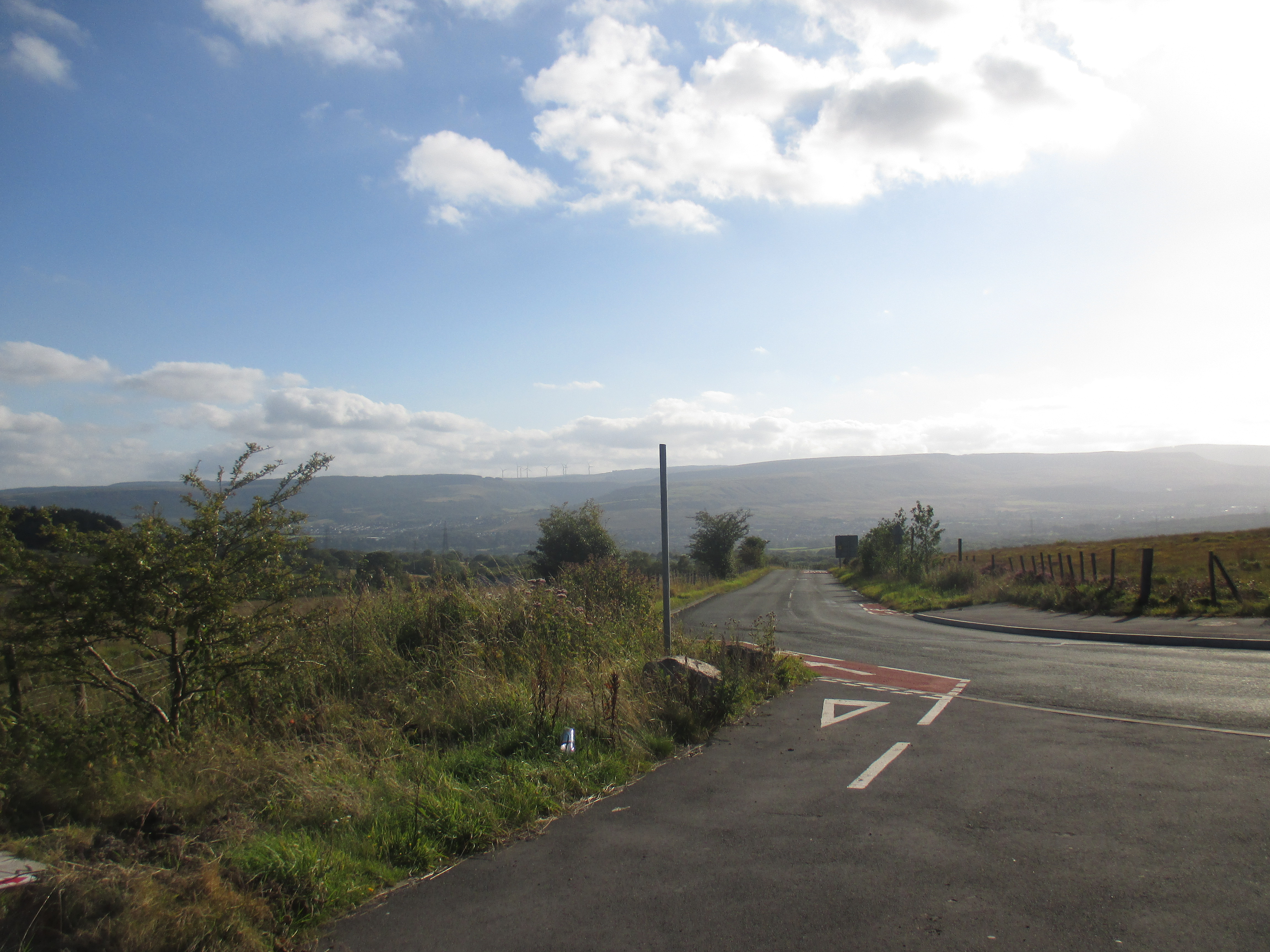 The cycle up through the suburb village of Heolgerigg is indeed very steep. There are no concessions to bicycles, horses or any other kind of transportation other than a landrover, the road rising up like a ramp into the skies. It’s at times agonising pulling oneself up this steep thing! My heart is thumping at a nauseous pace, and I need frequent pauses. Eventually I’m there, with a phone mast in sight. Just got to get down… easy eh?