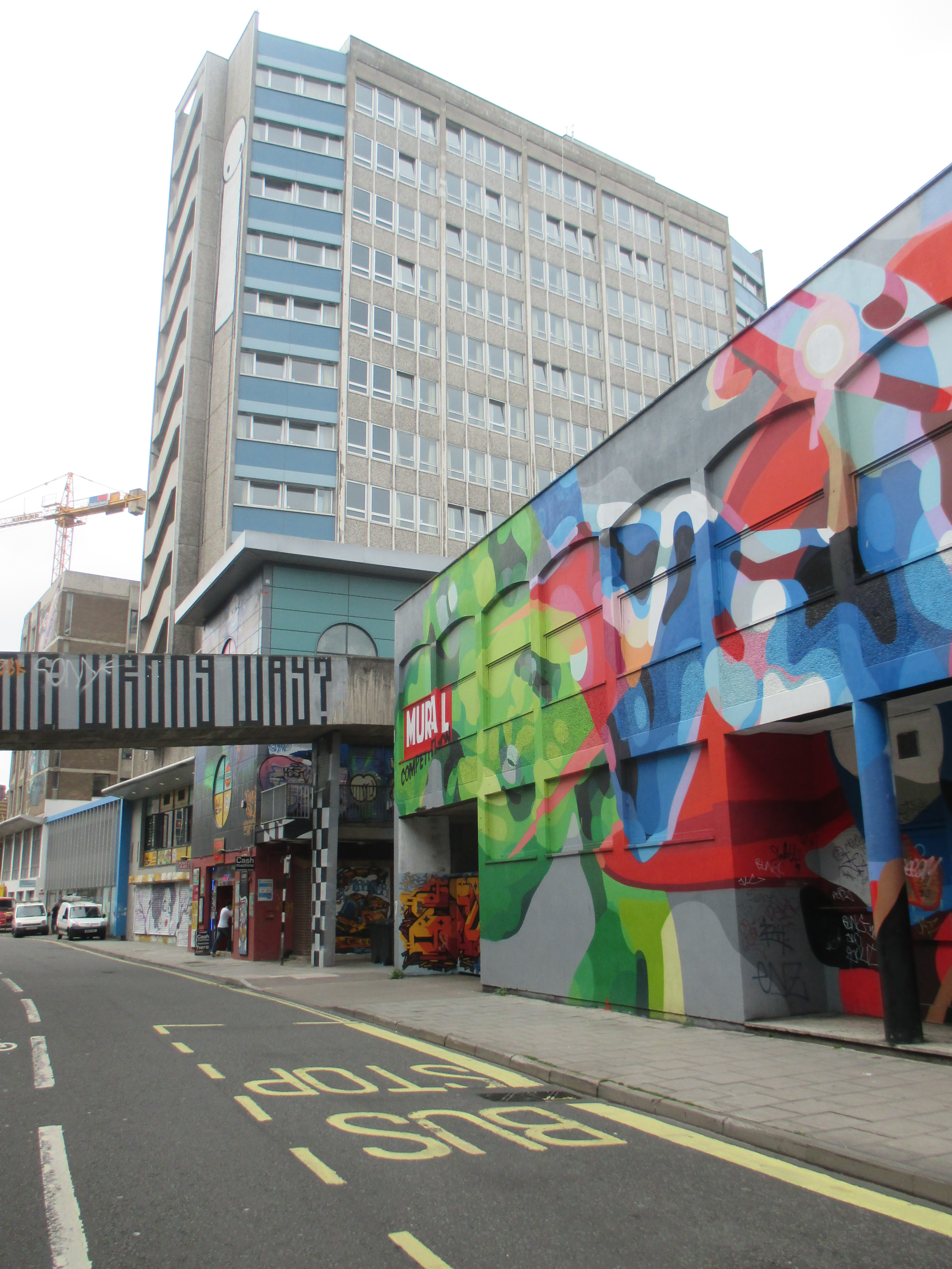 From St Pauls I rejoin the bottom of Gloucester Road and into Stokes Croft, a stretch of road that gives this surprisingly small area its name. There’s a plethora of street art all around, even more so than the abundance that adorns the edges of Victorian terraces and the sides of Sixties and Seventies’ Seifert-school office high-rises across central Bristol. The city’s a superb place to look up and around. There’s Nelson street where the buses congregate, a side-road slither with some extraordinary stuff anywhere you care to lift your eyes. This city’s the place where Banksy was born. Whilst other local councils continue to erase or paint over his politically contentious or ironic stencils, Bristol City Council has put together a walking tour and has made efforts to preserve his works across the city.