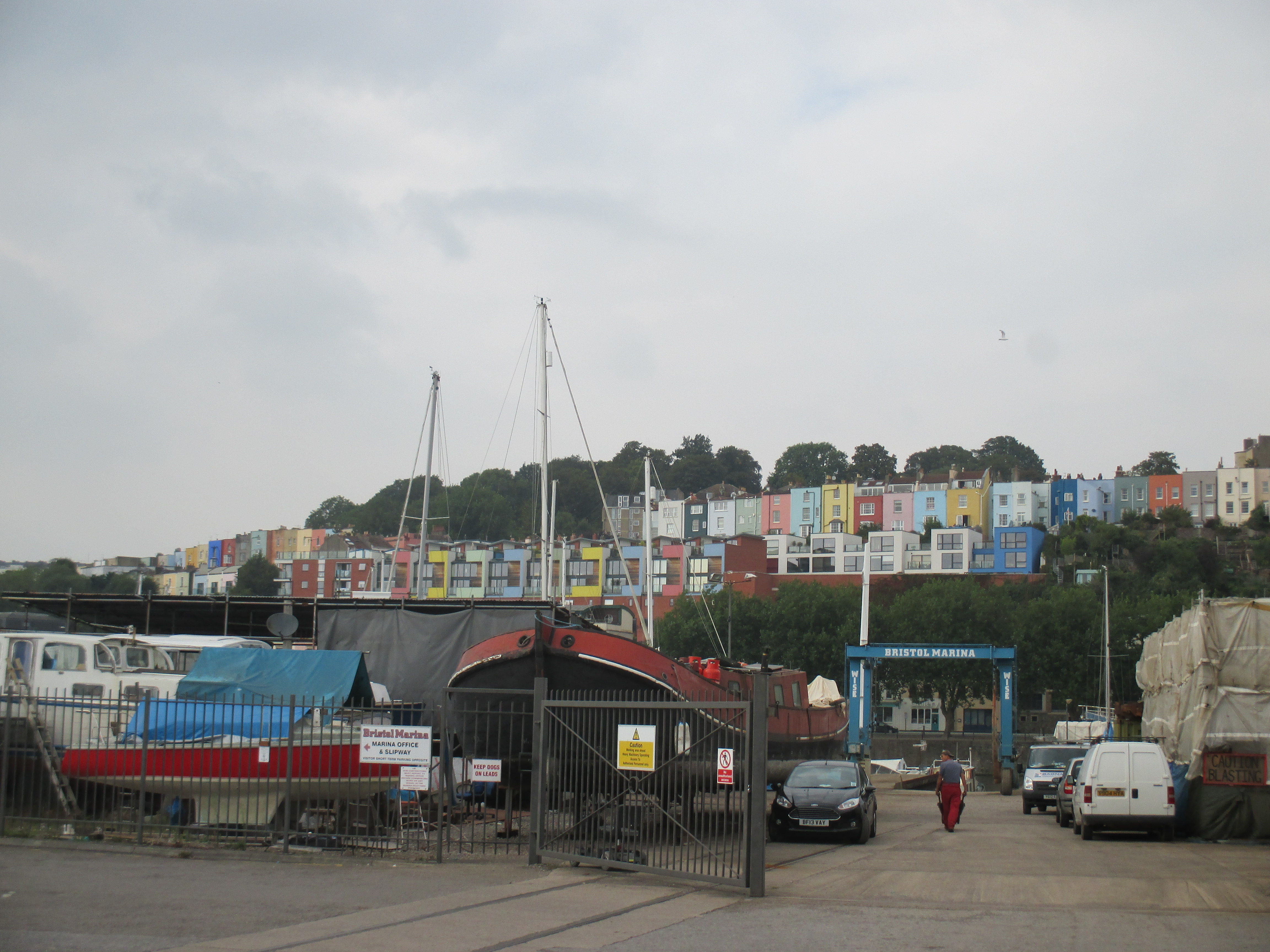 From the markets I cross back towards the harbour, along Welsh Back and besides the Byzantine features of the red-brick Granary building. I cut over the Georgian sobriety of Queen Square and pause by the Arnolfini gallery, where a young man sketches the bobbing boats around the floating harbour with lazy diffidence. Locals sit and talk on the picnic benches in the late summer sun. I cross over towards the harbourside, following a railway line that leads towards Brunel’s S.S. Britain steamship and a number of timber kiosks advertising local boatrips. In the distance are the multi-coloured pastel houses of Clifton and Whiteladies in the distance, adding to the air of overall charm. Nothing’s being cauterized or plain erased from Bristol in the way of the northern cities, south Wales or Glasgow. It retains much of its history without giving the passer-by a history lesson. And though perhaps it could be, it is not troubled by its history, and neither attempts to justify or apologise for its past. Instead, the effect is one of relief and levitation, one of relaxation. One could imagine a positive future scenario for a city like Bristol, and where else can this be said of any urban area in the British Isles, with the exception perhaps of Manchester or Glasgow?