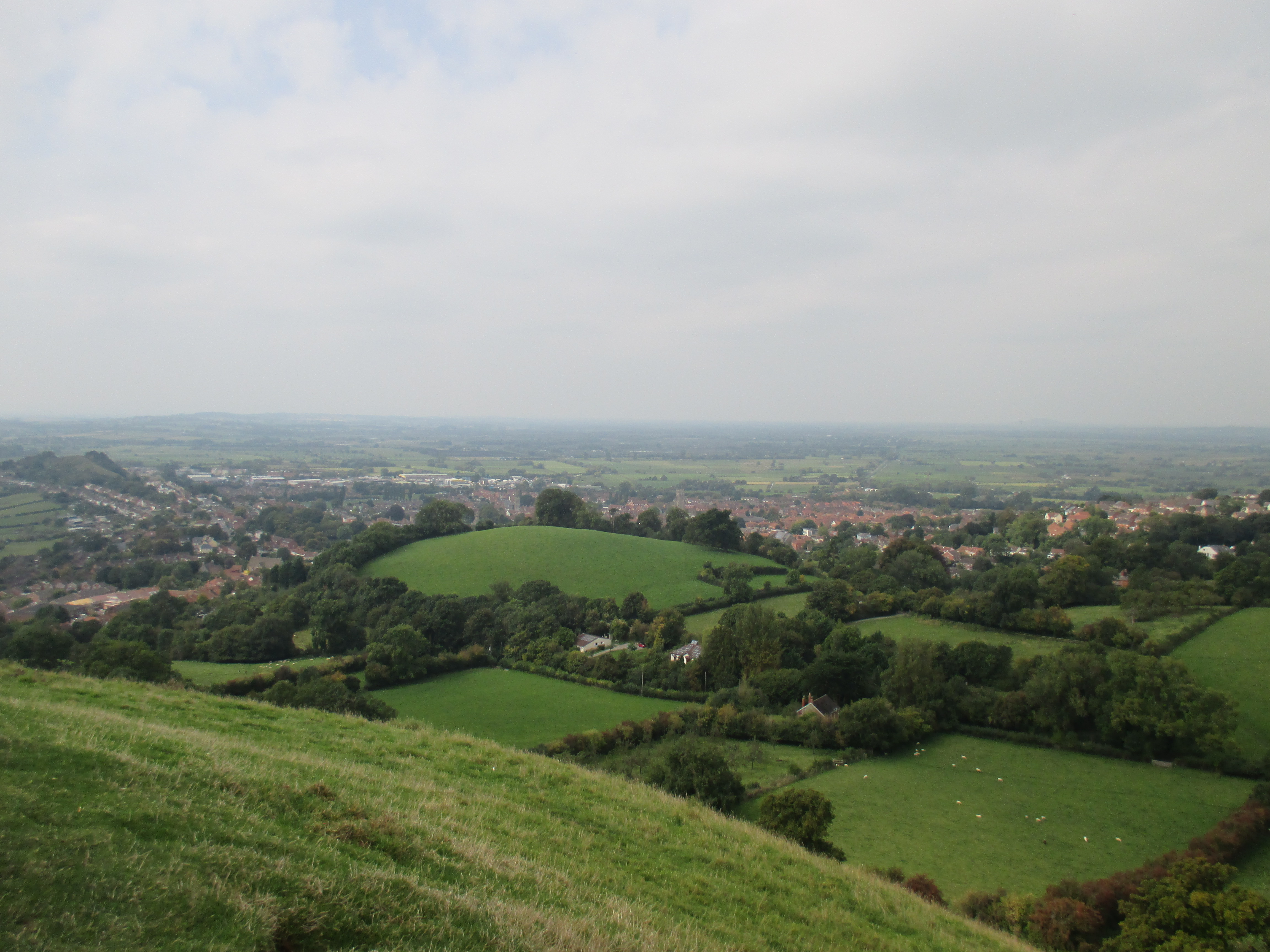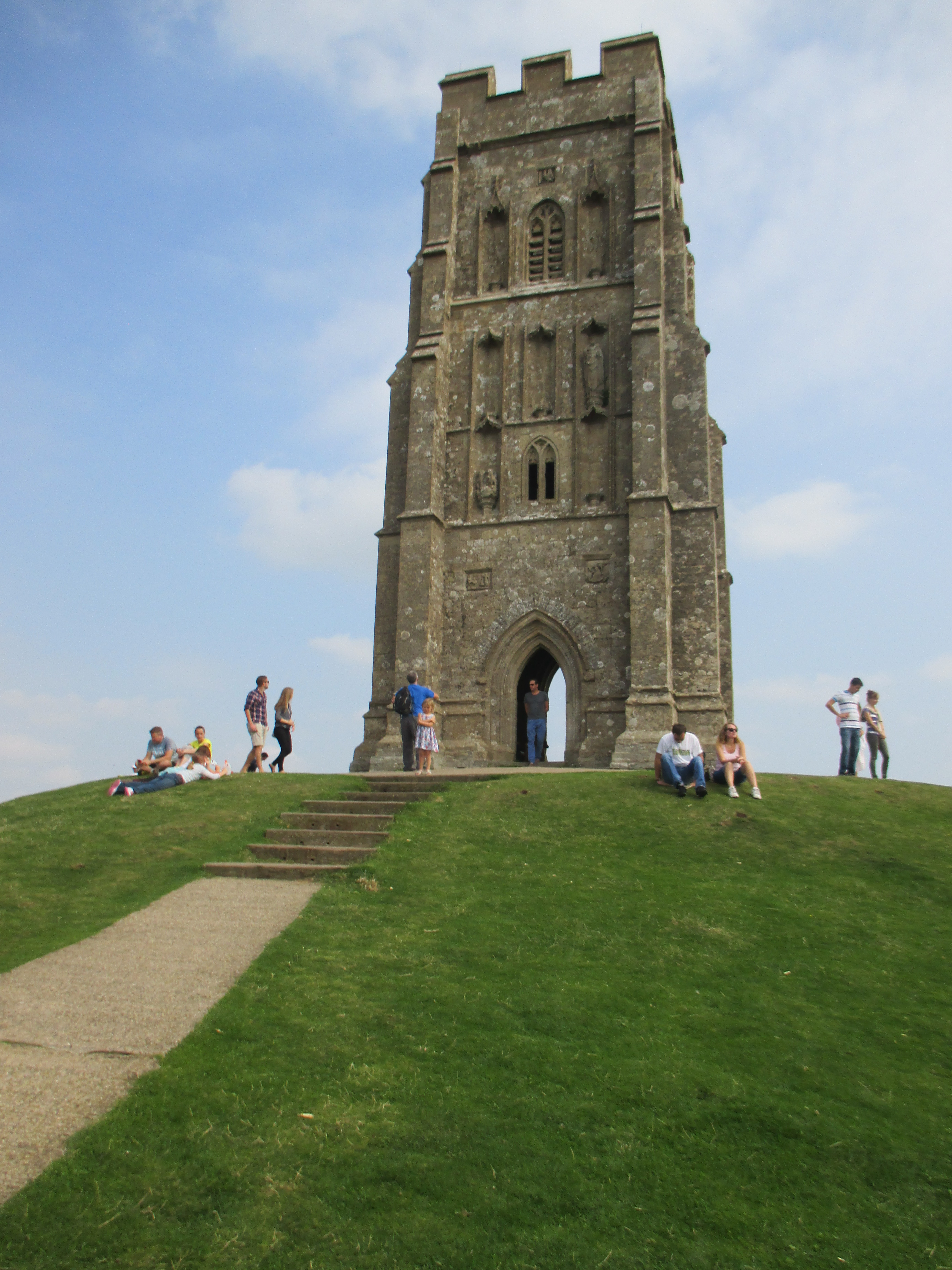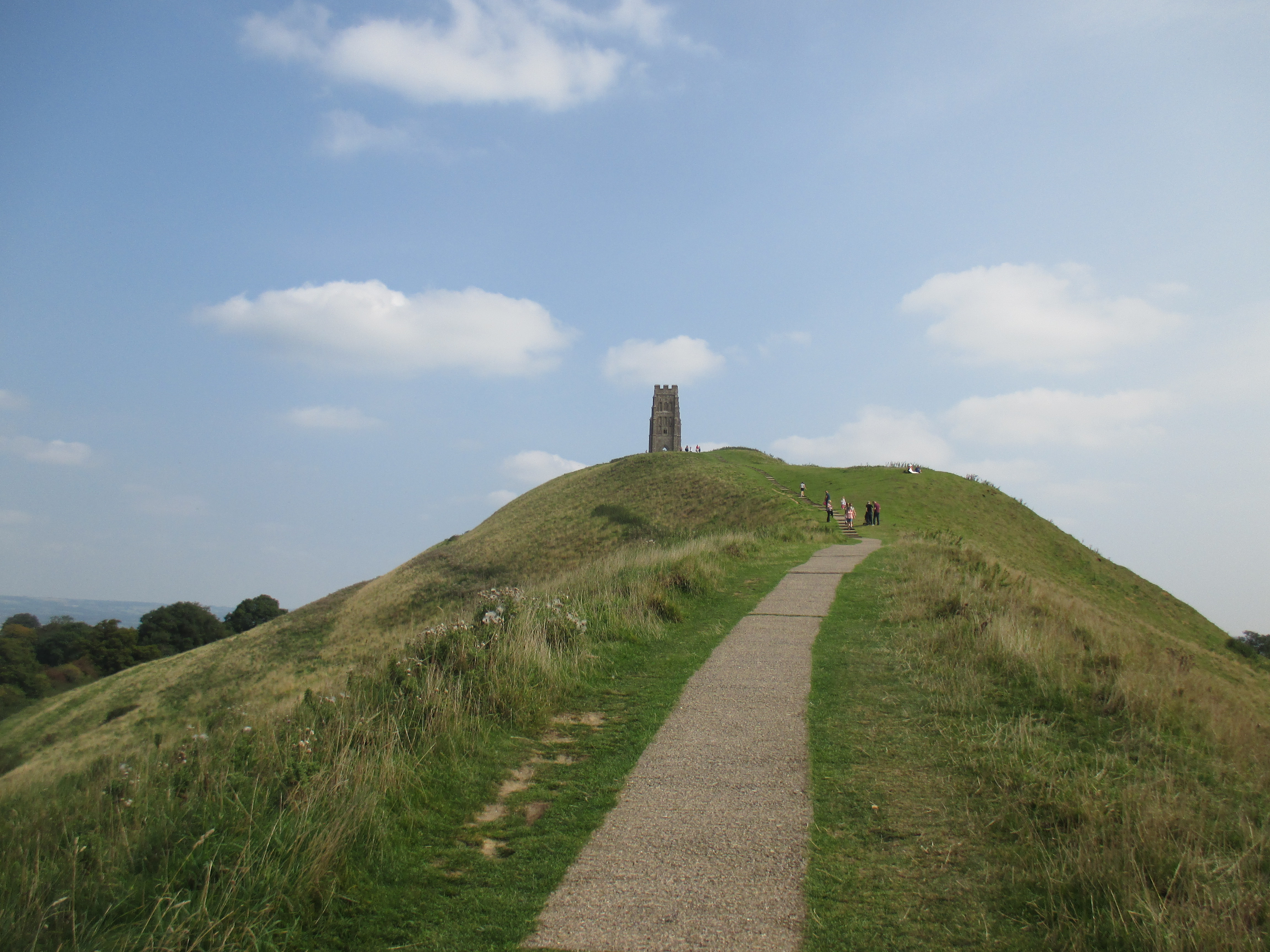It’s a perfect day for a bike ride – is every day not? But this September has been unusually hot, a fine relief after a rainy August, and today is especially sunny. So we cycle out to Glastonbury town. It’s bustling with an abundance of cafes, people leisurely sitting outside, and buskers in the background singing the counterculture hits of yesteryear. Middle-aged men and women share a unisex style of long-hair, tie-died clothes and leather waistcoats, and gently wander up the high street, past African art stores, esoteric bookstores, shops honouring the Goddess and the Green Man, and Glastonbury’s classic ‘Burns the bread’ bakers. We peer into the ruins of the abbey, sacked by the knights of Henry VIII, but don’t feel inspired to pay the charge. Then we head up to Glastonbury Tor, where many have come this sunny Sunday noon to watch the surrounding Somerset Levels.