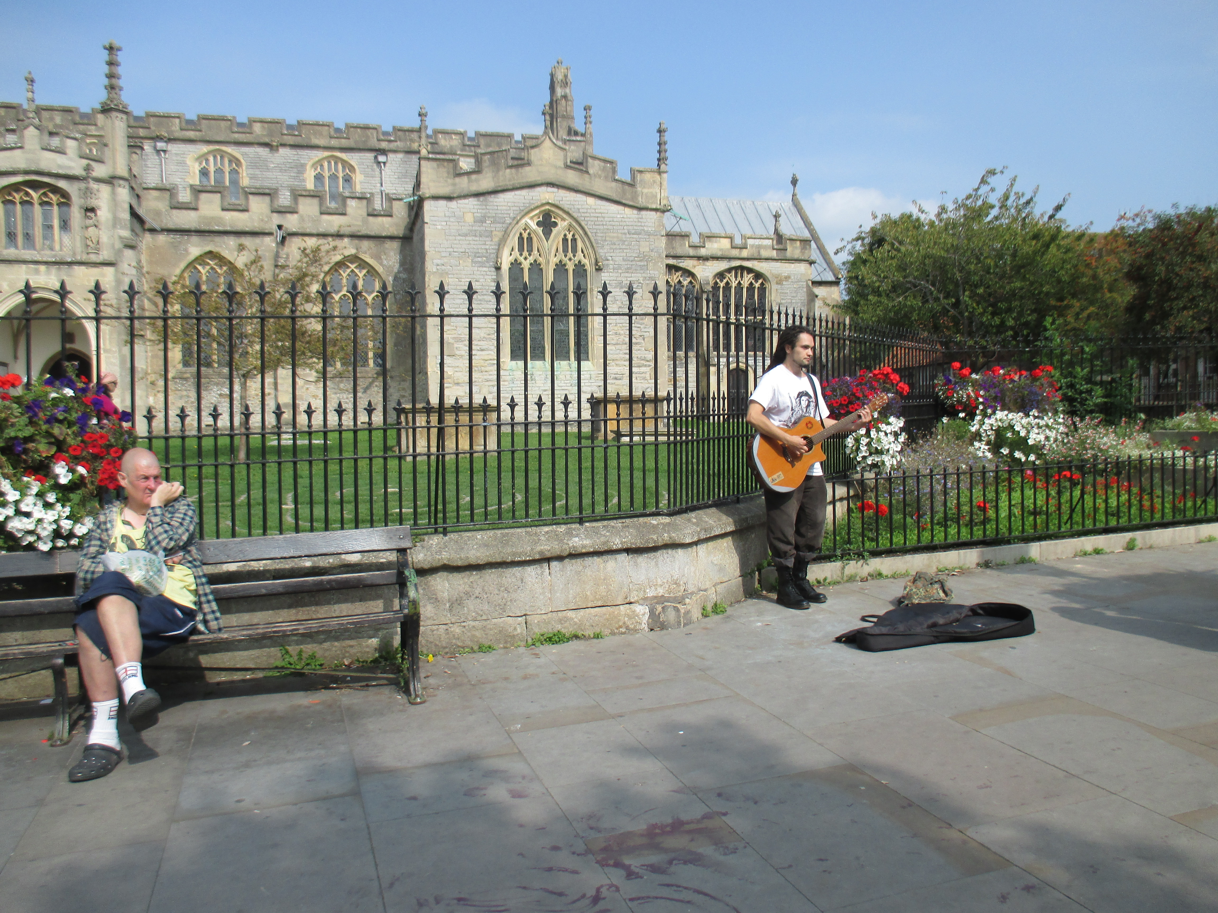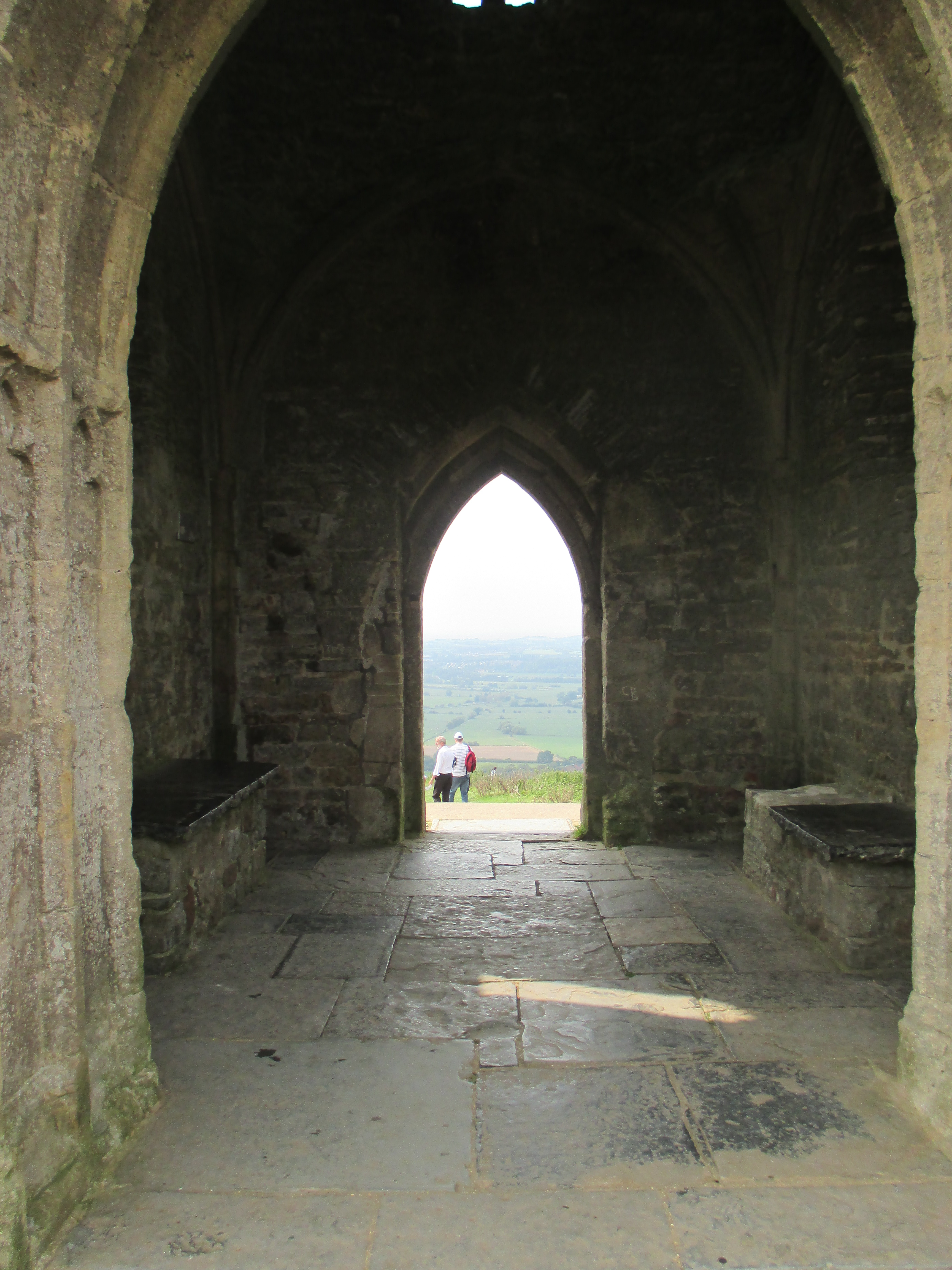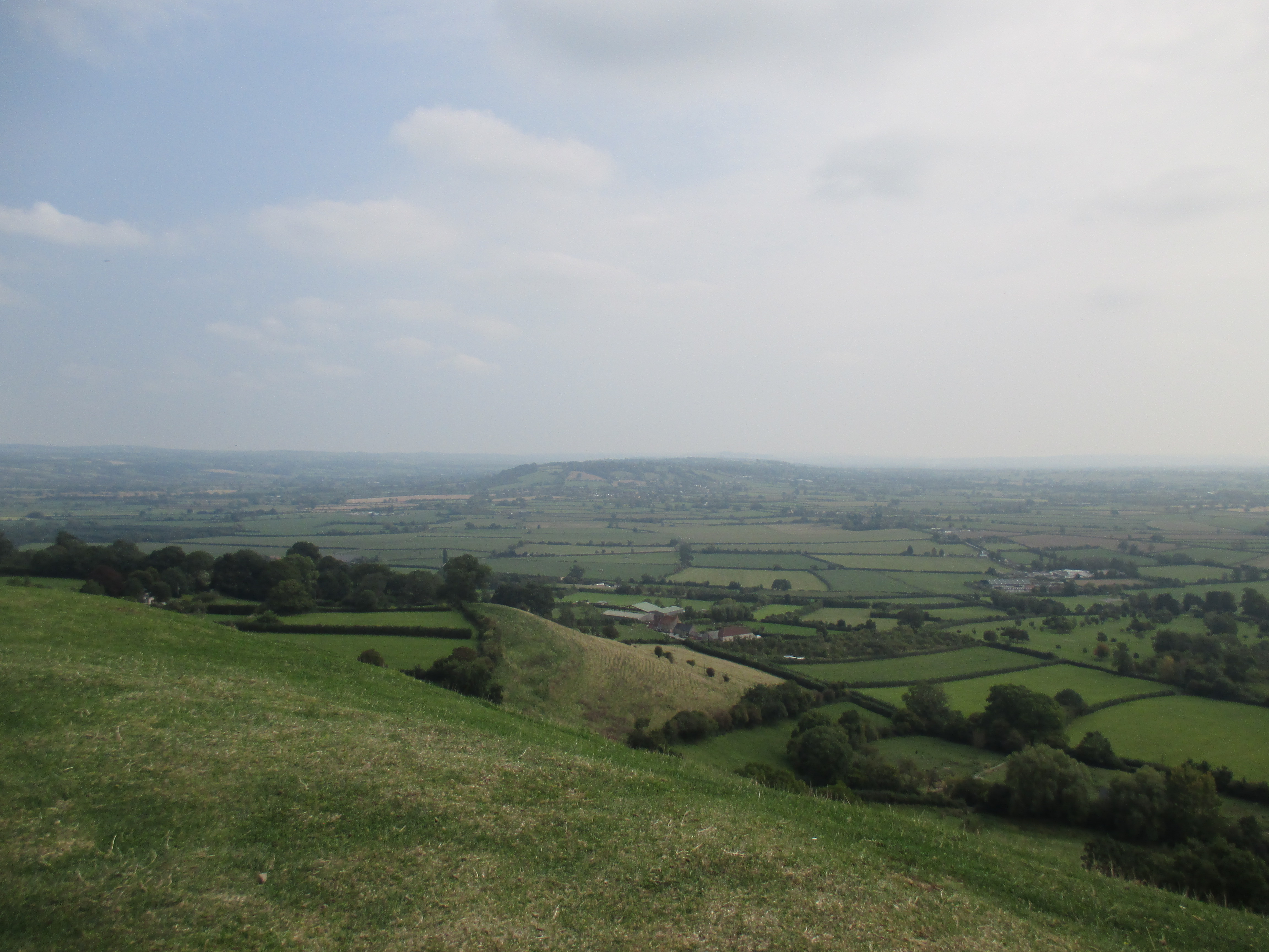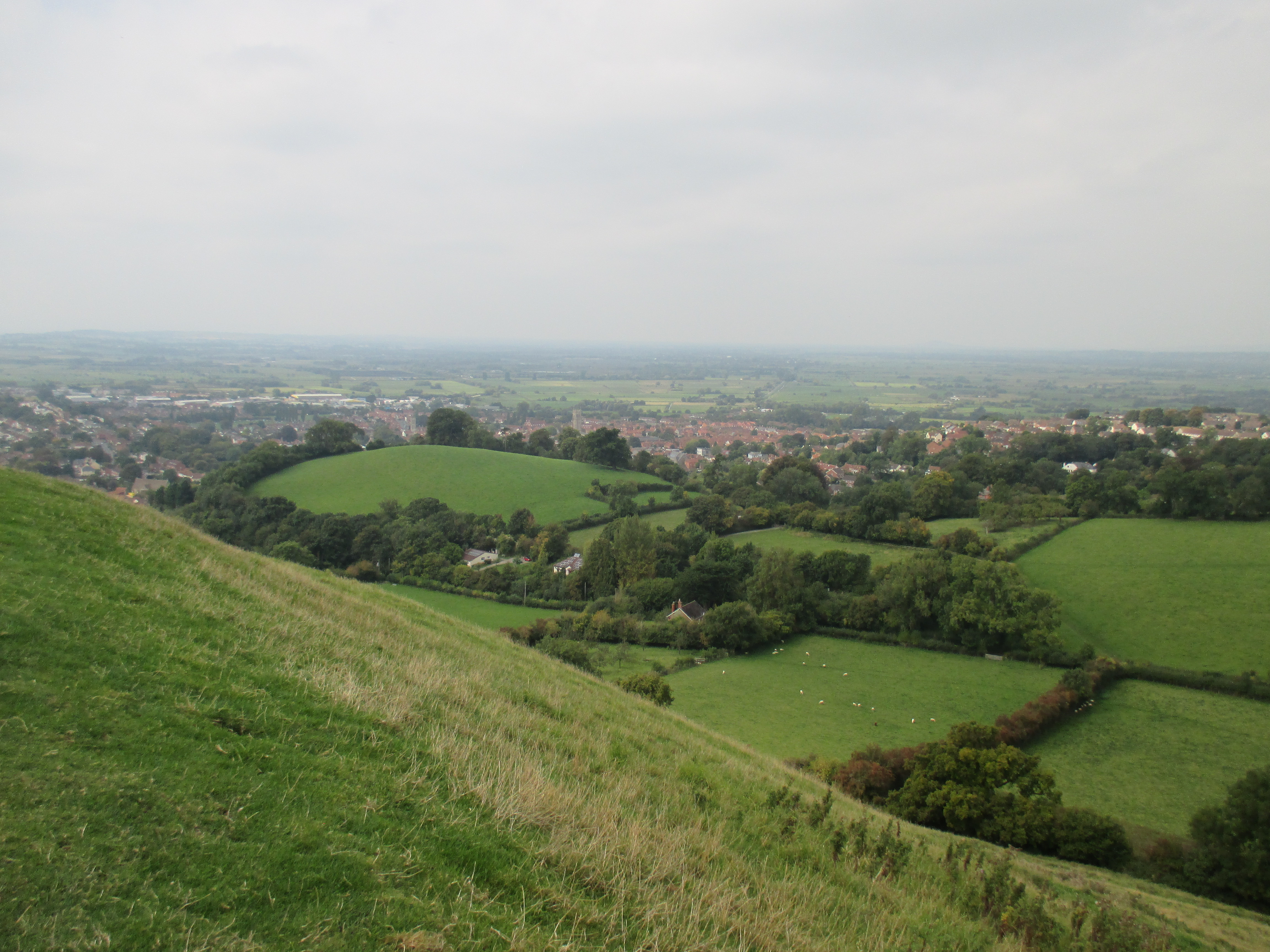 It’s a perfect day for a bike ride – is every day not? But this September has been unusually hot, a fine relief after a rainy August, and today is especially sunny. So we cycle out to Glastonbury town. It’s bustling with an abundance of cafes, people leisurely sitting outside, and buskers in the background singing the counterculture hits of yesteryear. Middle-aged men and women share a unisex style of long-hair, tie-died clothes and leather waistcoats, and gently wander up the high street, past African art stores, esoteric bookstores, shops honouring the Goddess and the Green Man, and Glastonbury’s classic ‘Burns the bread’ bakers. We peer into the ruins of the abbey, sacked by the knights of Henry VIII, but don’t feel inspired to pay the charge. Then we head up to Glastonbury Tor, where many have come this sunny Sunday noon to watch the surrounding Somerset Levels.