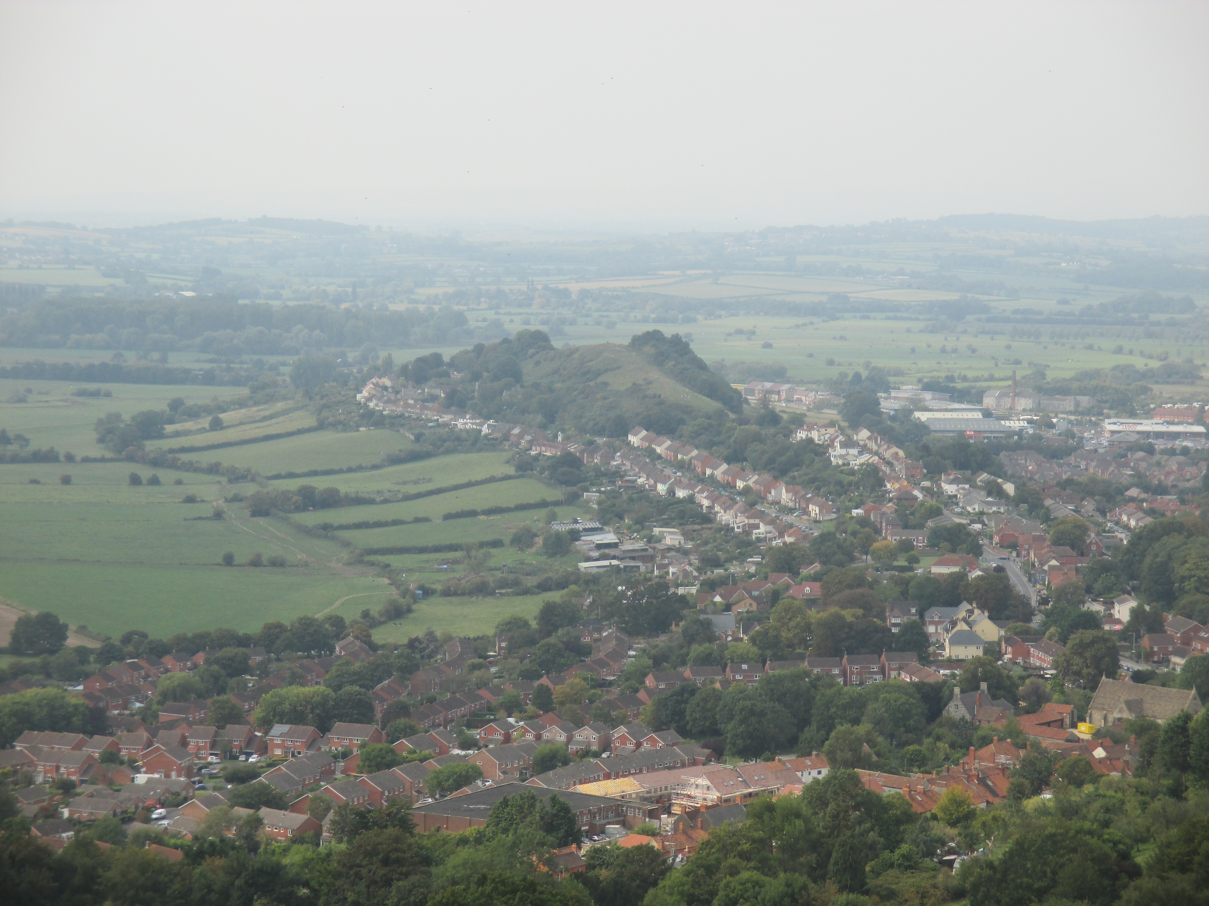 Wearyall Hill looms in the distance. A very unusual thorn once grew on this hill, apparently produced from nothing when Joseph of Arimathea struck his staff. Local legends have it that Joseph of Arimathea brought Jesus here as a young man. Joseph was a wealthy trader who may have travelled from Judea to Cornwall to trade for tin and other minerals, and, on at least one visit, brought his nephew Jesus to see Cornwall, Devon, Stonehenge and the Mendips. This legend inspired William Blake to wonder ‘and did those feet in ancient time, walk upon England’s mountains green?’, later set to music in Jerusalem. It refers to here, Glastonbury, and this mountain green in the distance.