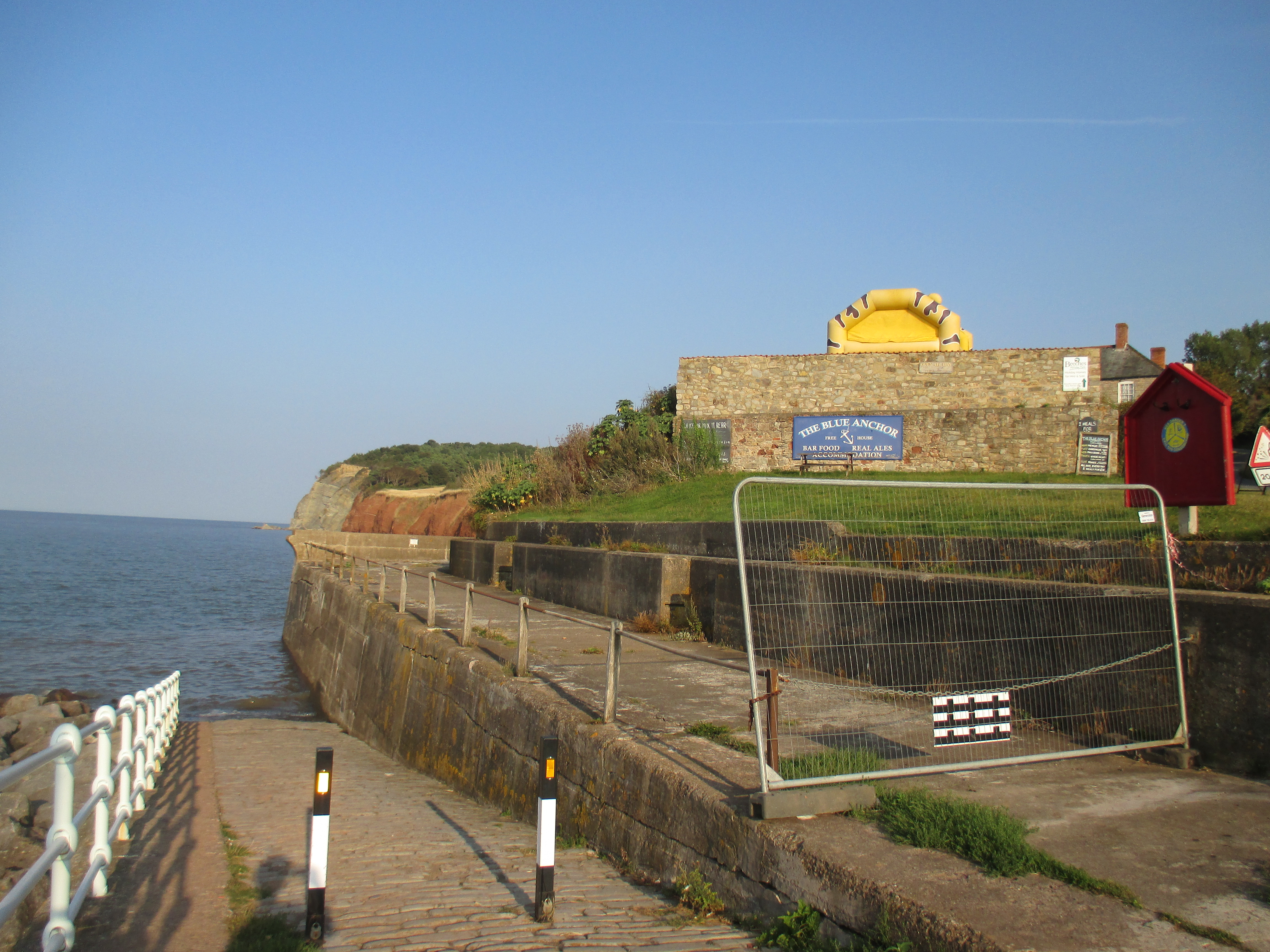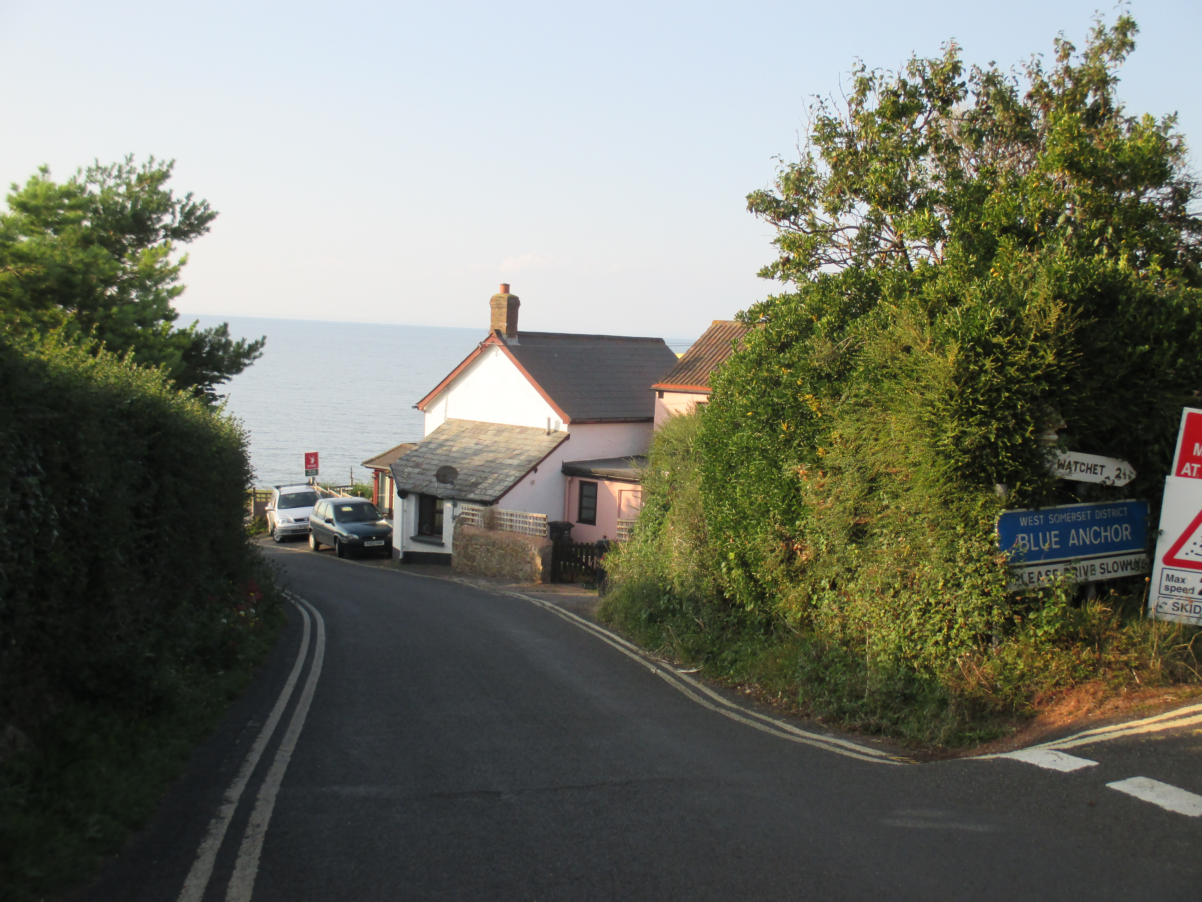 The Ancient Mariner is a haunting warning when humankind transgresses its symbiotic relations with nature, through the guilt and punishment for the killing of an albatross. The Quantocks remain suspended in time and ripe for romantic perambulations of the mind. I travel on, cycling thrugh the sleepy village of Williton, and past signs with the most quaint of instructions. Caution: cats crossing! May I say how happy these kinds of signs make me. Delighted, I detour through Old Cleeve and down to Blue Anchor, a seaside string of holiday cottages, fishermen and a bustling pub where anglers crane over a long promenade in the early evening sun.