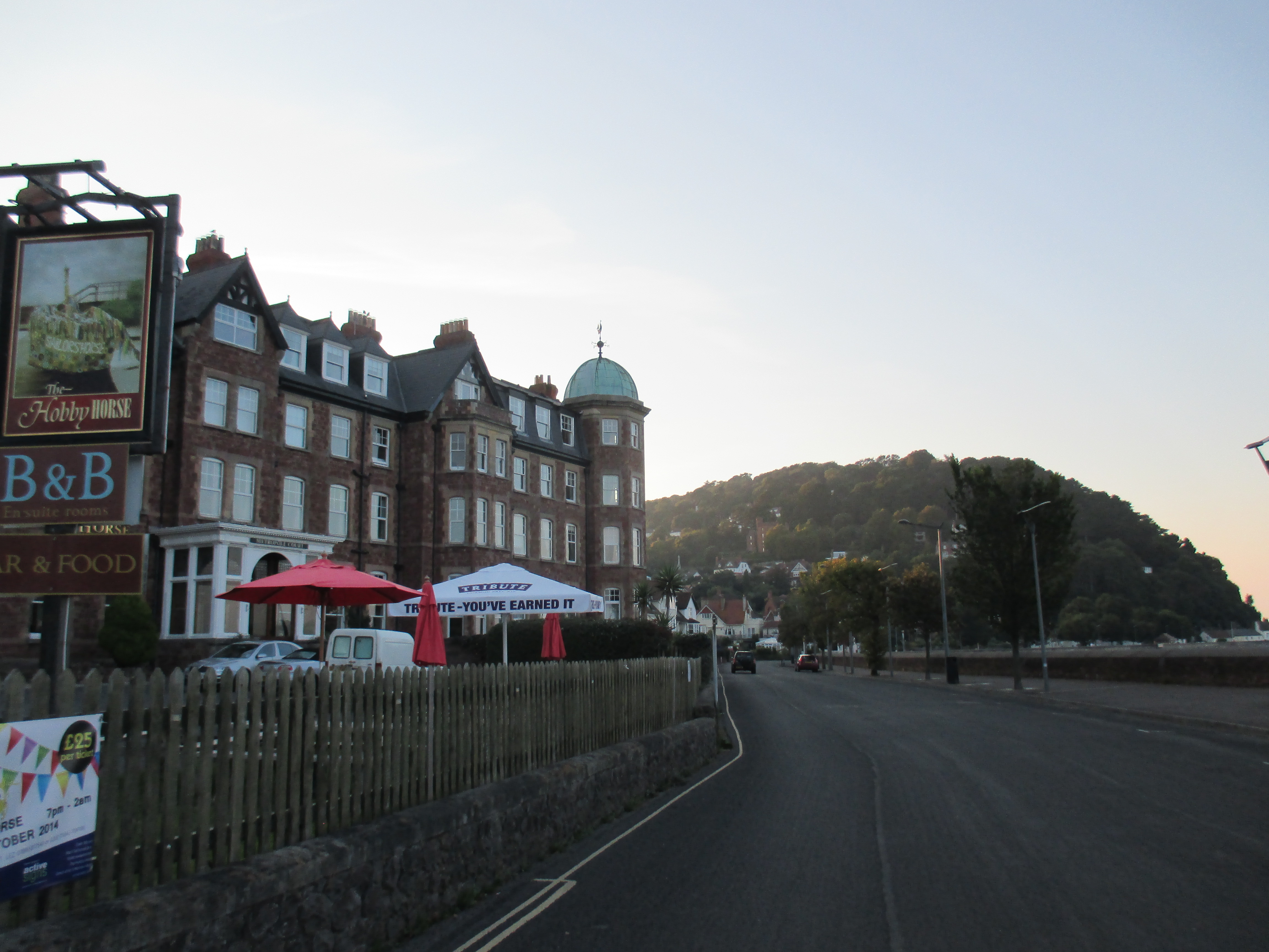 The town gets prettier the further one cycles into the town, which is surprisingly well-preserved, its Victorian character surviving in its prim little park, fawning statue to the queen and robust-looking high street. There’s a number of still-proud looking terraces where hotels and boarding houses once plied a trade. They’re not derelict, which is a relief. In fact it actually looks like Minehead might be a nice place to live, an unlikely result for the contemporary ex-seaside resort. There’s a few pubs plying a trade, and I’m tempted to stop, but I feel tugged by the wilderness that lies ahead. So reluctantly I head out along a back-road that threads up and west, out of the town and towards the full setting sun.