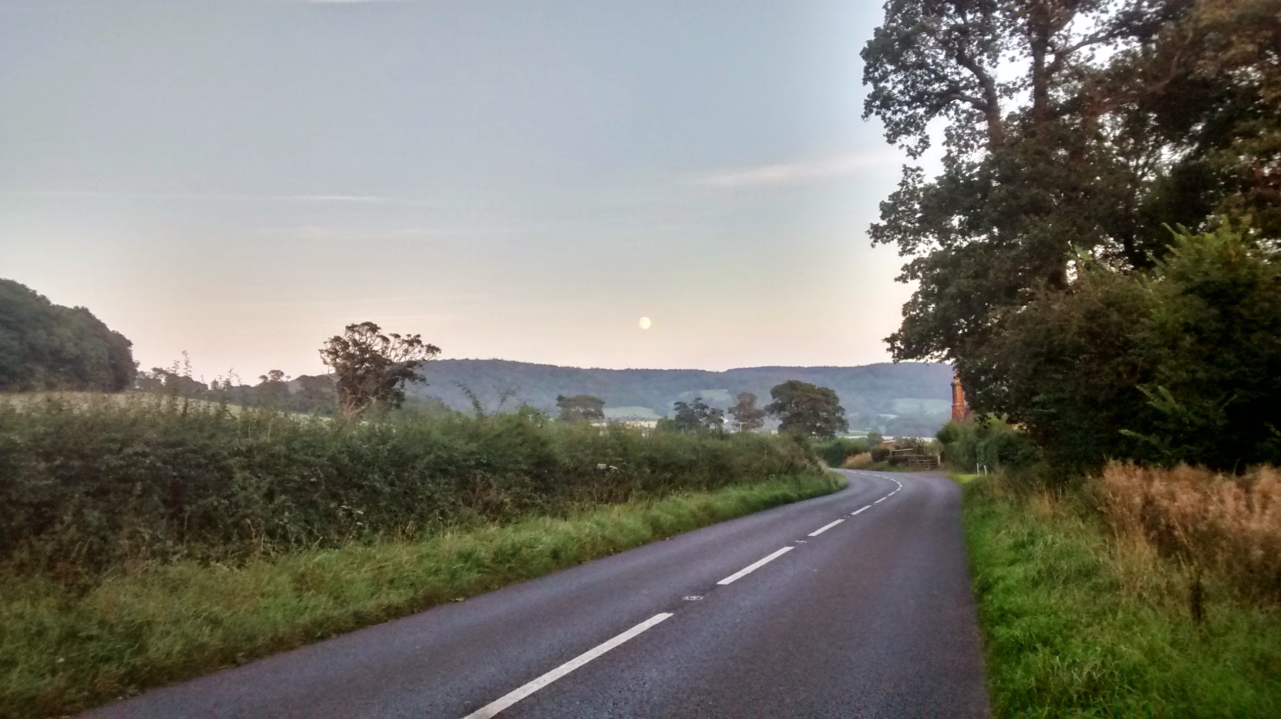 Whoever this deity of happenstance happens to be, I thank them for escaping that eerie and unpleasant forest. But now I am at the very top of something, though I’m unsure what, or where. There is no phone signal here, so no means of checking my phone’s map or of contacting my partner. It is also pitch-black. Aided by the lights of the stars and a full moon, I manage to follow what I judge to be the road up. I’m simply looking for a place to wild-camp, but with it being so dark I cannot tell which fields have livestock in and which do not.