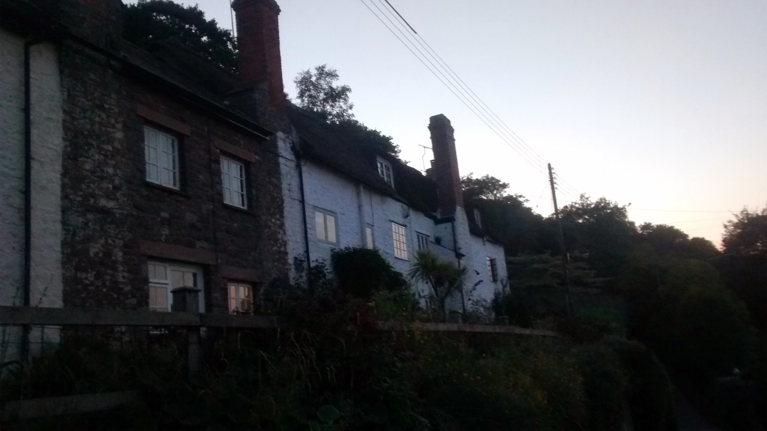 I race on, out through the back of Minehead and along the A39. The bike is shattering me, til I realise that the front brake is now dragging against the wheel, just as the back brake dragged against the wheel until I reached Cardiff. It’s a frustrating discovery. Why does this bike choose to wait and save its psychodramas and breakdowns for moments like these, besides roadsides with very little light and nowhere obvious to stop? And so, I think, let’s take a photo. Lo, my camera stops working. Let’s hope it’s just the battery, but please, for anyone in contact with the deity of fortune and happenstance, please pass on this simple data request: why, bloody why?