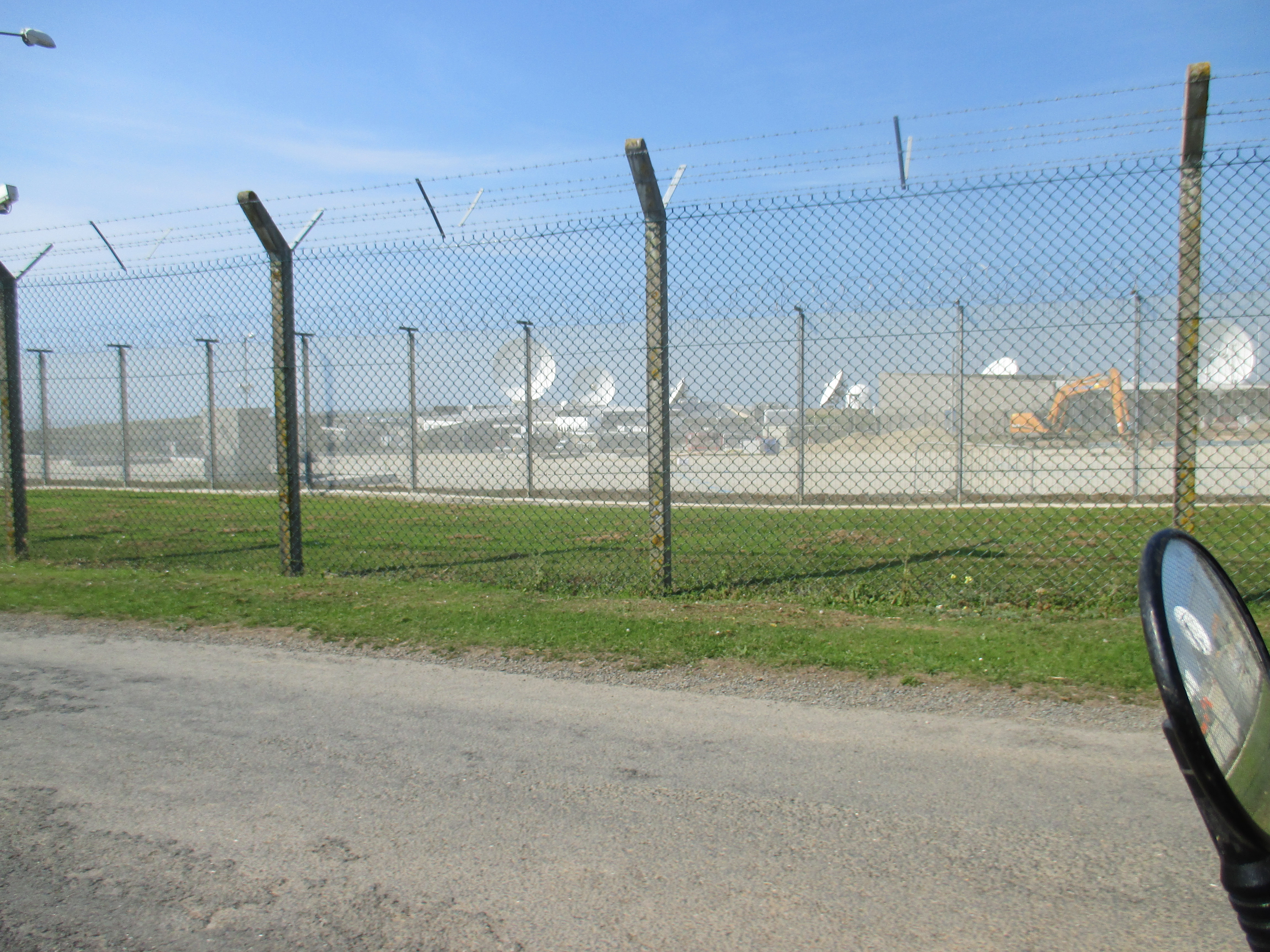 But though the cities are more interesting, the pleasure of this trip comes on days like these, riding with the sun besides me through some wild and magical landscape. I soar up high (or rather, huff) through the Coombe valley, and pass a sinister complex cocooned in barbed wire and CCTV cameras. Here the British government spies on the emails, phone-calls, texts and web-searches of the rest of the world. From the secret signals of UN officials to the porno and cat photos that typify modern internet usage, GCHQ checks and stores it all.