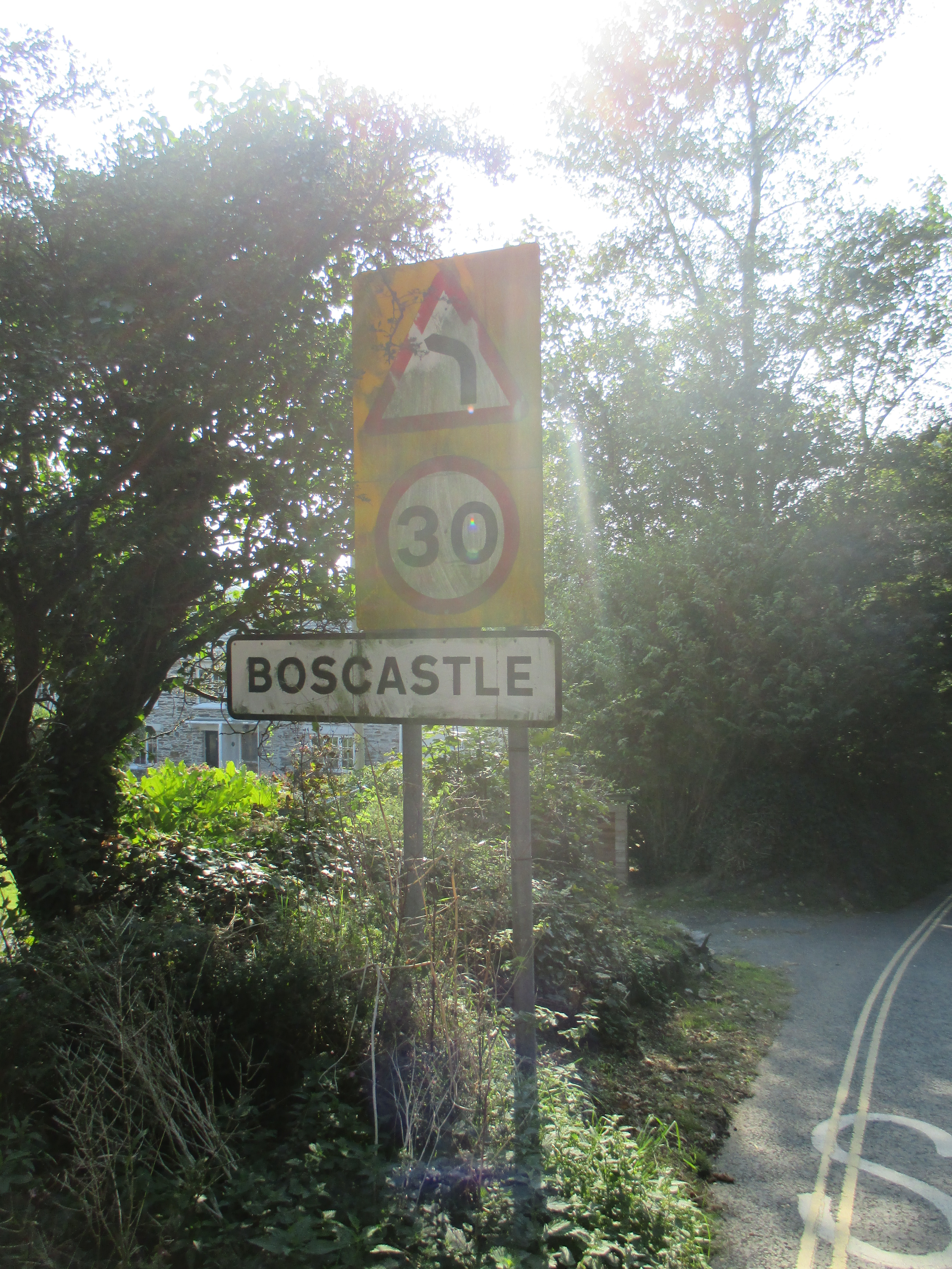 By Slaughterbridge, near Camelford, lies King Arthur’s stone, a place supposed to be his grave, 1500 years old. An Arthurian Centre plies a good trade nearby. I avoid it, my road passing Dimma and the Rebel cinema (showing Hollywood flicks instead of Godard, Pasolini or John Waters’ shit, alas), taking me up to Boscastle, tucked neatly into the coastline. It’s abub with visitors, wandering besides a series of attractive visitor attractions built alongside the narrow fishing harbour here.