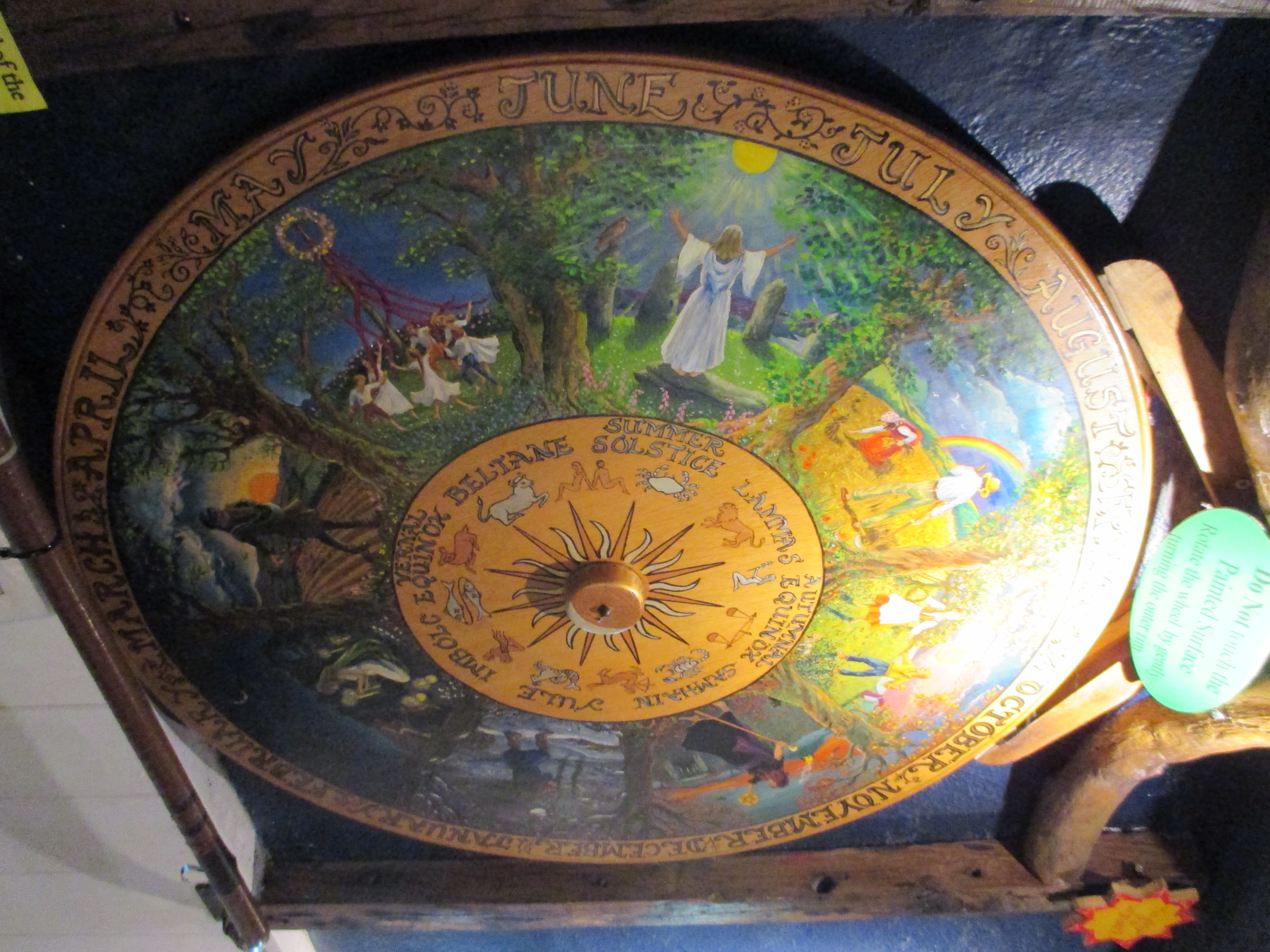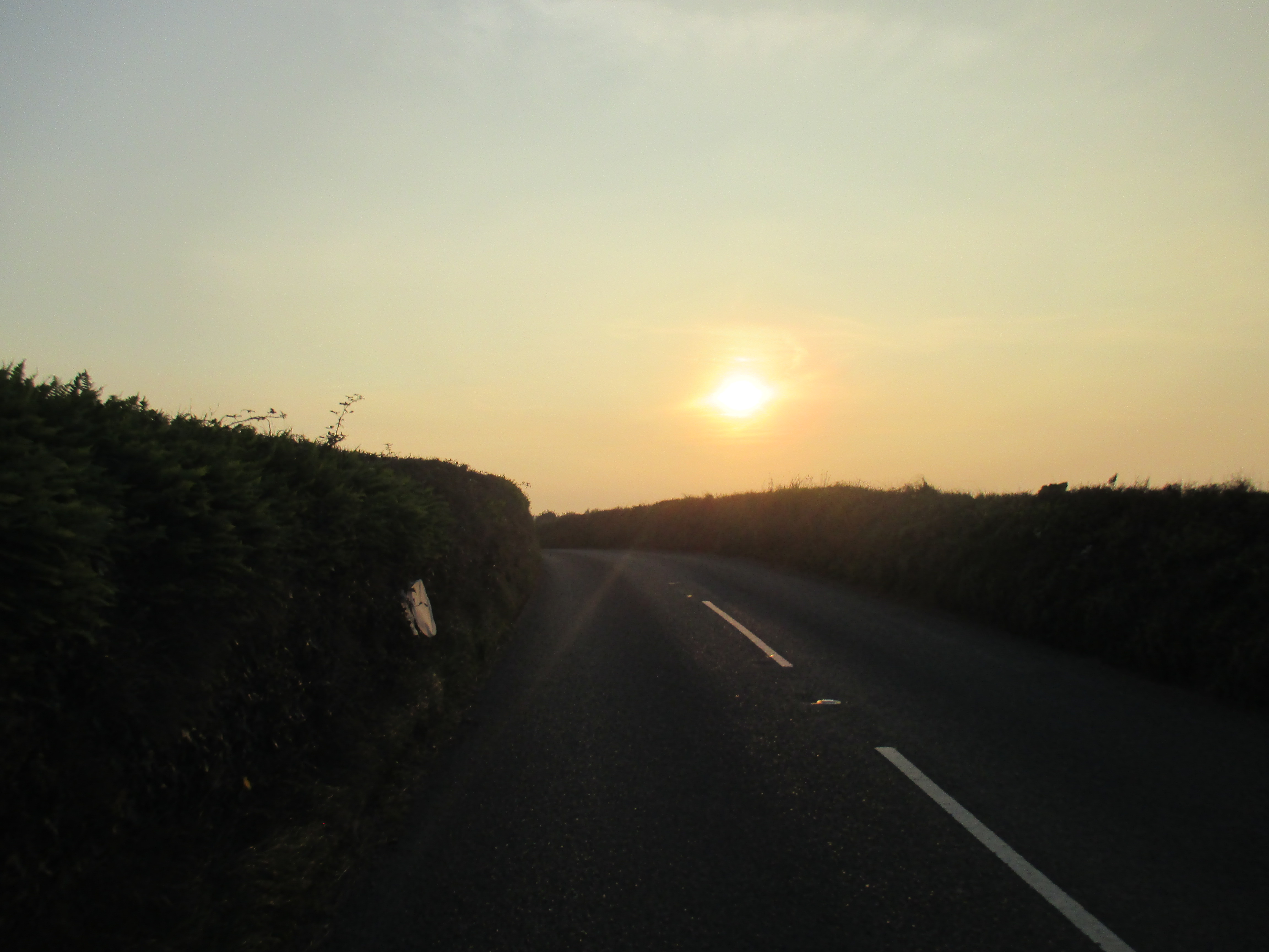 I leave Tintagel and cycle through the most beautiful of countryside, glorious and light. The sun is setting in the skies ahead of me, providing me with the light, heat and inspiration to continue. I recall the exhibits of the Witchcraft museum, and the standing stones I’ve passed and slept by, the stained glass of the cathedrals, and the solar and lunar rituals of Judaism and Islam. It’s not just paganism, but in so many belief systems there’s worship of the sun directly or indirectly. Consider Stonehenge and its alignment of the solstices, and those great festivals one can imagine in ancient times. Look beyond the face value of the claims of those belief systems. Behind the rituals around fertility, spring or harvest, these events inscribed pleasure and play into human lives that were regularly rocked by deaths, deprivation and uncertainty.