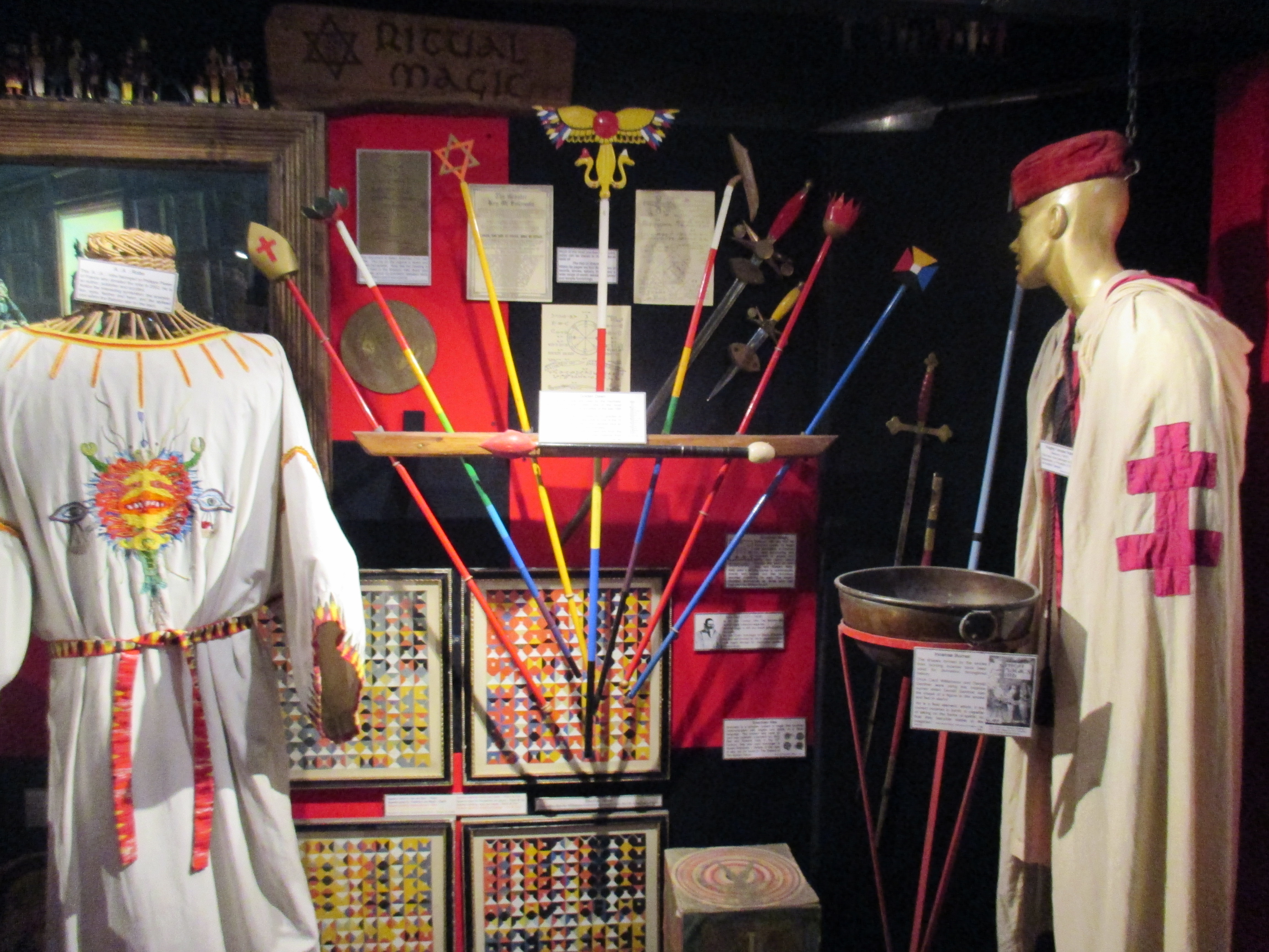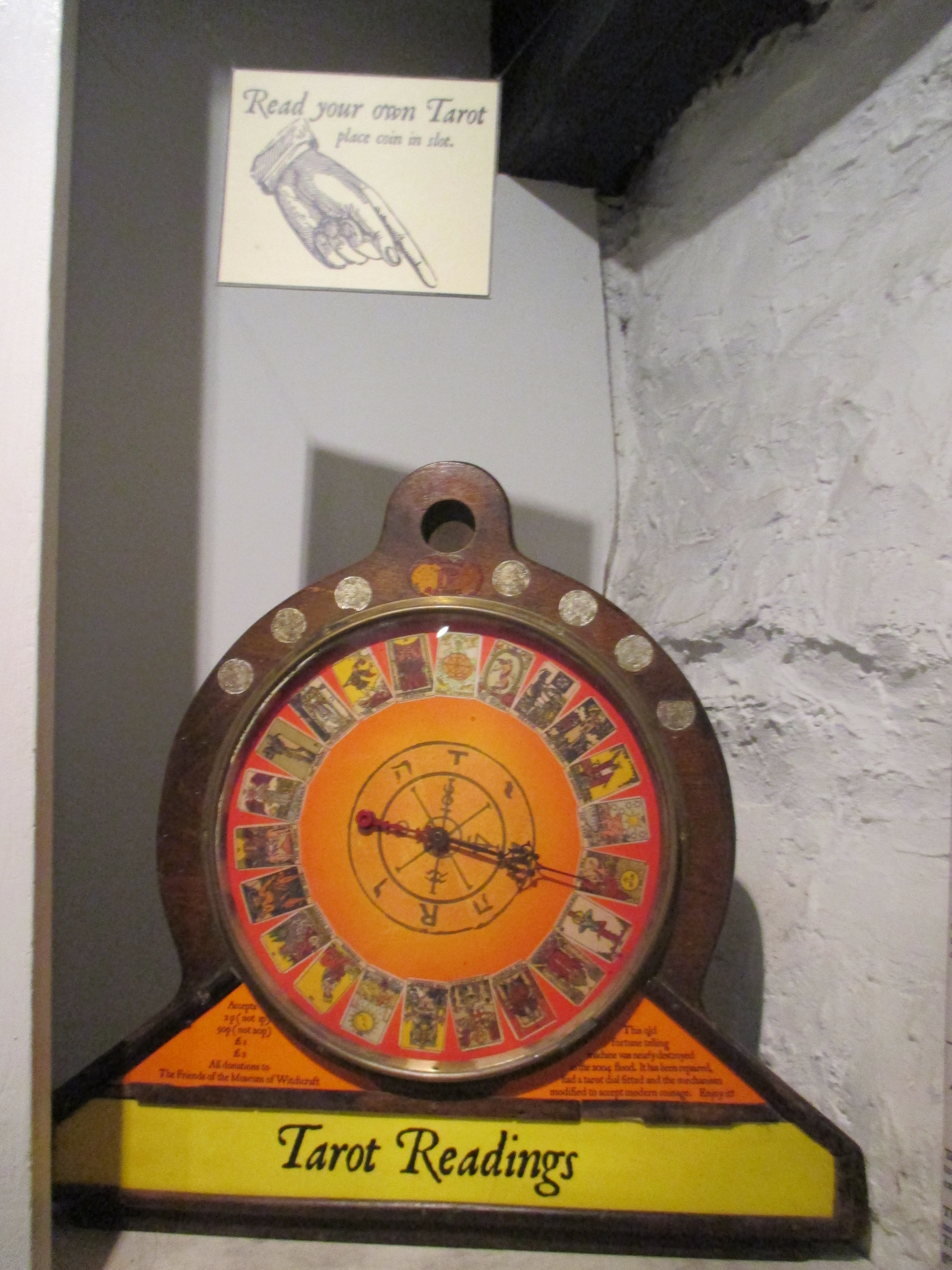 Witchcraft, what is that? I ask the question in an open spirit. ‘There are good forms and bad forms’, is the warm and friendly, if somewhat apologetic reply from the worker I speak to. She dwells a little too heavily on popular misconceptions, but tells me of traditions of ‘wise’ or ‘cunning folk’ who provided medicine, magic and fortune-telling to surrounding communities. The persecution and murder of ‘witches’ across Europe between the 15th and 18th centuries forced much of this tradition or underground or disappeared it altogether. Centuries later, this small museum was opened by Cecil Williamson in 1948 to preserve traditions of a folk witch culture, lost, and then reconstructed, by figures like Williamson, Gerald Gardner, and Aleister Crowley.