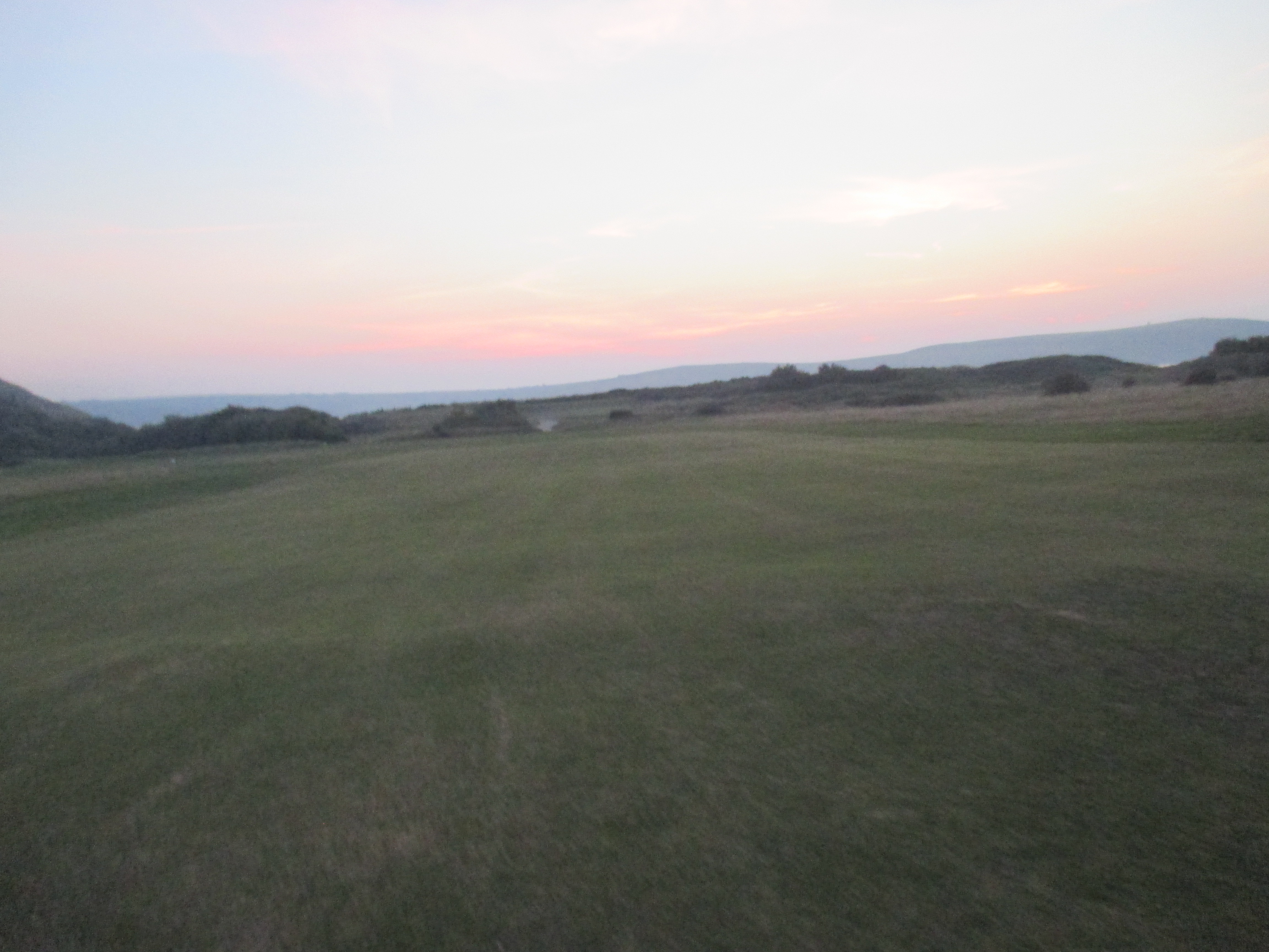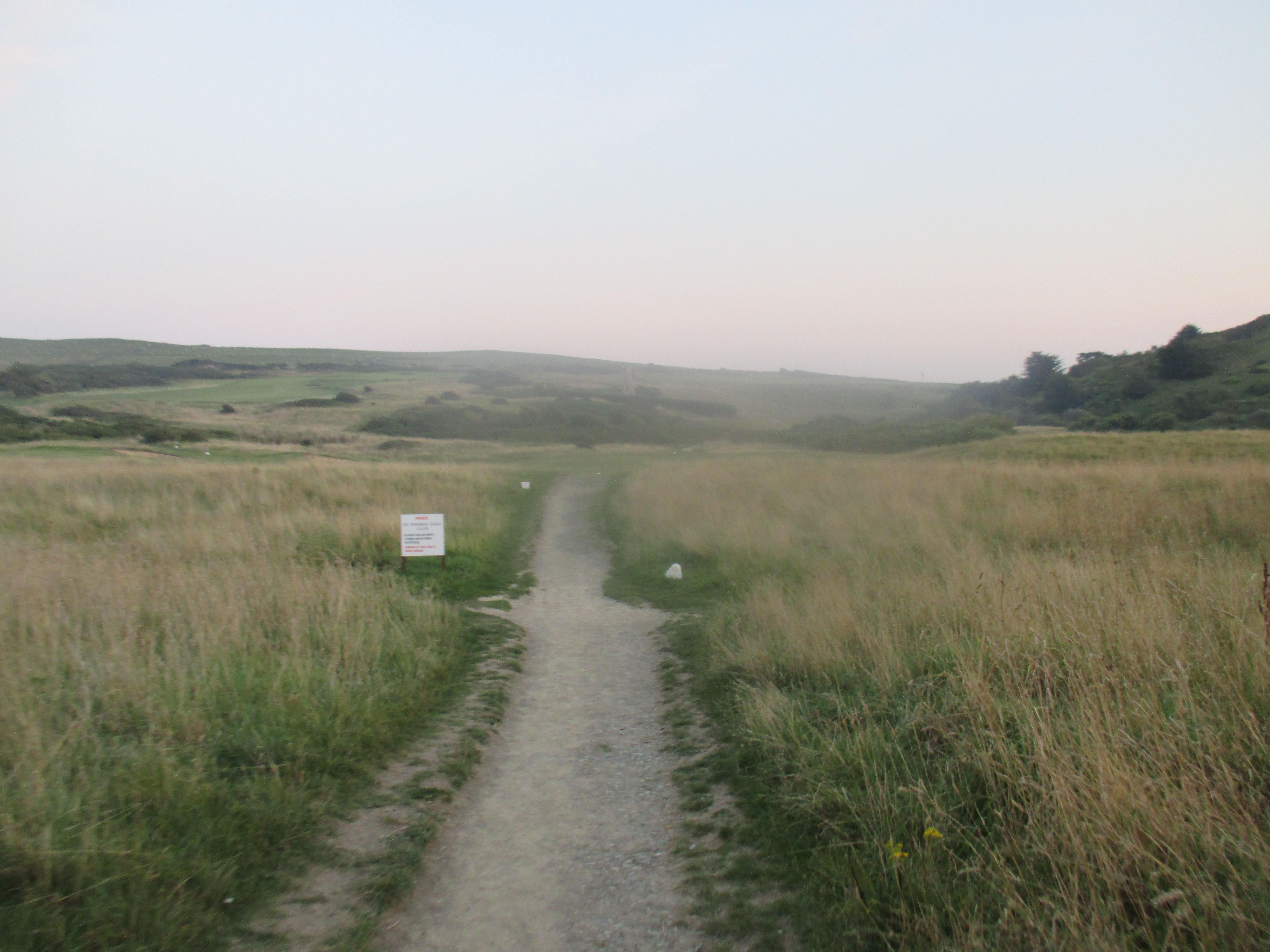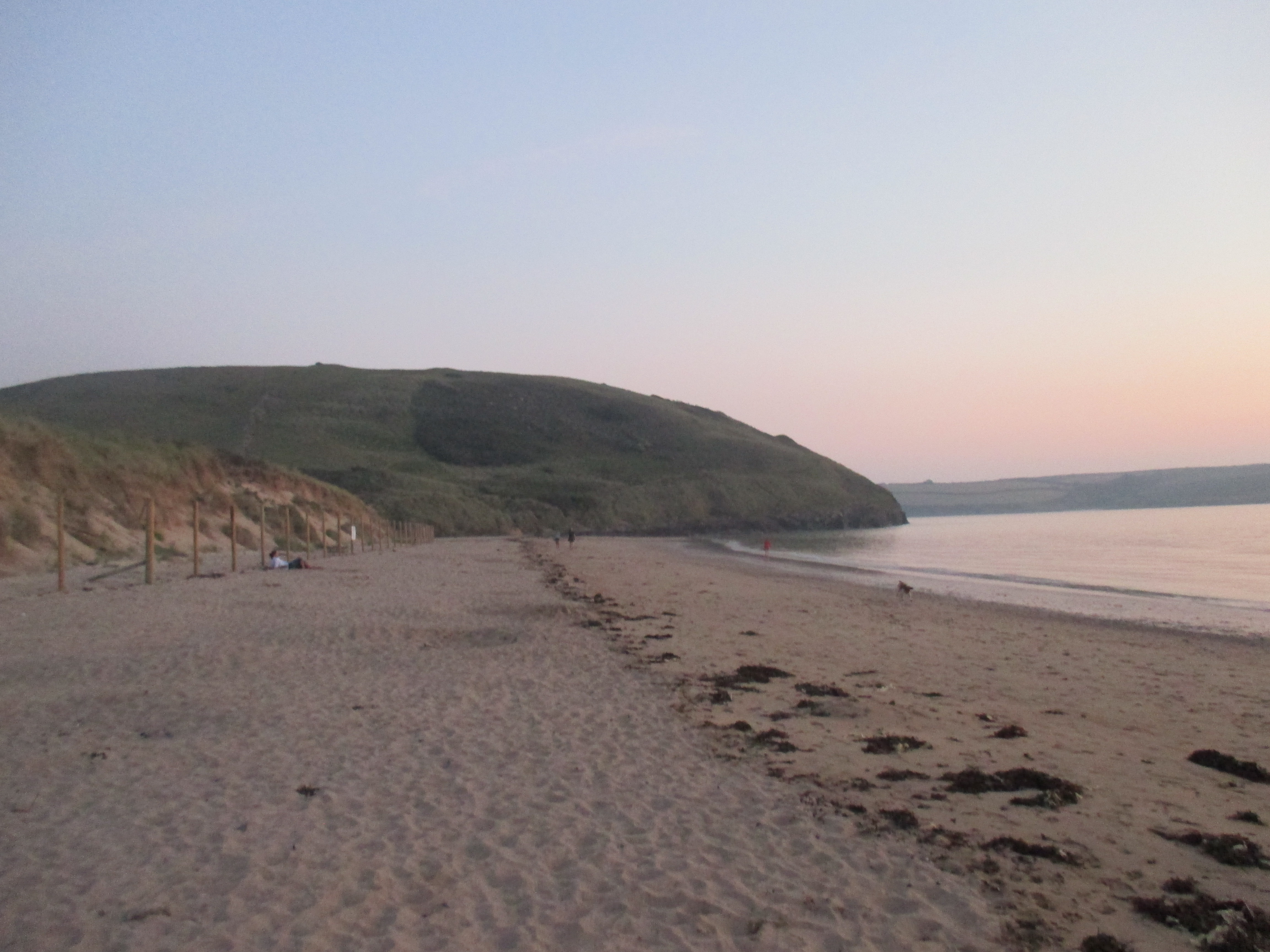 One barman thinks he may know where Greenaway beach is, and gives me some vague directions to head around the pub and towards the cliff-path. I hobble out into the dark, tracing a narrow path that eventually terminates on the edge of a cliff. Below is a secluded bay and a pebbly beach. I can’t make out the path down to it, and decide instead to set up camp just above what may well be Greenaway. With the stars above me, and thick dunes around me, my sleeping spot is peaceful and discreet.