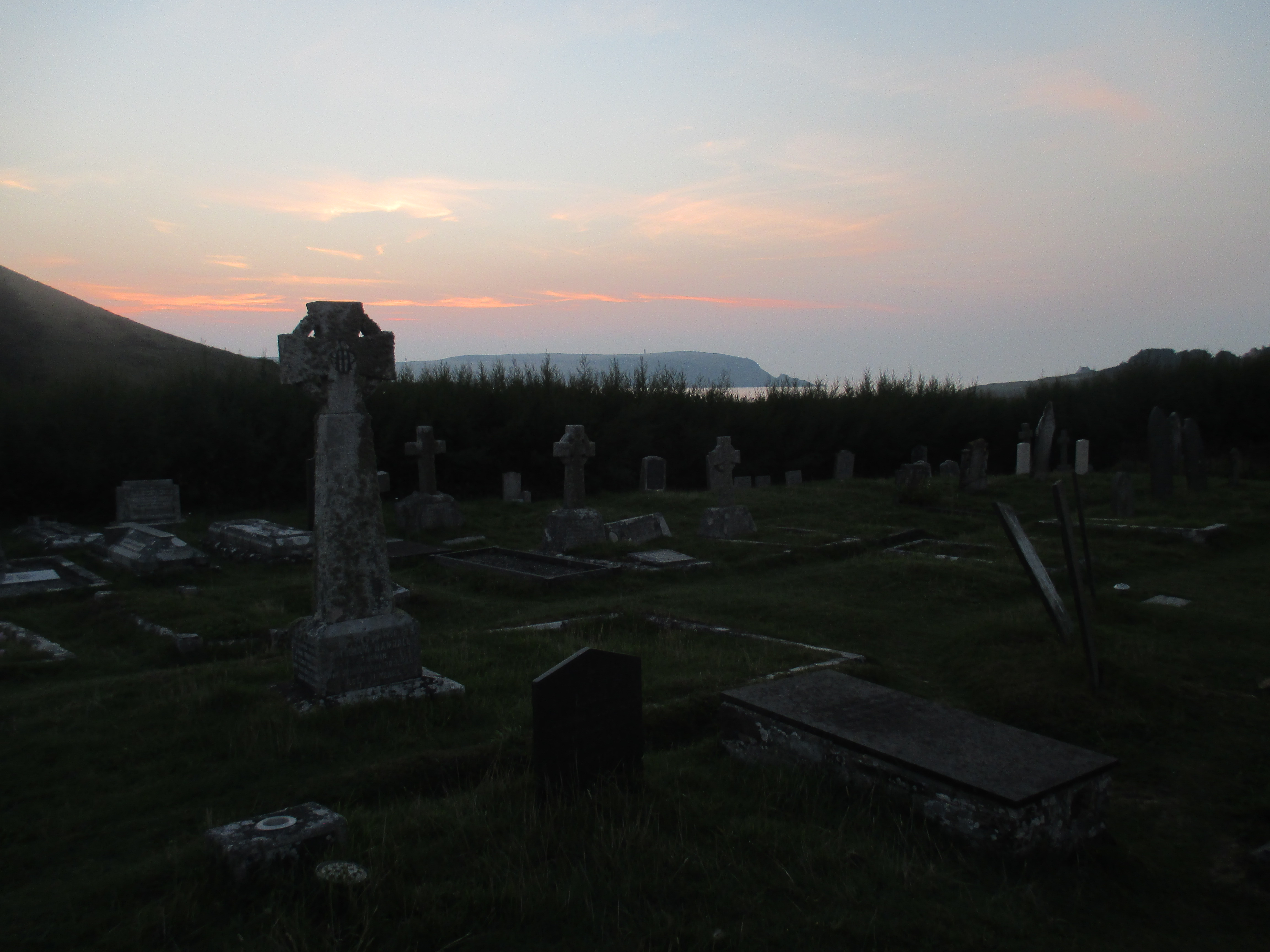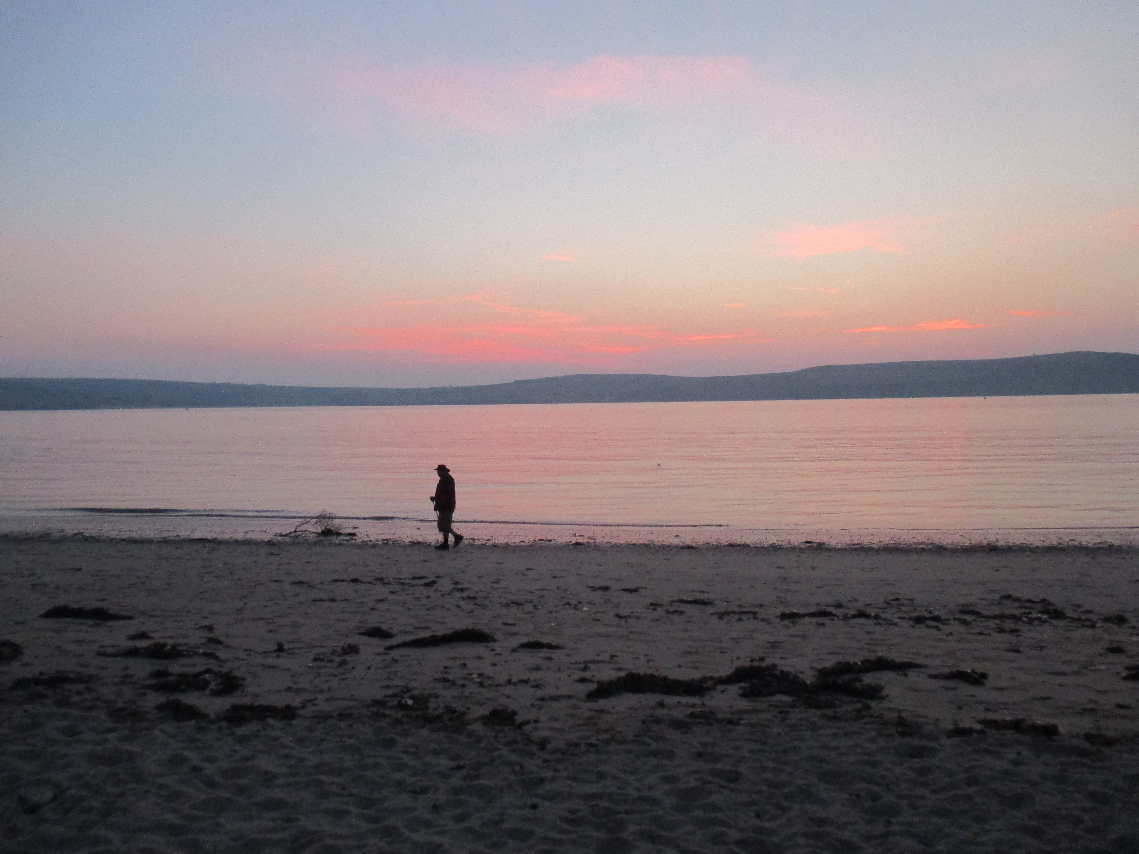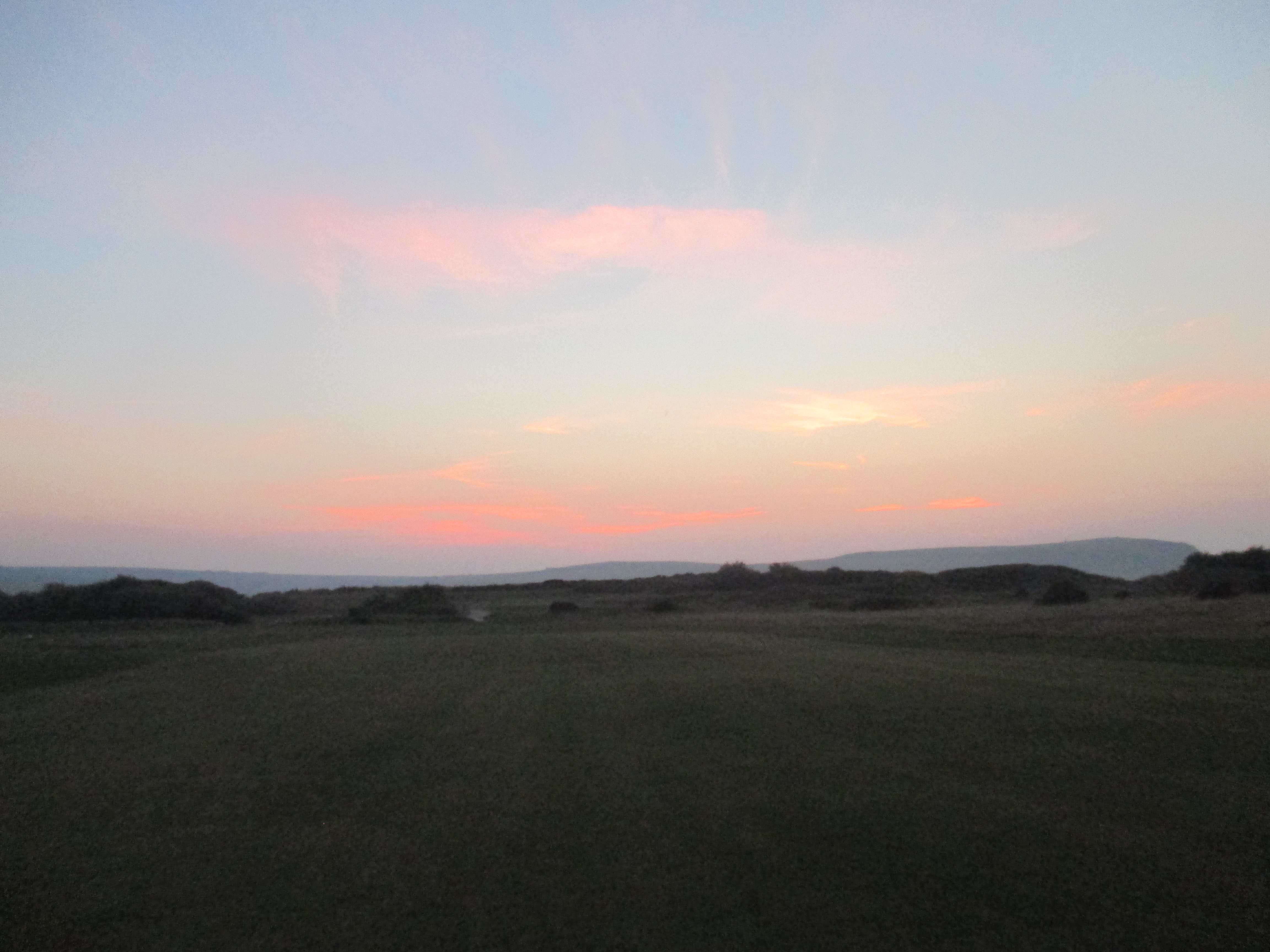 One barman thinks he may know where Greenaway beach is, and gives me some vague directions to head around the pub and towards the cliff-path. I hobble out into the dark, tracing a narrow path that eventually terminates on the edge of a cliff. Below is a secluded bay and a pebbly beach. I can’t make out the path down to it, and decide instead to set up camp just above what may well be Greenaway. With the stars above me, and thick dunes around me, my sleeping spot is peaceful and discreet.