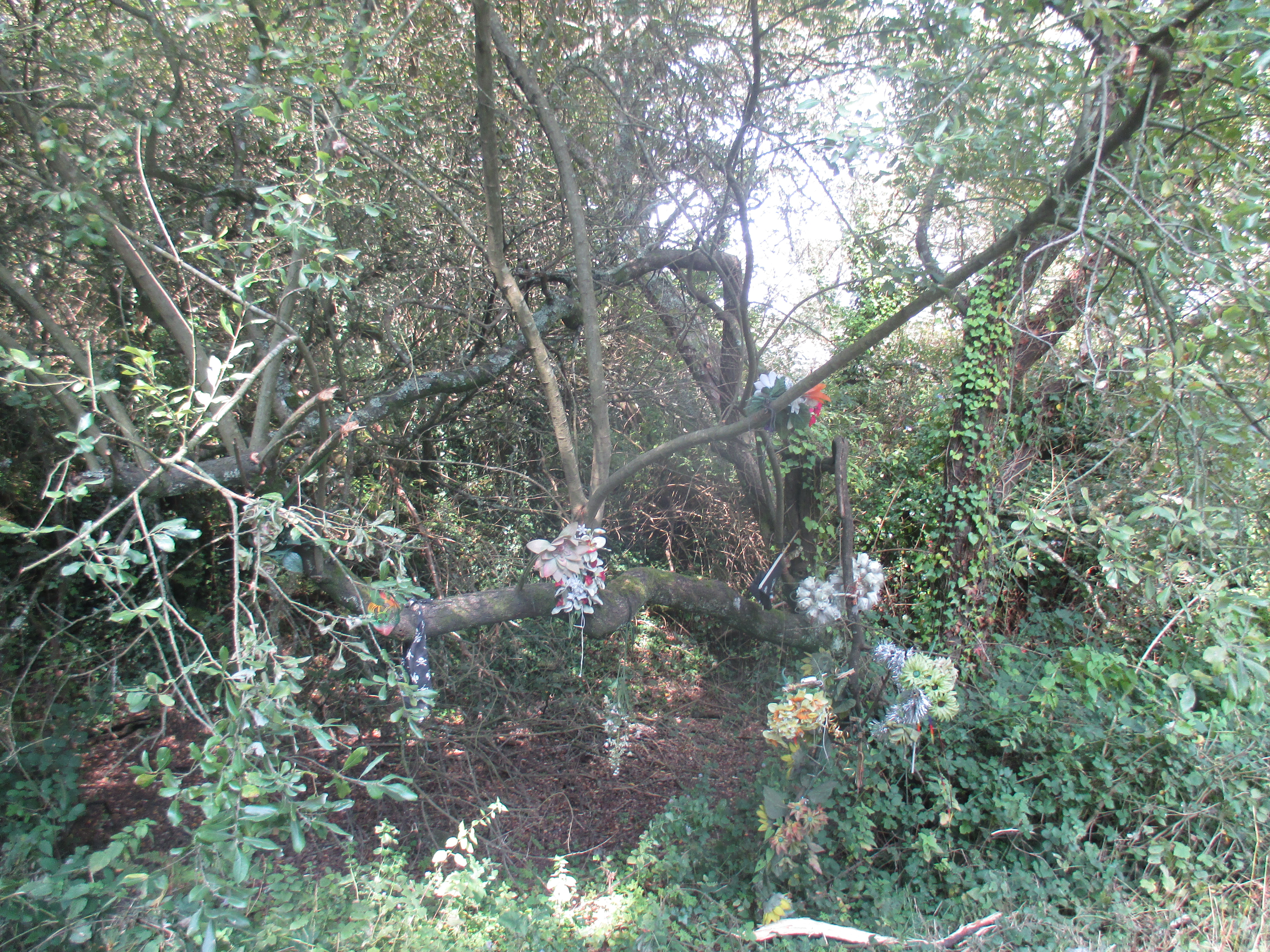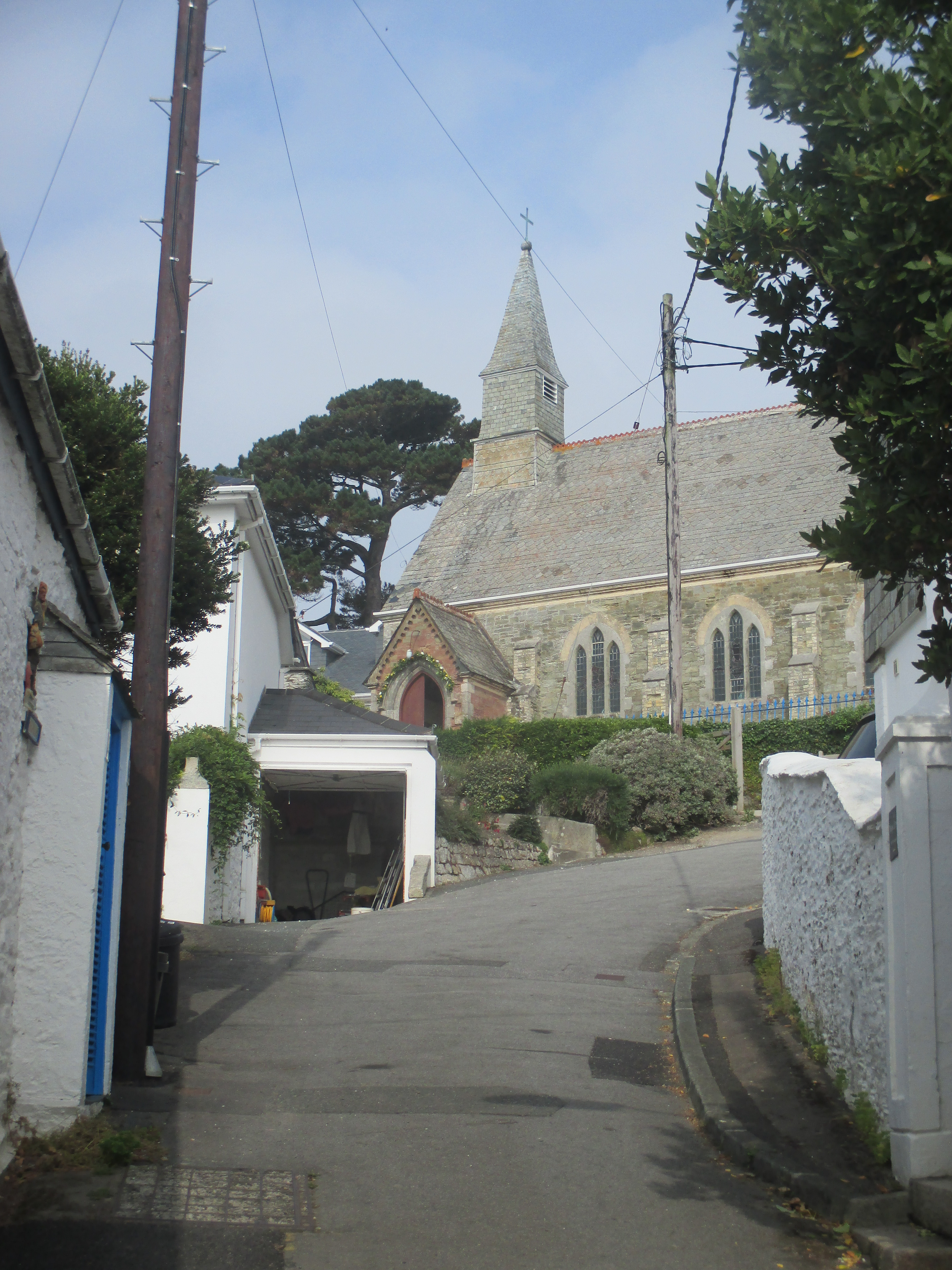 The road out of Par passes through a curious terrain which ought to be woods though remains pocked with derelict factories and semi-operational warehouses. I pass one tree garlanded with flowers, and the large hulk of a ruined structure which seems to have found new use by urban explorers. The road ends at Fowey (pronounced Foy), which is a bizarre albeit quite lovely contrast with everything else I’ve travelled through today. It retains the charm and character of an old fishing village, with tiny cramped streets barely able to allow cars clear passage. It is full of tourists, here to feign interest in its connection to Daphne du Maurier, but really enjoying the fairytale ambience and Cornish ice-cream. Intentionally or not, Cornwall’s tourist spots are always proximate but protected from anything remotely urban or industrial nearby, like Camborne/St. Ives, pretty St. Mawes/Falmouth, or even Newlyn/Penzance. Only Newquay allows both to ellipse into one, with mixed effects.